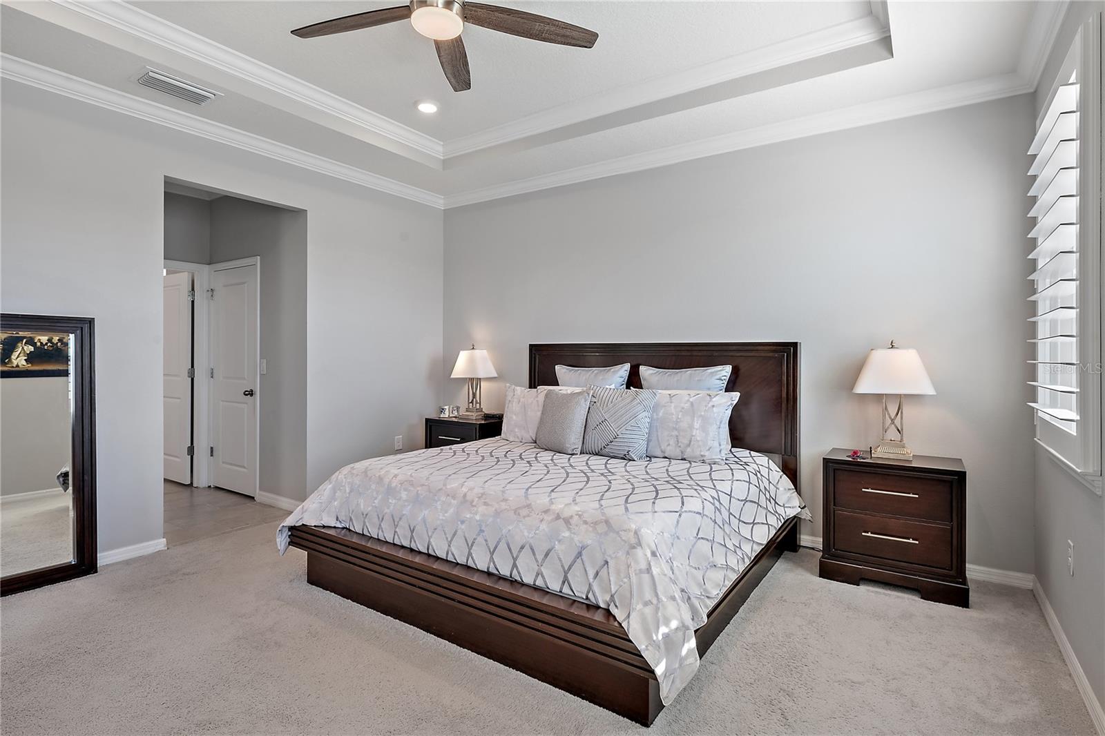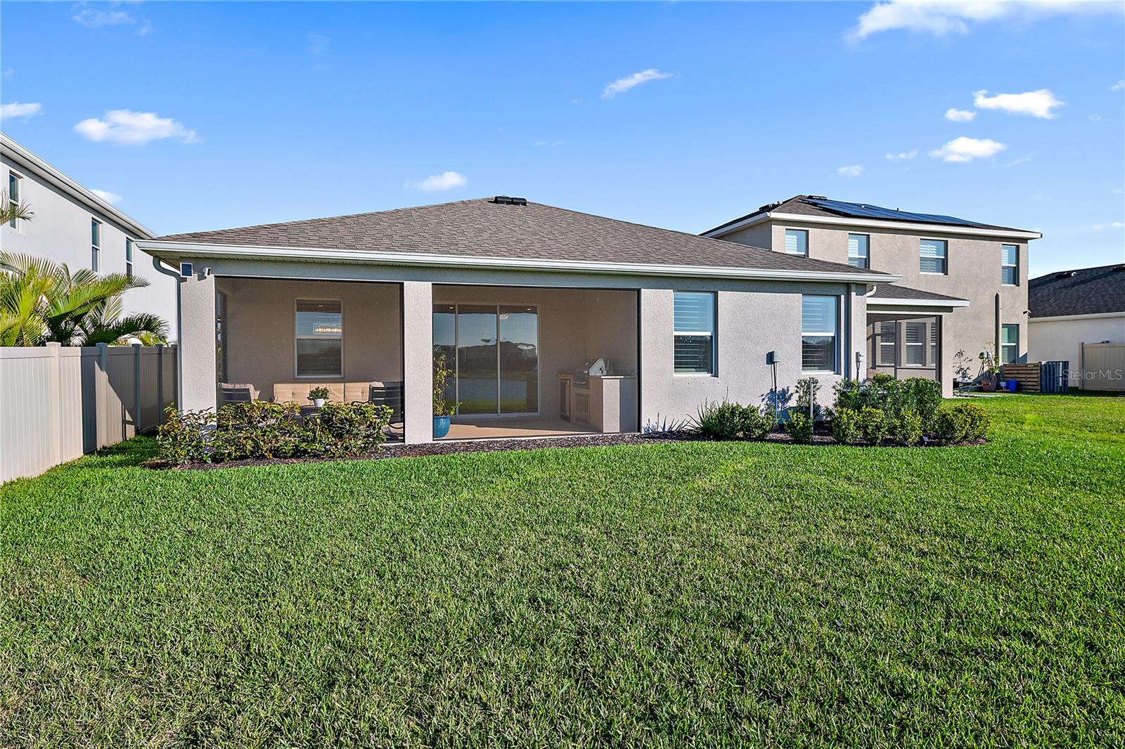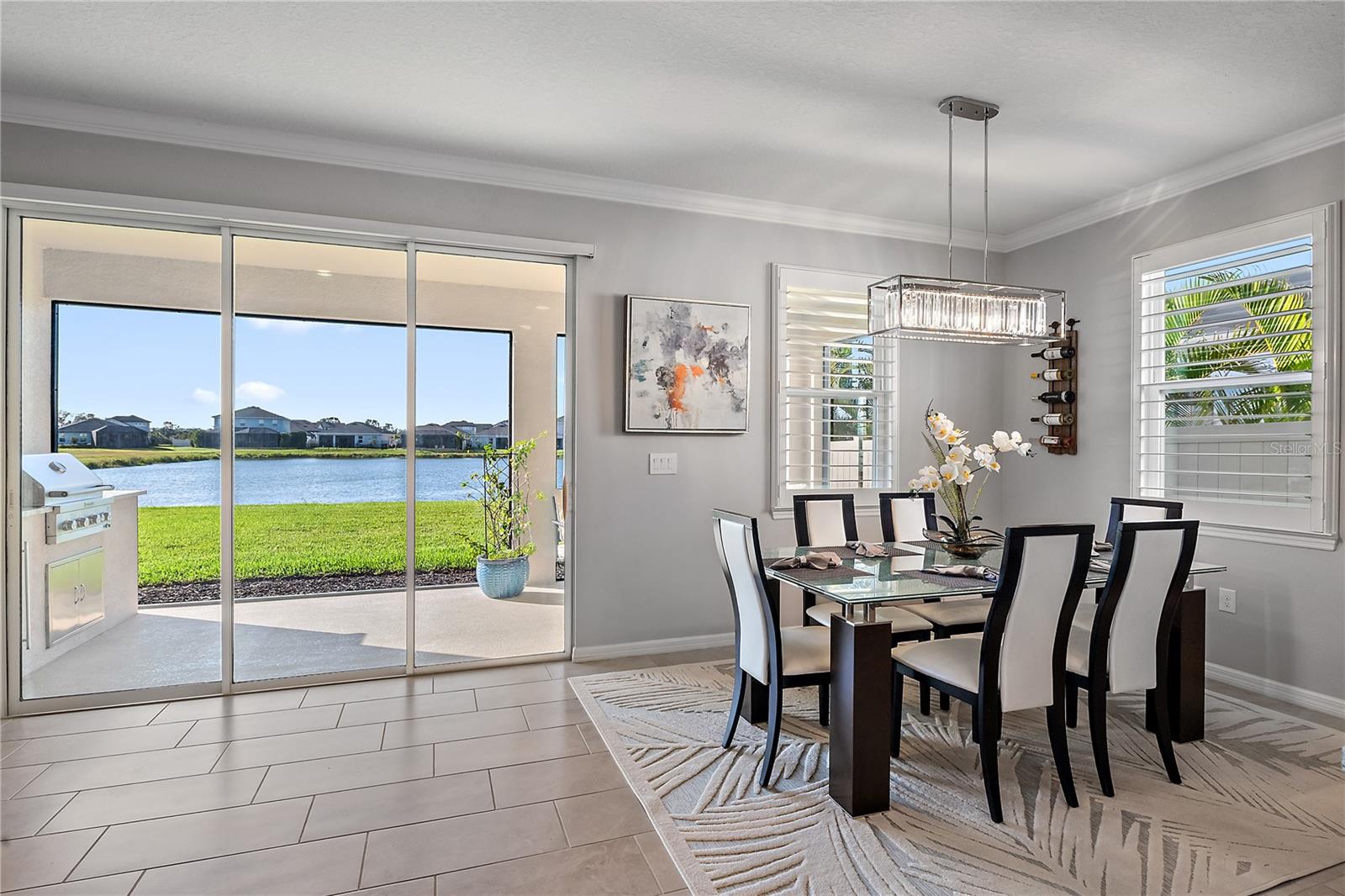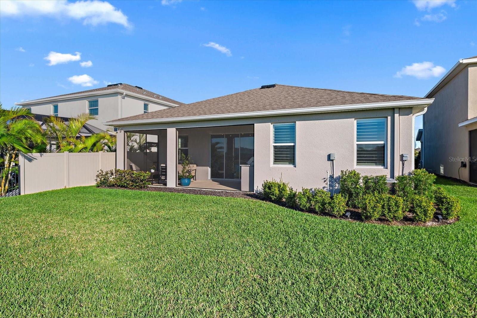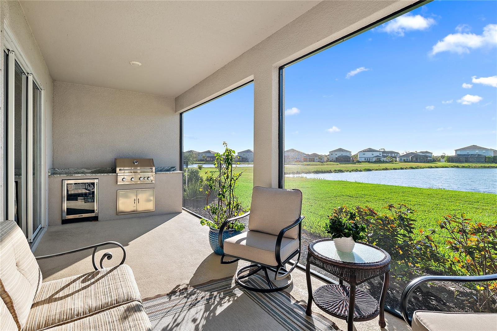 Welcome to this meticulously maintained residence, nestled in the highly sought-after Promenade Estates community of Palmer Ranch, Sarasota. This beautifully designed home features 3 spacious bedrooms, a versatile den, and 2.5 bathrooms. The open floor plan is perfect for both everyday living and entertaining. Natural light pours into the home creating a warm and inviting living space. The interior features plantation shutters, modern lighting, and thoughtful upgrades throughout. The kitchen is equipped with stainless steel appliances, granite countertops, spacious island and modern cabinetry. The primary suite is a true retreat, featuring two walk-in closets, an ensuite bathroom with dual vanities, walk-in shower, soaking tub and premium finishes. Two additional well-sized bedrooms provide plenty of space for family or guests, while the den with french doors is versatile and can be used as office, playroom, or additional guest room. This home is positioned perfectly to capture the essence of Florida’s natural beauty, the back of the home offers breathtaking views of vibrant sunsets, creating a stunning backdrop against the serene pond. The screened in covered lanai also features an outdoor kitchen that completes the space. Whether you're relaxing on the lanai or entertaining guests, these captivating sunset views provide the perfect way to end each day. Promenade Estates is a gated community offering a range of resort-style amenities, including a pool, clubhouse, fitness center, and playground. The neighborhood is conveniently located near top-rated schools, Pineview school, beautiful beaches, shopping, dining, and the Legacy Trail, making it the ideal location for both relaxation and recreation. This home offers an exceptional lifestyle, combining comfort, style, and convenience.