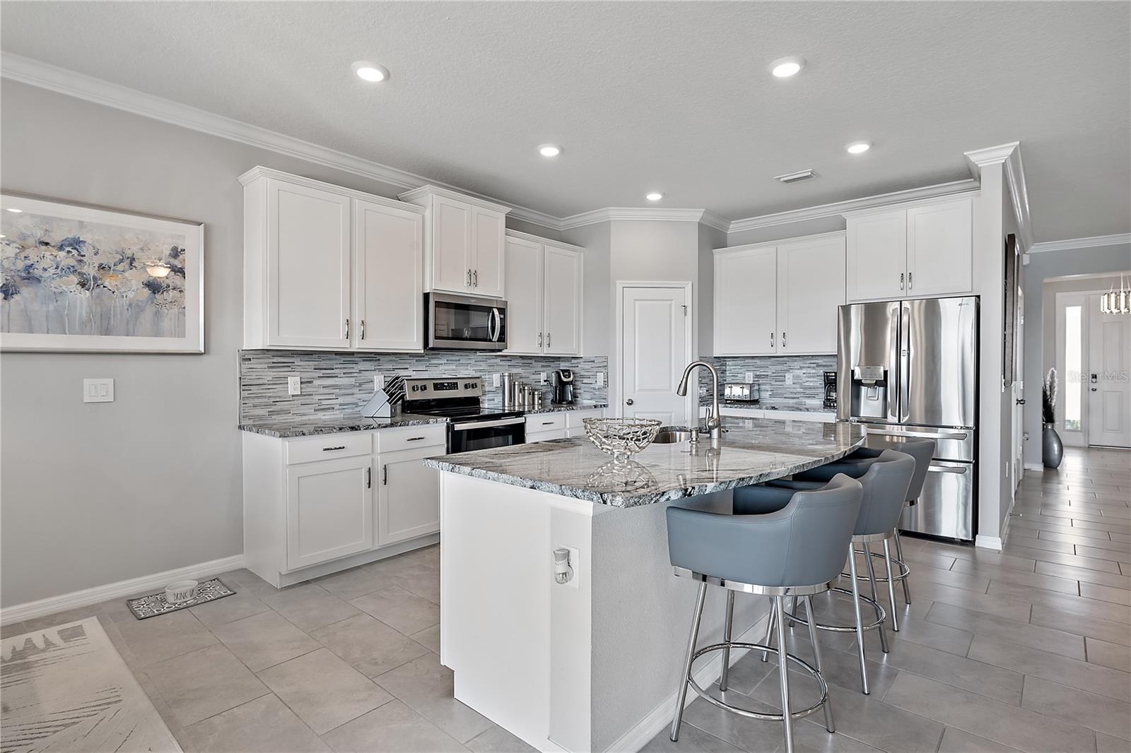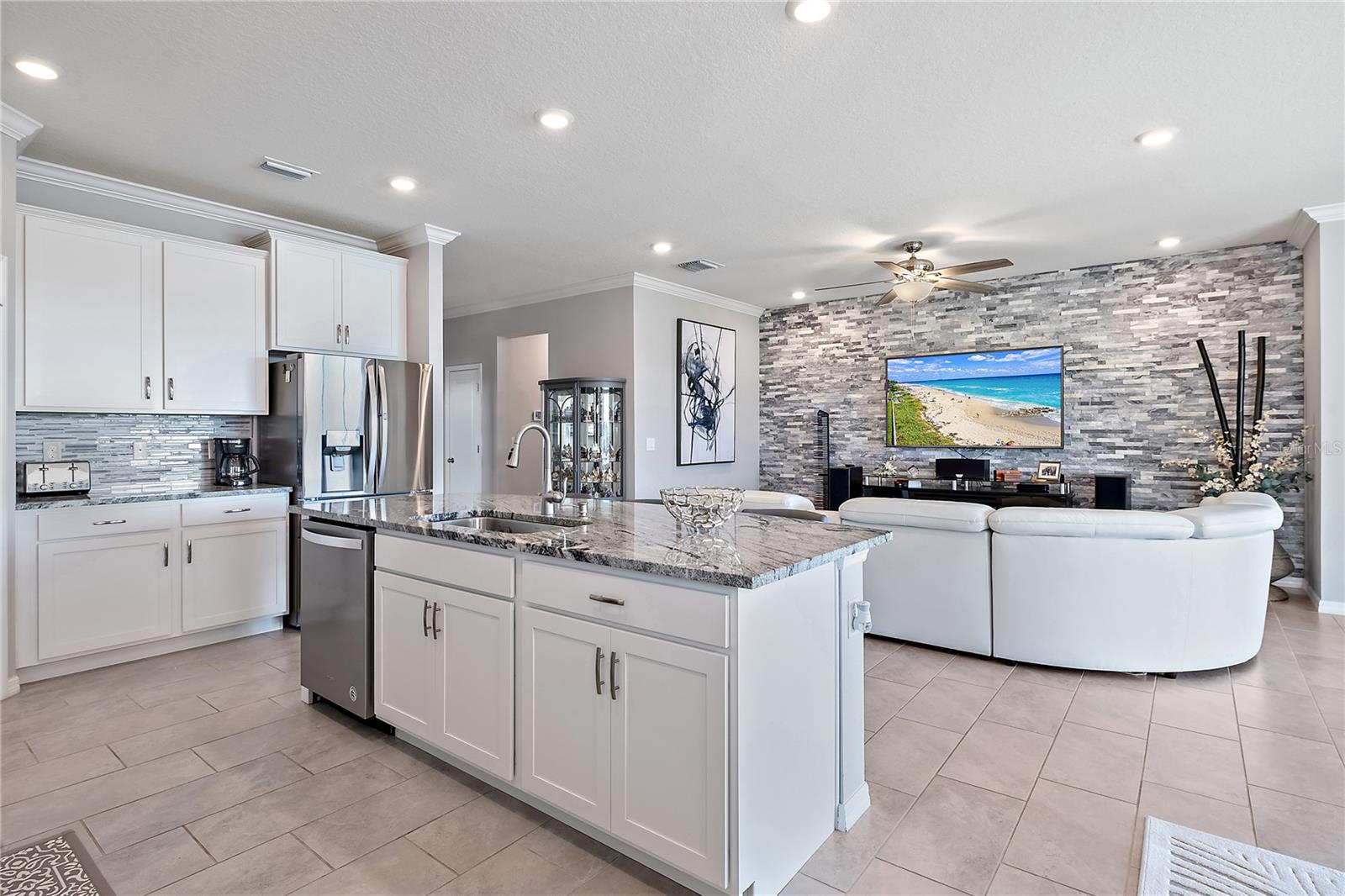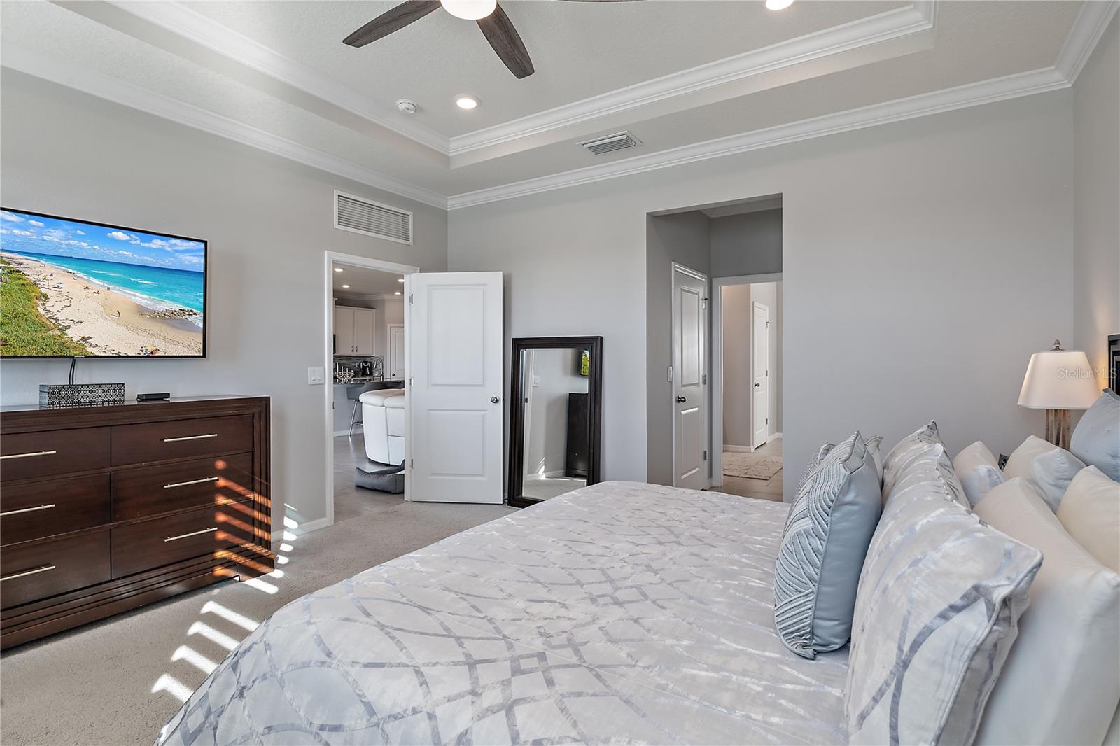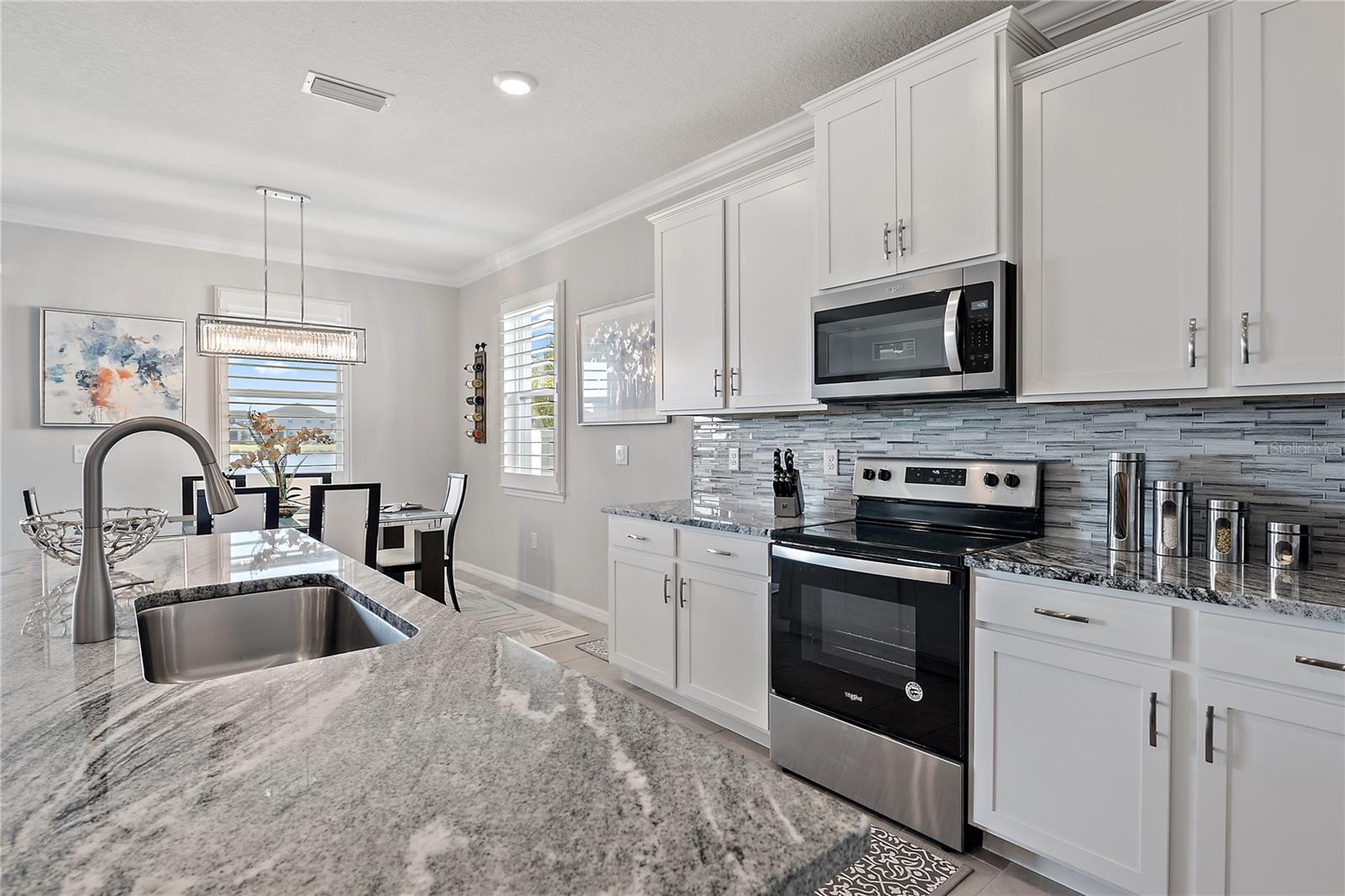 Welcome to this meticulously maintained residence, nestled in the highly sought-after Promenade Estates community of Palmer Ranch, Sarasota. This beautifully designed home features 3 spacious bedrooms, a versatile den, and 2.5 bathrooms. The open floor plan is perfect for both everyday living and entertaining. Natural light pours into the home creating a warm and inviting living space. The interior features plantation shutters, modern lighting, and thoughtful upgrades throughout. The kitchen is equipped with stainless steel appliances, granite countertops, spacious island and modern cabinetry. The primary suite is a true retreat, featuring two walk-in closets, an ensuite bathroom with dual vanities, walk-in shower, soaking tub and premium finishes. Two additional well-sized bedrooms provide plenty of space for family or guests, while the den with french doors is versatile and can be used as office, playroom, or additional guest room. This home is positioned perfectly to capture the essence of Florida’s natural beauty, the back of the home offers breathtaking views of vibrant sunsets, creating a stunning backdrop against the serene pond. The screened in covered lanai also features an outdoor kitchen that completes the space. Whether you're relaxing on the lanai or entertaining guests, these captivating sunset views provide the perfect way to end each day. Promenade Estates is a gated community offering a range of resort-style amenities, including a pool, clubhouse, fitness center, and playground. The neighborhood is conveniently located near top-rated schools, Pineview school, beautiful beaches, shopping, dining, and the Legacy Trail, making it the ideal location for both relaxation and recreation. This home offers an exceptional lifestyle, combining comfort, style, and convenience.