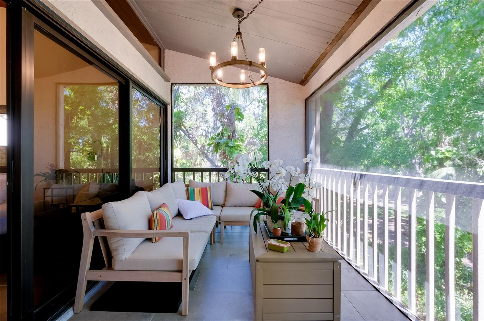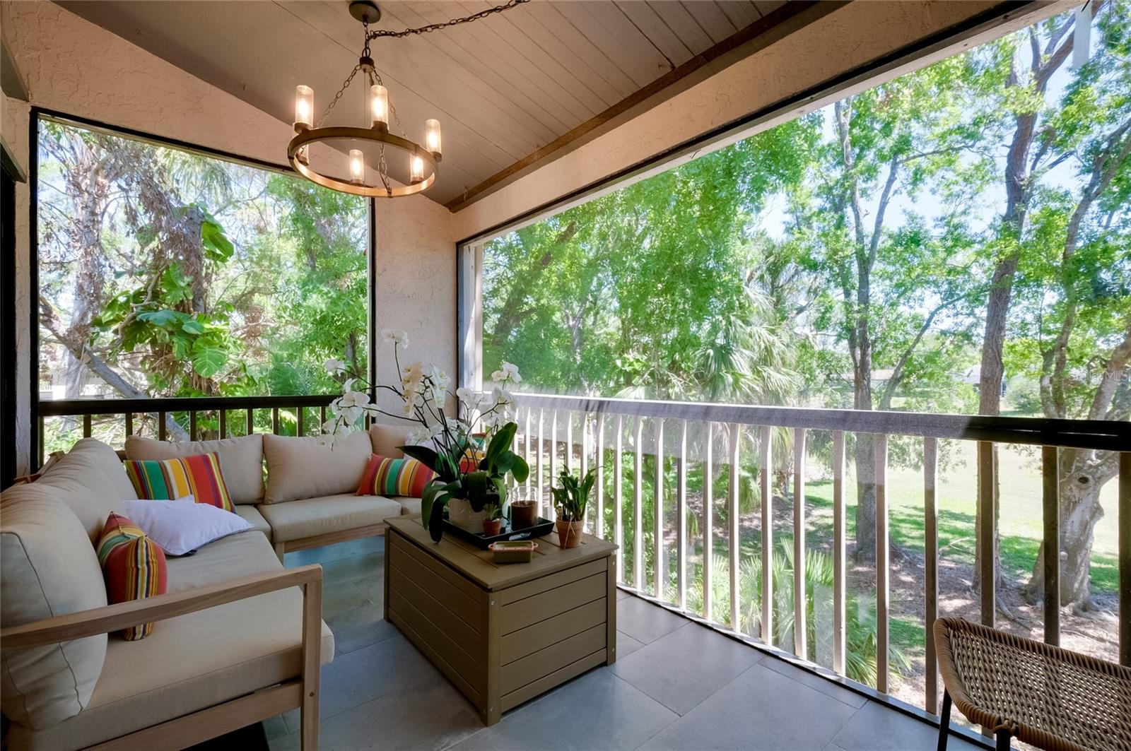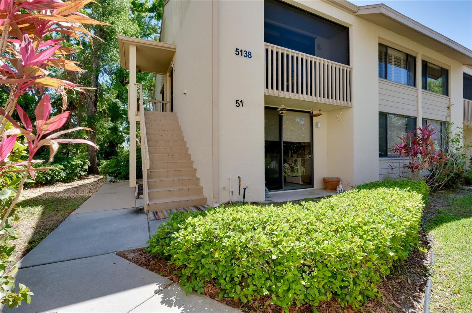 This condo is one of a kind! Corner end unit featuring a wooded oasis and golf course views! Close to everything! Private location, but close to shopping, schools, restaurants, walking trails and so much more! Pool is convenient, it's just out the front door and down the parking lot. Completely remodeled throughout! The best way to describe this unit is to say it is "Simply Stunning". Newer updated gourmet kitchen with newer cabinets, countertops, appliances and more!. Built In Pantry! Stackable washer/dryer in kitchen area! You won't believe the finishes! Open floorplan featuring a huge great room w/vaulted wood trim ceilings! Great views from your balcony area! Extra Storage! 2 remodeled and updated bathrooms featuring floating vanities, new tile flooring, and added closets! Primary bedroom opens out to the lanai area! Lanai access via the great room! Fantastic gold course views! Harpers Croft is part of the Meadows Country Club and you have the option to enjoy all of the features it offers! Call for the different membership options. Many amenities are offered at no cost! This is definitely a move in condo! You will appreciate all of the improvements once you take a tour of this condo either in person or via the attached video. Take a peek and see what this condo offers! Assigned parking spot with guest parking as well!
