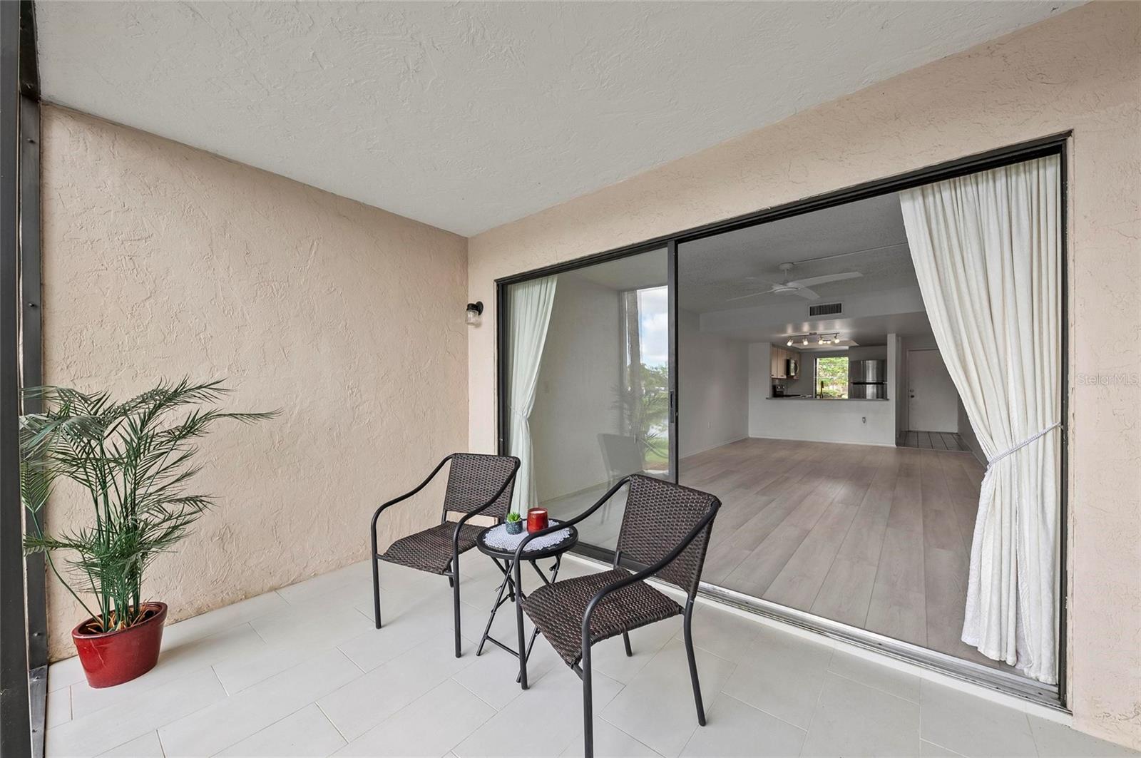 Enjoy breathtaking water views from sunrise to sunset in this beautifully updated 1-bedroom, 1-bath first-floor condominium located in Chartwell Green, one of the most desirable enclaves within The Meadows. This spacious, light-filled home features an open floor plan and a large kitchen with granite countertops, a breakfast bar that seats four or more, stainless steel appliances, sparkling glass mosaic tile backsplash, under-cabinet lighting, and a convenient in-unit stackable washer and dryer. The oversized bedroom offers sweeping views of the lake through tall windows and sliding glass doors that open to a scenic screened lanai. It also includes a generous walk-in closet. The bathroom has been tastefully updated with a 48-inch vanity and custom granite countertop. The entire condo has been thoughtfully renovated with luxury vinyl plank and tile flooring, updated lighting and plumbing fixtures. Additional upgrades include a new AC unit installed in 2020 with a 10-year warranty, a new water heater in 2021, a new lanai screen door in 2021, and a new roof in 2018. The condo is just steps away from a beautiful community pool that overlooks the lush, meticulously maintained landscape. The Meadows is a private, resort-style community set on 1,650 scenic acres with 14 miles of walking and biking trails, 80 sparkling lakes and waterways, tennis and pickleball courts, a junior Olympic-sized pool, a brand-new fitness center, and on-site dining options. All of this is just 15 minutes from downtown Sarasota, and close to award-winning Gulf beaches, world-class arts and cultural venues, the Mall at University Town Center, and top-rated restaurants. This is your opportunity to own a slice of paradise with million-dollar views in one of Sarasota’s most tranquil and convenient locations. Schedule your private showing today.