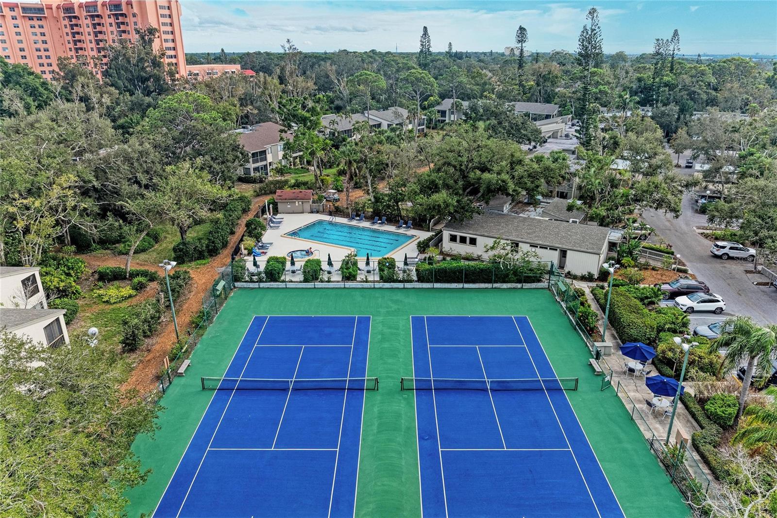 Positioned as the last and most western unit on the point in Pelican Cove, this largely private residence offers breathtaking 270° water views of Little Sarasota Bay, Pelican Cove, and the marina. With no neighboring unit beyond it, this exceptional location provides unmatched privacy, light, and water vistas from nearly every angle. Water views are enjoyed from every room, complemented by three distinct terraces one fully open-air and two screened and glassed creating seamless indoor-outdoor living. The expansive living and dining areas are filled with beautiful natural light and feature open access to a north-facing terrace, where sliding glass doors frame stunning bay views. A subtle step-down into the terrace and slightly lower dining ceilings create an inviting setting ideal for both entertaining and relaxed conversation. The kitchen offers a functional layout with a pass through window for entertaining, fresh paint, and connectivity to the main living spaces. This flexible floor plan includes two possible primary bedroom suites, along with an additional guest bedroom or office. The west wing primary suite showcases sweeping views of Little Sarasota Bay and Siesta Key, a walk-in closet, and access to two terraces one enclosed and one fully open air with sunset views. High moldings, clerestory windows, and privacy doors enhance the space, while the en suite bath features separate his-and-hers sinks and a private toilet and bath area. The east wing bedroom offers exceptional privacy with north-facing marina channel views, sliding glass doors, and a quiet interior location. A separate guest bedroom or office includes a built-in desk console and porch overlooking Pelican Cove waters. A southeast bathroom has received recent plumbing upgrades. Recent improvements include hurricane-rated glass on the main lanai, new clerestory windows replaced by the association, new sliding glass doors (Spring 2025), fresh paint throughout, drywall and trim replacement, new carpeting (2025), a recently replaced A/C system (August 2024), and updated electrical panel access. A small enclosed attic area provides additional storage. Residents enjoy Pelican Cove’s resort-style amenities, including multiple swimming pools, clubhouses, a fitness center, art studio, and marina access. The HOA covers water, grounds maintenance, exterior building maintenance, pest control, and community insurance for the exterior of the building (lanai window coverage obtained separately). This rare offering combines a premier end-of-point location with privacy, panoramic water views, and the best of coastal Sarasota living.