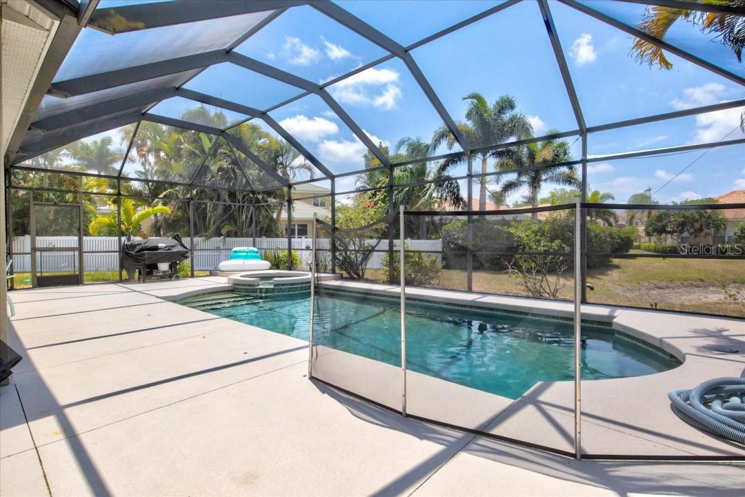 New Price Improvement – Priced to Sell! Rarely do you find such an expansive 5-bedroom plus den, 3-bathroom home at this price in Sarasota. Situated on a generous pie-shaped corner lot, this property offers both privacy and functionality. Designed with family living in mind, the home features soaring ceilings and abundant natural light, creating a spacious and inviting atmosphere throughout. Enjoy year-round relaxation in the large heated saltwater pool and jacuzzi, all within an enclosed lanai that provides a serene, bug-free environment. The expansive kitchen, complete with generous counter space, seamlessly connects to the living areas and overlooks the pool deck—ideal for entertaining family and friends. Additional features include a true 3-car garage with ample space for vehicles and outdoor gear, as well as an in-ground irrigation system to maintain a lush, vibrant lawn. Priced as-is, this home offers the ideal opportunity to infuse it with your own unique style. Located in a desirable, family-friendly low HOA neighborhood zoned for Tatum Ridge Elementary, this property is a rare opportunity. Motivated sellers, so don’t miss your chance. Start living the Florida lifestyle you’ve always dreamed of!