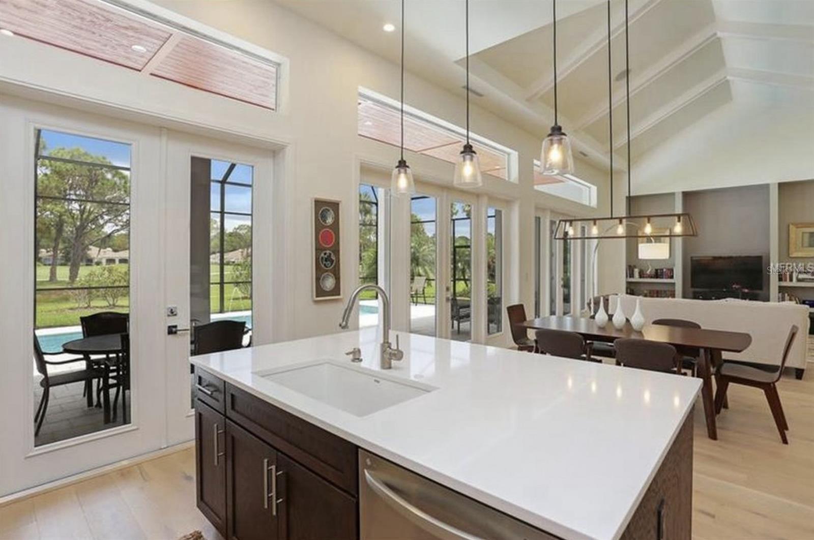 Luxurious Modern Ranch Home with Golf Course Views. Experience the epitome of luxury in this meticulously designed modern ranch home. Situated on an unobstructed golf course lot within the prestigious Meadows community, this residence caters to the most discerning buyers, offering unparalleled quality and style. Features: Golf Course Views: Enjoy uninterrupted views of the Meadows private executive course. Interior: French Oak Wood Floors: Gorgeous wide-plank French Oak floors throughout, High Ceilings: Spacious and airy rooms with soaring ceilings. Solid Core Interior Doors: Enhancing soundproofing and luxury feel. Andersen Windows: High-quality windows providing excellent insulation and aesthetic appeal. Smart Home Technology: Internet-enabled lighting and thermostat systems for ultimate convenience. Built-in SONOS Sound System: Integrated sound system in all major rooms. Gourmet Kitchen: Top-of-the-line dual-fuel range with gas cooktop, Whole House Water Softener, ensuring soft water throughout the home. Home Security System: Comprehensive security system for peace of mind. CCTV Exterior Security Cameras: Enhanced security with a comprehensive camera system. Great Room Floor Plan: The open concept design seamlessly connects the living, dining, and kitchen areas, perfect for modern living and entertaining. Bedrooms: 3 ensuite bedrooms offering privacy and comfort. Office: A dedicated office space at the front of the house. Master Suite: Oversized suite with a sitting area. Dressing room and his & her walk-in closets. Kitchen: Dark wood cabinetry and white quartz countertops. Stainless steel appliances. Outdoor Living: Saltwater Pool with Ozone Injection: Enjoy a pristine swimming experience in the 8' x 30' lap pool. Lanai: Shell stone paver lanai with an extra-large covered area. BBQ Area: Custom-built BBQ area for outdoor entertaining. Energy Efficiency: LED lighting throughout. Spray foam insulation. Private well for irrigation. Additional Amenities: 3-car garage. Concrete paver driveway. Oversized lot. Baldwin hardware. Only 2 miles to the nearest Pine View School bus stop, the #1 high school in Florida. Rediscover the magic of the Meadows with easy access to the mall at University Town Center, Benderson Park, and Downtown Sarasota. Recognized as one of Redfin's 2022 top 10 Hottest Neighborhoods in the US, the Meadows offers a vibrant and desirable community with unmatched lifestyle opportunities. This home is not just a place to live but a lifestyle to be embraced.