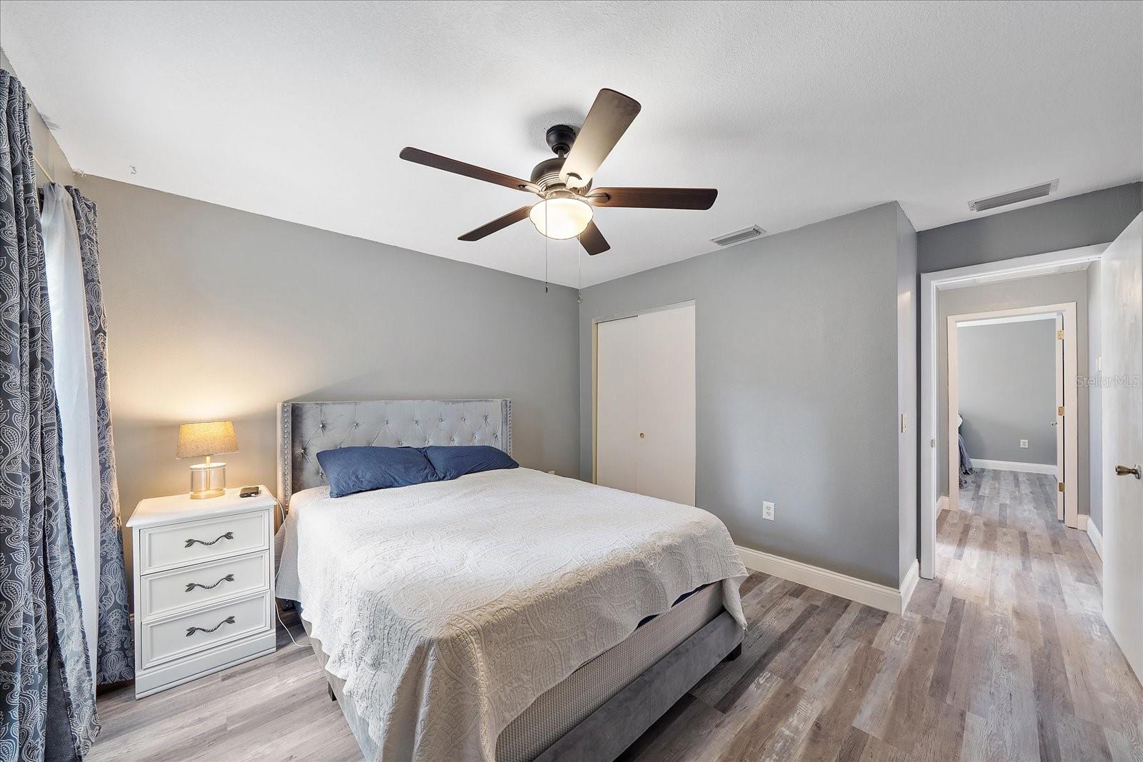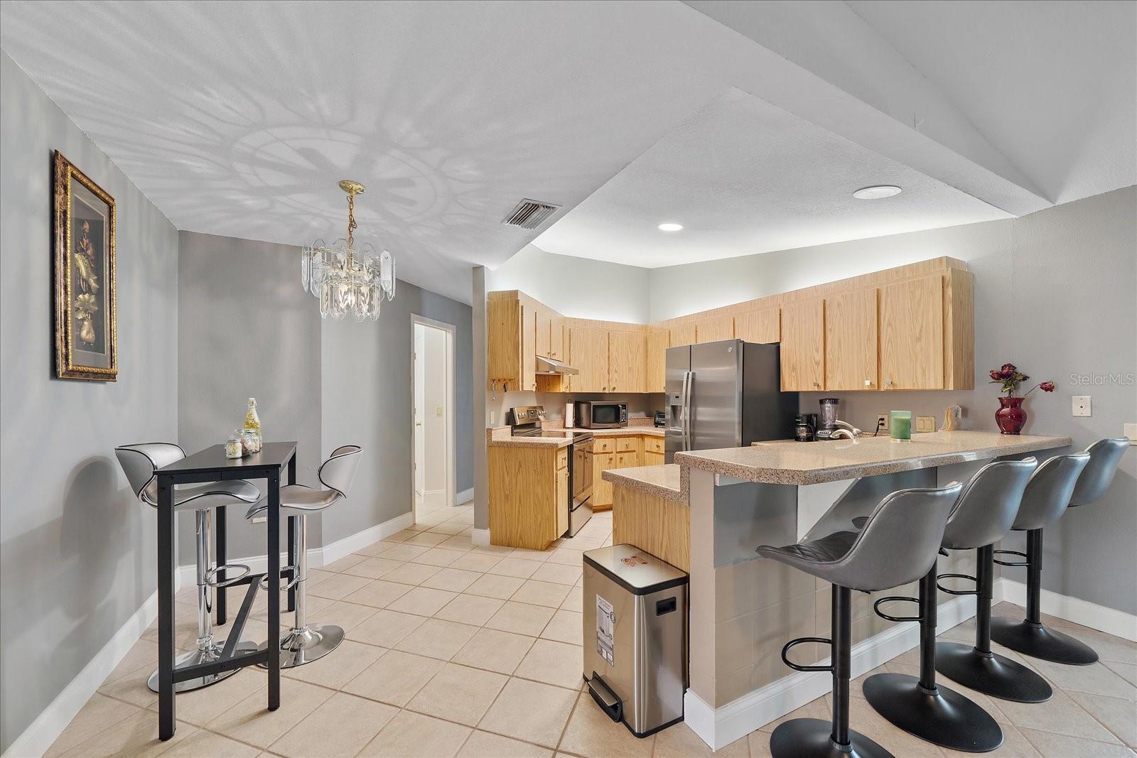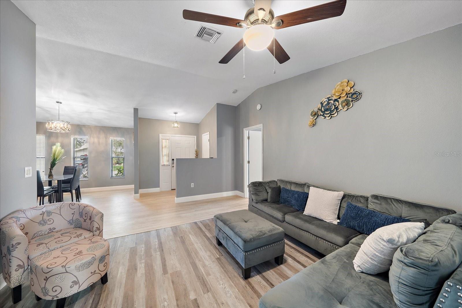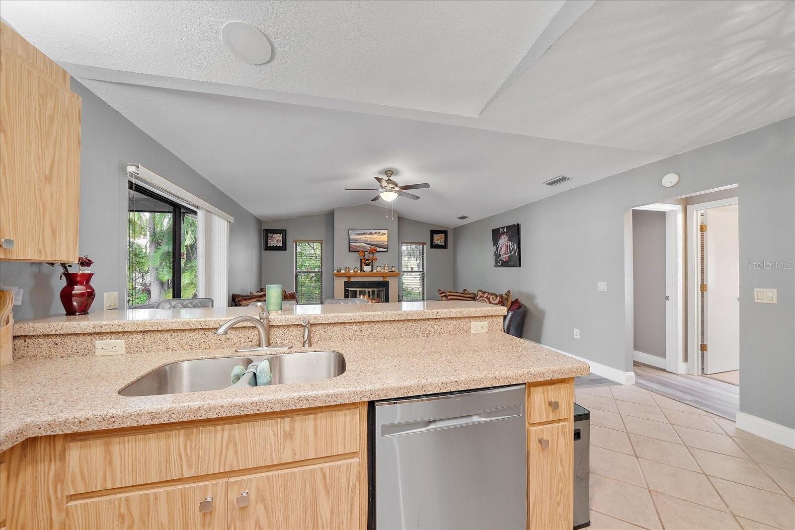 Location! Location! Location! Welcome to this family friendly neighborhood in Colonial Oaks. This is a very spacious home with a split plan features vaulted ceilings, stainless steel appliances, quartz countertop with a bar area. The family room has a wood-burning fireplace and sliders to the lanai. The new luxury vinyl flooring welcomes you into the foyer where there is a large coat closet. The huge master bedroom features a walk-in closet, sliders to the Lanai and an updated en-suite bathroom with quartz counters, dual sink and a linen closet. The lanai is ideal for enjoying the outdoors and overlooking the nice yard and pond. The house is located minutes away from Siesta Key Beaches. Also, this community is only minutes away from tennis Court, basketball courts, playground and picnic tables. It is also a short distance drive to I-75, UTC, Celery Fields Farmer's Market, shopping, doctor offices, hospitals and much more!