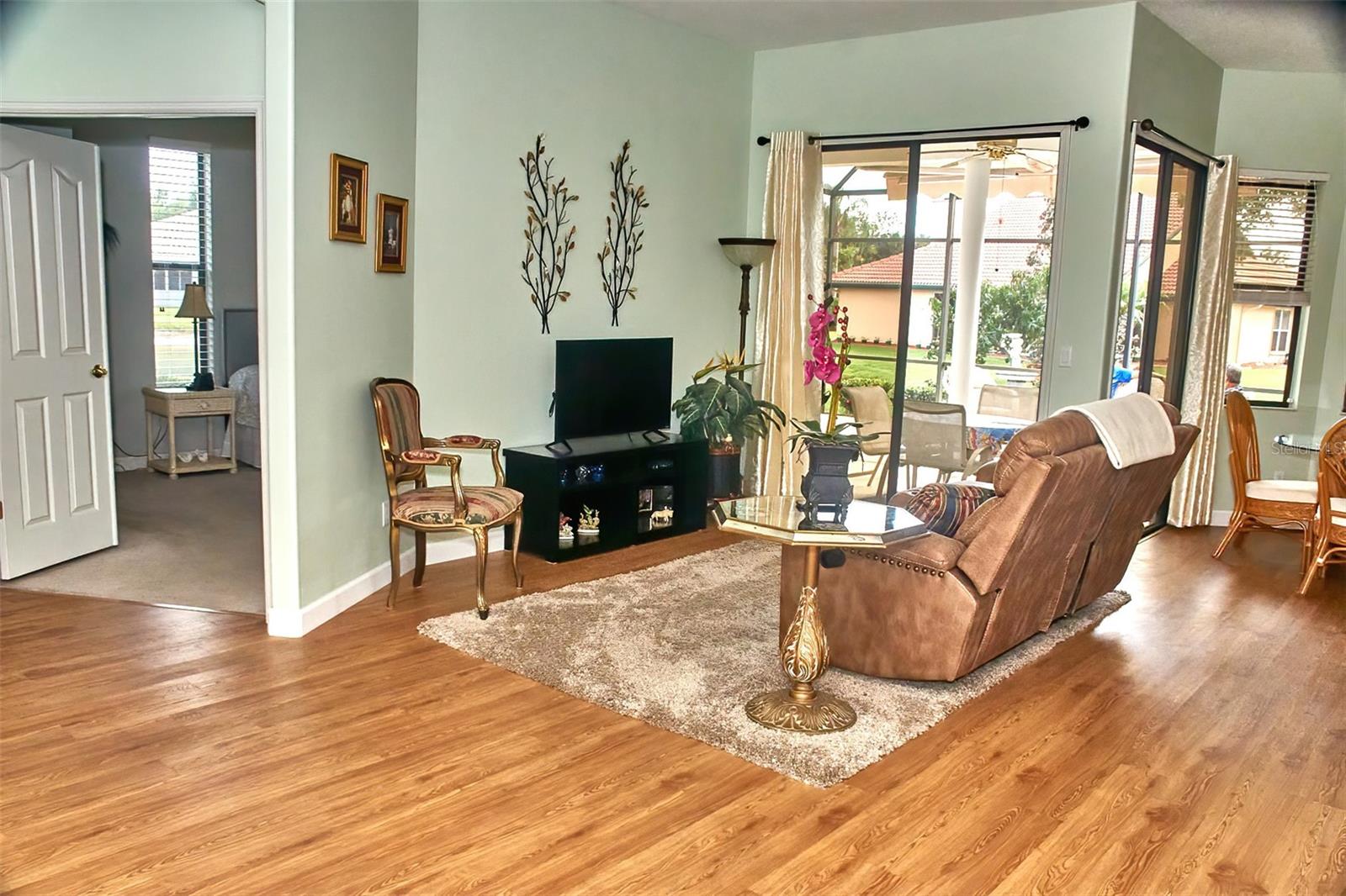 Welcome to this move in ready home in the trails community with unbeatable location just short distance 6 miles to Sarasota, white sandy beaches of Siesta Key,, Longboat Key, Coquina Beach, St Armands, Circle. Short distance from University Rarkway and tons of shopping and restaurants. The Trails is one of the best kept secrets as it has prestigious Sarasota address but Manatee county tax base. The Trails sub has no CCD and low 48.00 month HOA. You also have access to the beautiful pool and recently updated tennis court and pickleball with a active group. This 1995 home has a open split floor plan with major upgrades in flooring and master bath, no carpet in house, luxury plank vinyl flooring that is very durable and water resistant. Lanai with new screens (installed August 2024) overlooks a pond that has bass, sunnies, tilapia and more. Enjoy fishing ,bird watching of all sorts out of the living room sliding doors. This home is something special as it's one of the larger lot sizes, approximately 43,560 sq ft which gives enough room for expansion, pool, garden and more which is rare these days with home being built with 10 ft lot lines.Family room offers a real wood burning fireplace, seperate dining room and second living room. Not near any noisy roads not in airport flight path. Come take a look and see why this high sealing open split is ready to enjoy. New Heat Pump A/C Installed week of October 16th, 2024, Master bath upgraded, kitchen upgraded, new water heater. . NO DAMAGE form hurricanes. Owners state it can be moved in 2 months ready to escape cold winters.