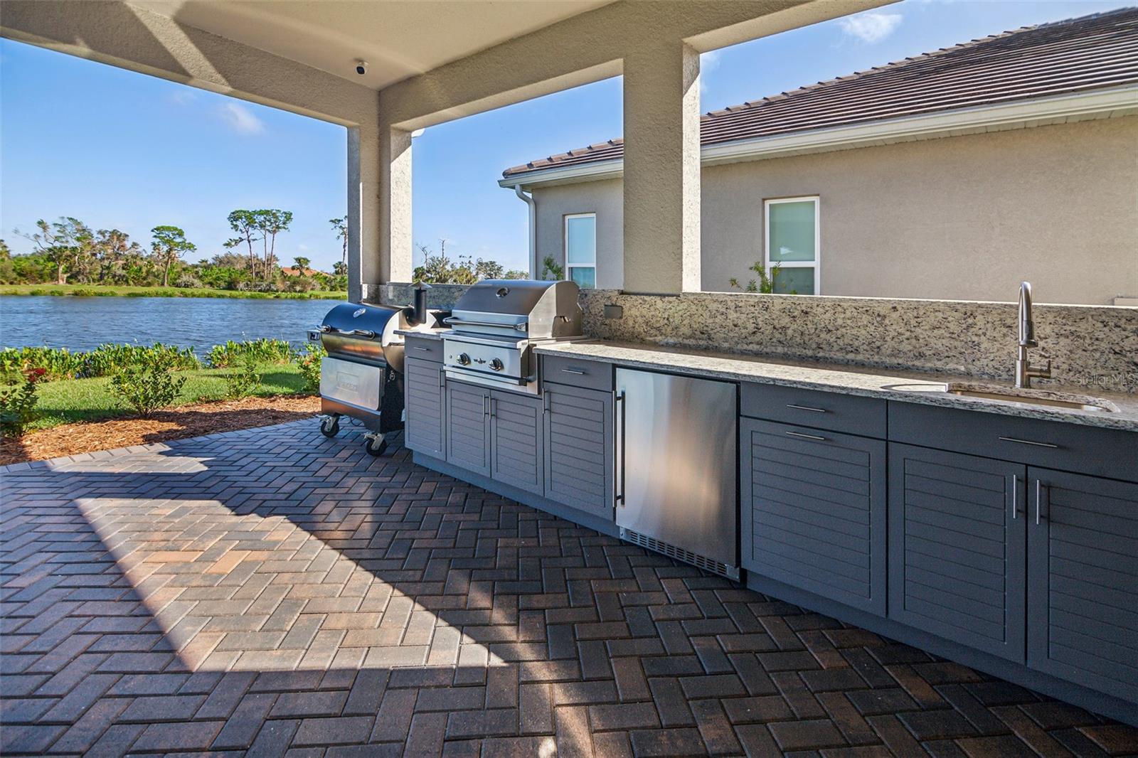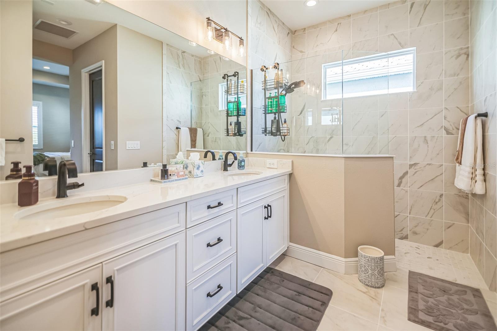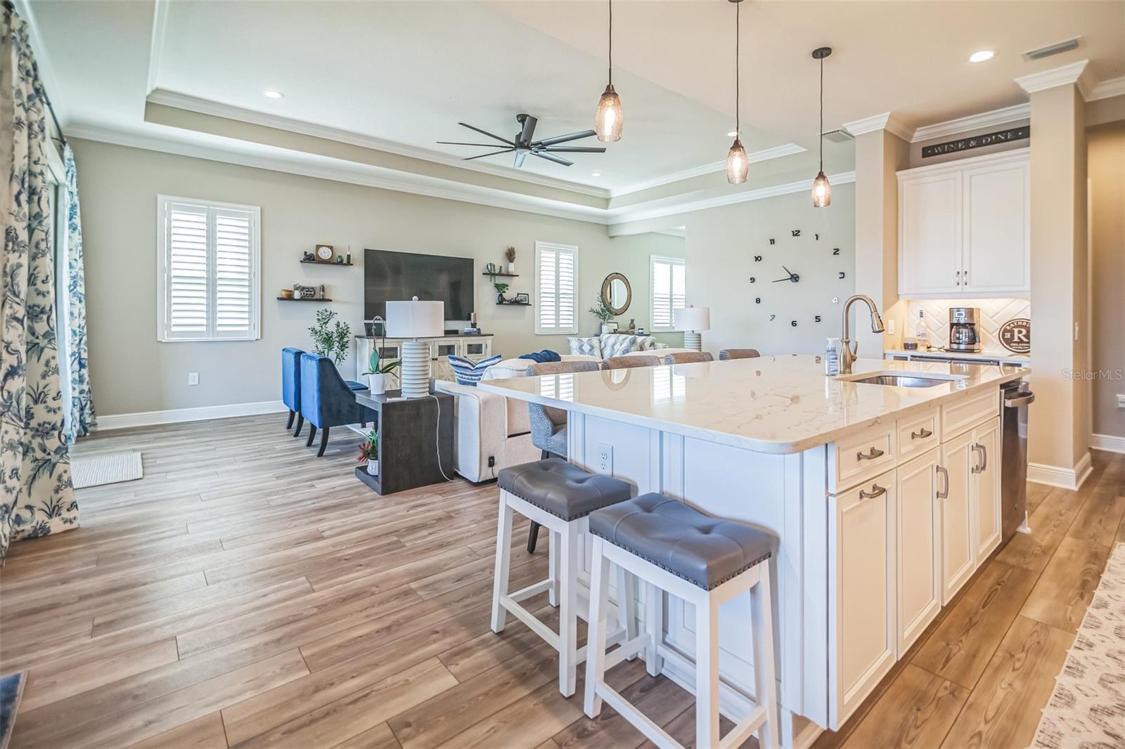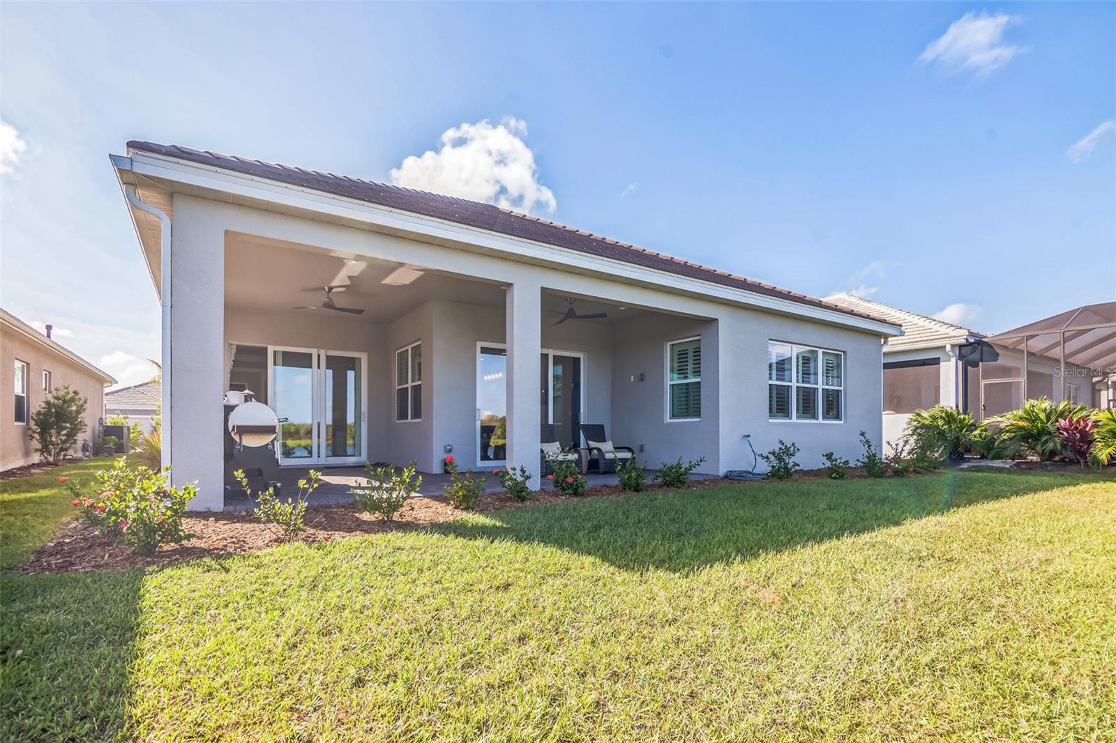 STUNNING single-family home with resort-style living! Welcome to your personal oasis in Grand Park! This exquisite home features 3 spacious Bedrooms and 2.5 Bathrooms, thoughtfully designed for comfort and convenience. Step inside to discover an expansive open floor plan, ideal for entertaining and everyday living. The elegant coffered ceilings add a touch of sophistication to the main living areas, while plantation shutters allow for customizable light and privacy. At the heart of the home is a gourmet Kitchen, showcasing beautiful quartz slab countertops with decorative tile backsplash, stainless steel appliances with a gas range, and a generous center island for additional prep space and casual dining options. A private study with double French doors provides the perfect retreat for work or relaxation, while the Primary Bedroom is a true sanctuary, complete with a luxurious spa-like bathroom that features modern fixtures and finishes. 2 additional bedrooms are connected by a Jack-and-Jill bath with dual sinks for convenience. A huge Laundry Room offers ample storage and organization options. Step outside to discover a gorgeous paver patio and fantastic outdoor kitchen, designed for entertaining while enjoying the beautiful weather! A new vibrant community, offering an array of amenities such as parks, resort-style pool, tennis courts, and more! 3-car attached garage for your convenience. Don’t miss the chance to make this beautiful home your own.
