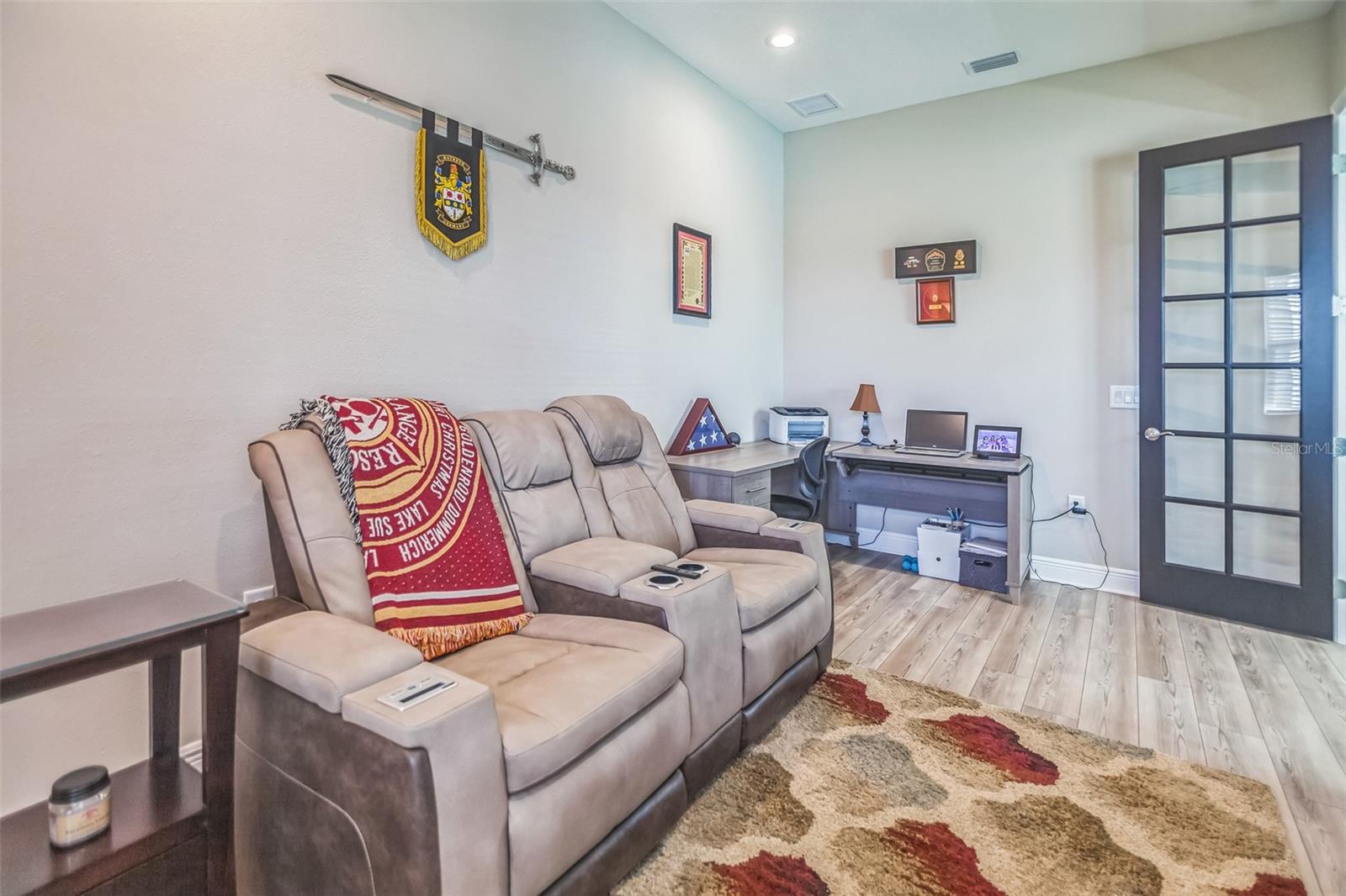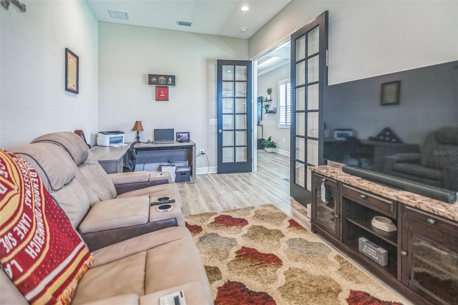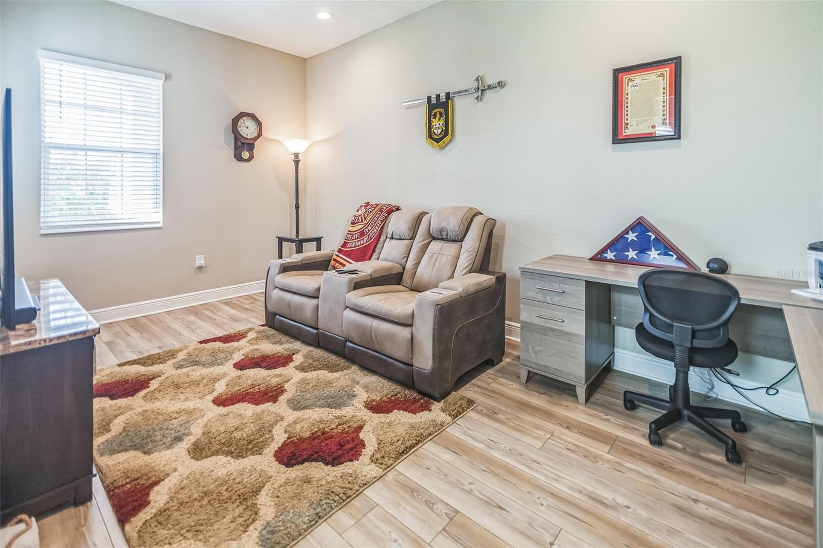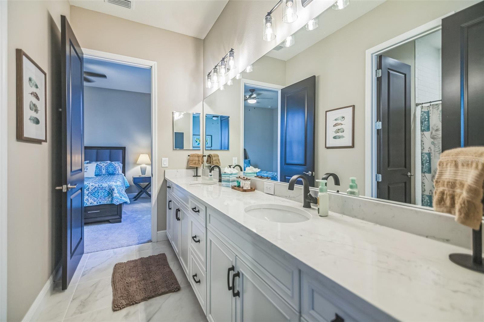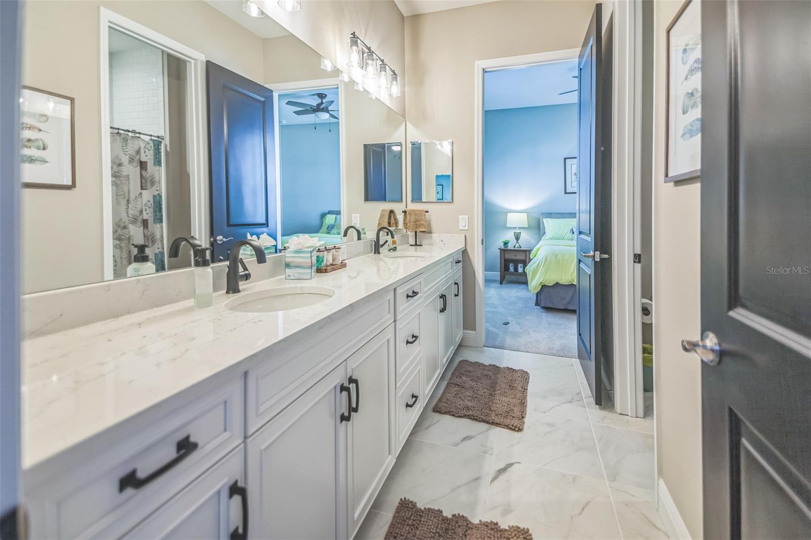 STUNNING single-family home with resort-style living! Welcome to your personal oasis in Grand Park! This exquisite home features 3 spacious Bedrooms and 2.5 Bathrooms, thoughtfully designed for comfort and convenience. Step inside to discover an expansive open floor plan, ideal for entertaining and everyday living. The elegant coffered ceilings add a touch of sophistication to the main living areas, while plantation shutters allow for customizable light and privacy. At the heart of the home is a gourmet Kitchen, showcasing beautiful quartz slab countertops with decorative tile backsplash, stainless steel appliances with a gas range, and a generous center island for additional prep space and casual dining options. A private study with double French doors provides the perfect retreat for work or relaxation, while the Primary Bedroom is a true sanctuary, complete with a luxurious spa-like bathroom that features modern fixtures and finishes. 2 additional bedrooms are connected by a Jack-and-Jill bath with dual sinks for convenience. A huge Laundry Room offers ample storage and organization options. Step outside to discover a gorgeous paver patio and fantastic outdoor kitchen, designed for entertaining while enjoying the beautiful weather! A new vibrant community, offering an array of amenities such as parks, resort-style pool, tennis courts, and more! 3-car attached garage for your convenience. Don’t miss the chance to make this beautiful home your own.
