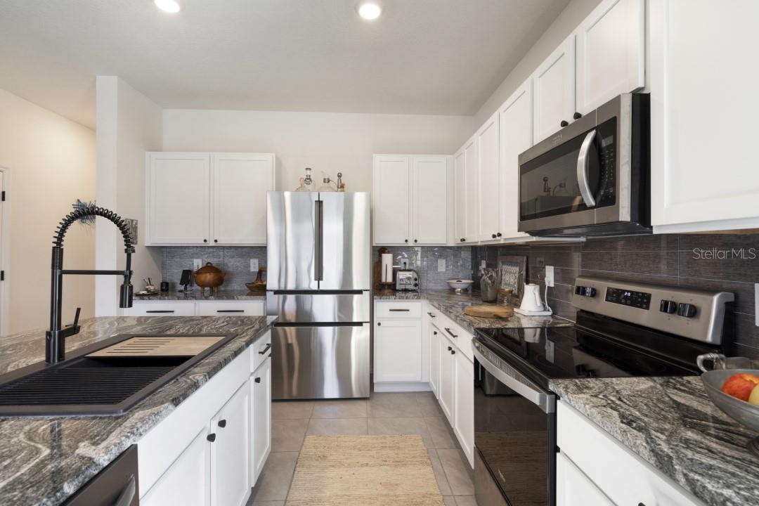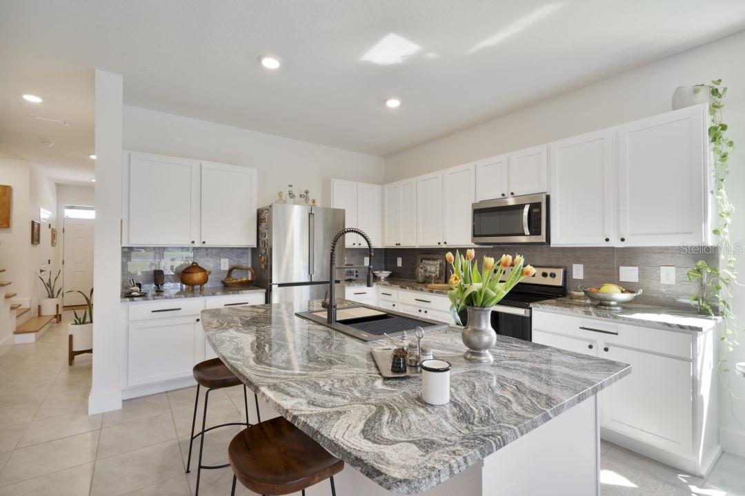 Location is everything. This property has an attractive location within the city, beautiful surroundings and high-end upgrades for comfort and refined living. If you are looking for a home to move into and enjoy it, this could be your new home. It is an end unit that has privacy and an abundance of natural light. It is surrounded by beautiful large oak trees seen from every room bringing nature to your home as well as providing for more privacy. It is located across a green preserve which has a scenic view of nature with many types of birds and a pond with a beautiful fountain enjoyable while relaxing in the lanai. This townhome is a tranquil oasis in close proximity to everything you need. The community is conveniently located right next to the Legacy Trail which provides you with 18.5 miles of recreational trail for biking/walking/running and less than 5 miles to Siesta Key Beach. It is also situated in the top rated School District. This townhome spans 1,819 square feet, providing generous space for comfortable living. A bonus loft area upstairs provides a cozy spot for a home office or a reading/tv room breaking up the space between the 3 generously sized bedrooms. The large master bedroom features abundant natural light, 2 large walk-in closets, and a dual sink vanity. The additional bedrooms are equally spacious and share a connecting bathroom. Conveniently located upstairs, the washer and dryer units has easy access for laundry chores. As you enter this home, you will be surrounded by style, functionality, and sophistication. Prior to moving in the Seller invested in extensive high end upgrades and some of them include: Flooring - installed luxury plank vinyl on the staircase and in every room upstairs (European parquet style). Remodeled the stairway to the second floor making the entry area more open and elegant. Added a new stair railing. New baseboards in the entire home. Installed quartz window sills. Created an accent wall in the living room using stylish ceramic brick panels. Kitchen - installed a granite composite kitchen sink. New counter depth refrigerator. Installed backsplash complementing the granite on the island and counter tops. Lanai - screened, installed beautifully designed in earthy tones floor tiles. Created more usable space for the barbeque area or launching chairs by installing pavers outside the lanai. Replaced hardware in all kitchen and bathroom cabinets with complimenting aesthetic and durable hardware. Replaced door hardware in the entire home with modern style hardware. Created a charming front yard by planting Italian cypress trees.Pictures are a representation.