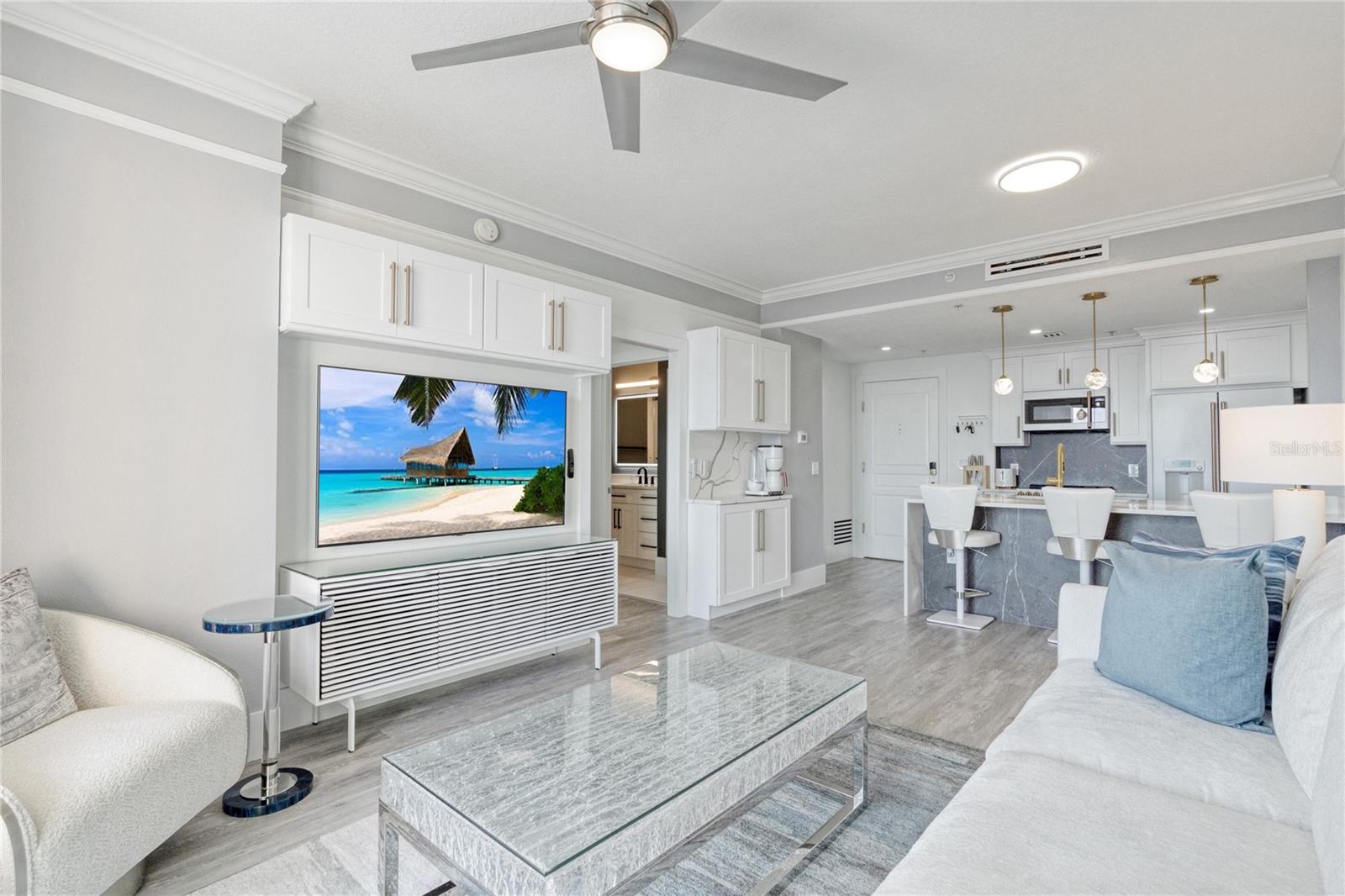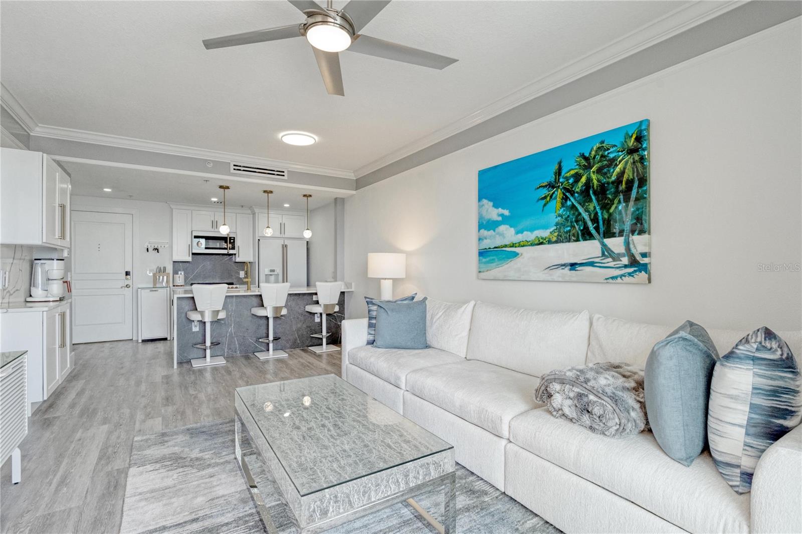 Discover urban living in this stylish condominium located at 750 N Tamiami Trl, Sarasota. This residence has a spacious layout with modern finishes, a well-equipped kitchen, and expansive windows that fill the space with natural light. Enjoy the convenience of on-site amenities including a pool, fitness center, and secure parking. Located in a vibrant neighborhood, you're just steps away from shopping, dining, and cultural attractions. Experience the best of Sarasota living in this beautiful condo. Full high-end renovation from floor to ceiling completed in January 2025. This condo comes with 2 side by side penthouse parking spots on the second floor next to the entrance and 1 oversized parking spot on the first floor as well as a oversized secured penthouse storage unit on the 2nd floor. This condo is being sold fully furnished and turnkey. All brand-new high-end furniture and bedding purchased from Robb & Stucky in Sarasota. Turnkey bathroom and kitchen from Williams Sonoma and Pottery Barn. All Brand-new appliances GE Cafe and new washer and dryer Electrolux.