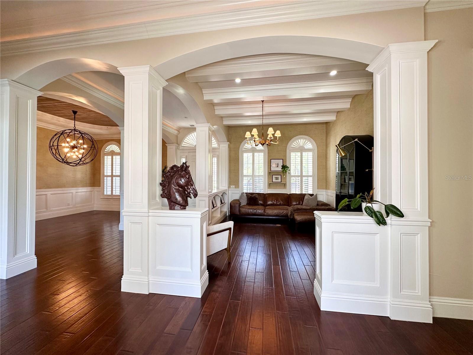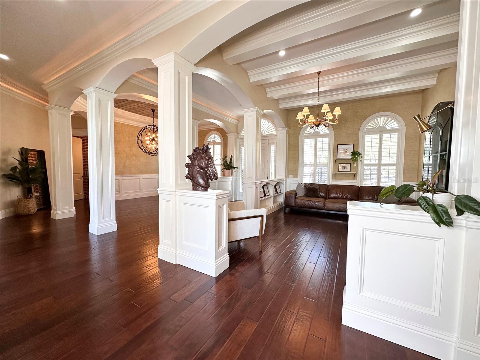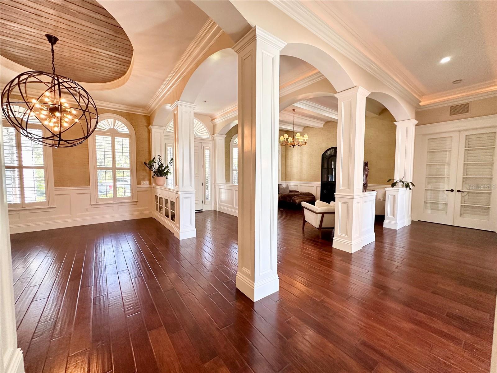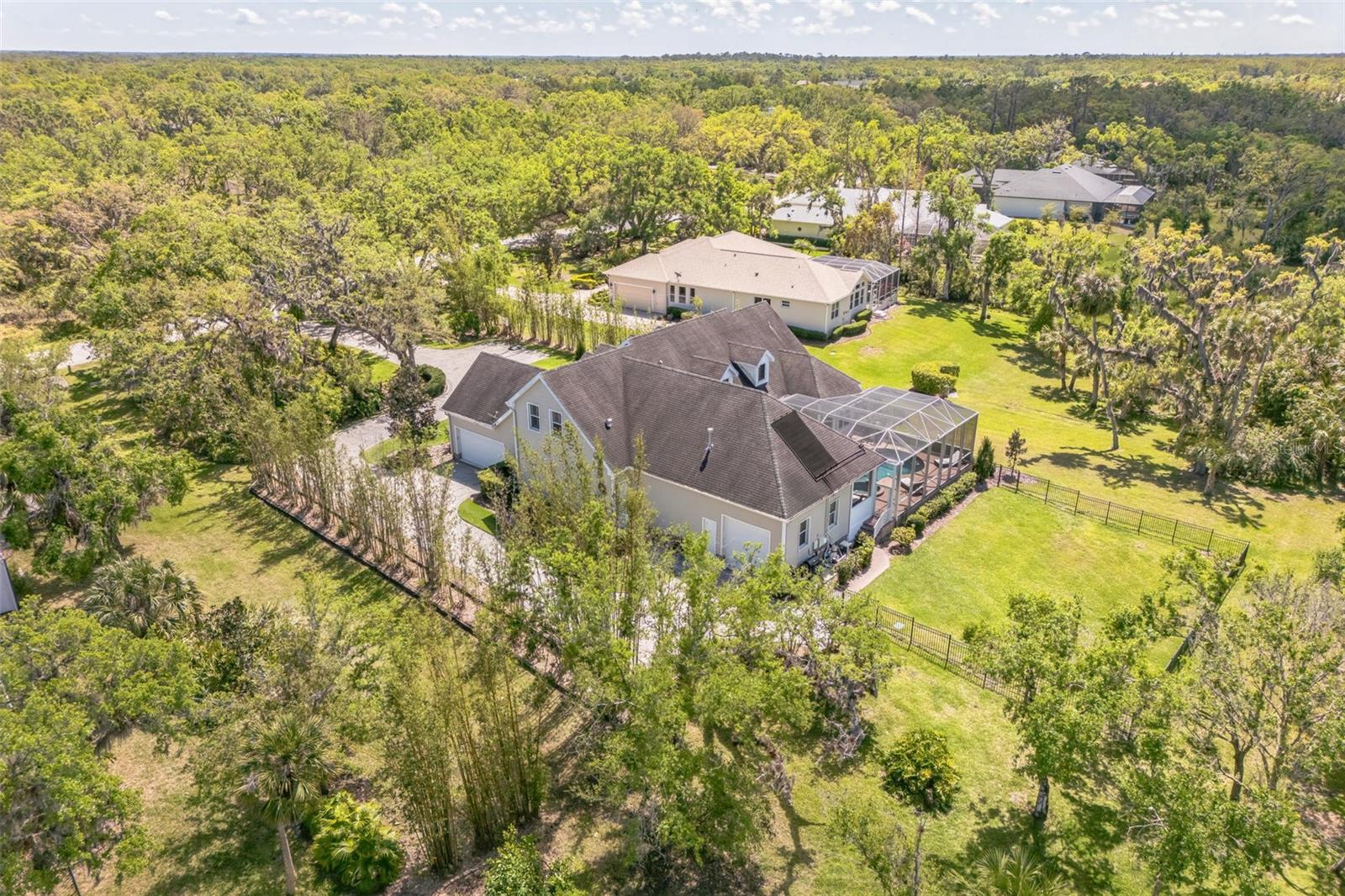 Welcome to 1570 Oakford Rd, a breathtaking 4-bedroom, 2 full-bath, 2 half-bath estate with 4,300 sq. ft. of living space, nestled on just under an acre of lush, private land. Surrounded by mature trees—including magnolias, oaks, cedars, and bamboo—this home offers unparalleled privacy and serenity, where you can often spot deer grazing in the backyard. Thoughtfully positioned on the lot, this home provides ample space in both the front and backyards, ensuring plenty of privacy. As you approach, a spacious front porch welcomes you, set back from the road and framed by gorgeous landscaping. Step inside, and you’ll be captivated by the exceptional craftsmanship and attention to detail, from intricate woodwork to plantation shutters throughout the home. The high ceilings on both floors create an airy, elegant atmosphere, with coffered ceilings on the first floor adding a touch of grandeur. Custom lighting features and built-ins throughout the home, paired with dimmers in key areas, allow you to create a warm and inviting ambiance at any time of day. The gourmet kitchen is a chef’s dream, featuring a gas stove, premium upgraded appliances, and an open layout perfect for entertaining. Just off the kitchen, a cozy breakfast nook offers the perfect spot to enjoy morning coffee, while a separate formal dining room provides an elegant space for hosting dinner parties. The luxurious master suite, located on the ground floor, is a true retreat. It features tray ceilings with a custom finish, a grand double-door entry, and direct access to the pool area. The spa-like ensuite includes an oversized shower, travertine tile flooring and shower, his-and-hers sinks, and a private water closet. His-and-hers walk-in closets provide ample storage, completing this exquisite primary suite. The remaining three oversized bedrooms are located on the second floor, each easily accommodating a king-size bed. Throughout the home, French doors open onto the pool area, allowing for wonderful natural light and airflow. The back patio and pool area are elevated, offering a great view of the property and enhancing the home’s connection to its serene surroundings. Step outside to your caged pool and hot tub, an outdoor kitchen, and a fully fenced yard—perfect for gatherings or quiet evenings under the stars. For added convenience, the home features two attached garages, offering ample space for parking or storage. The double garage is equipped with a Tesla EV charger, making it ideal for electric vehicle owners. This home is a rare find, blending character, quality craftsmanship, and modern upgrades in a stunning natural setting. Don’t miss your chance to own this exceptional property—schedule your private tour today!