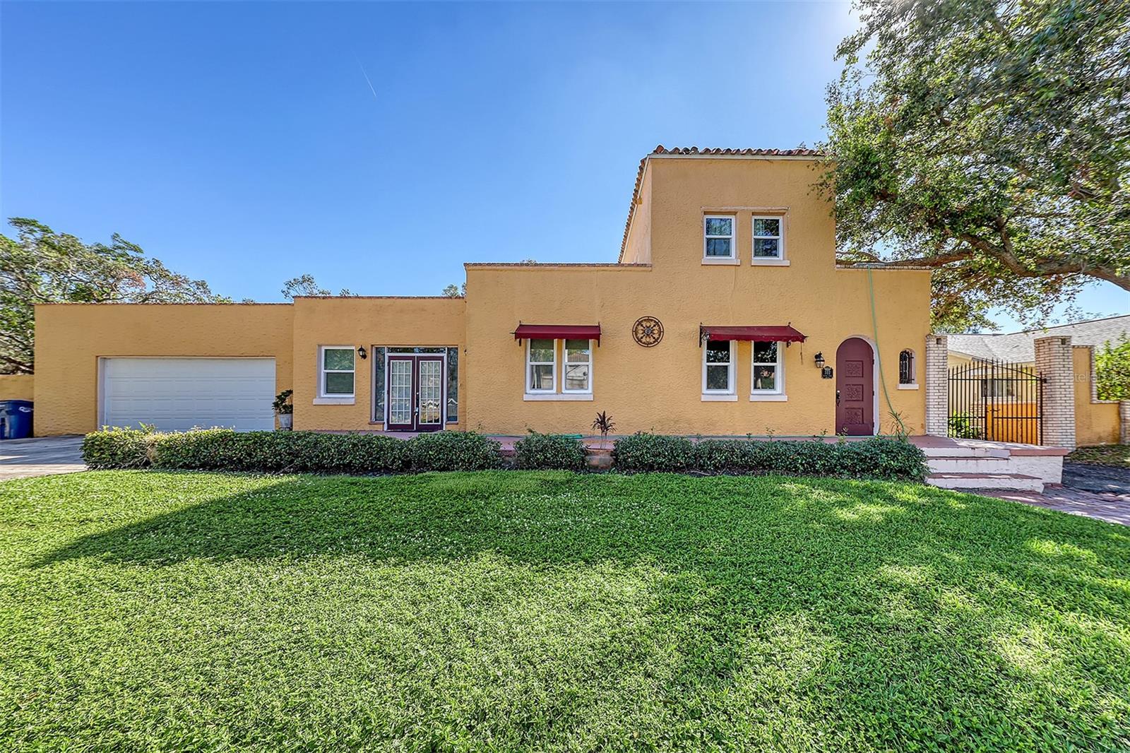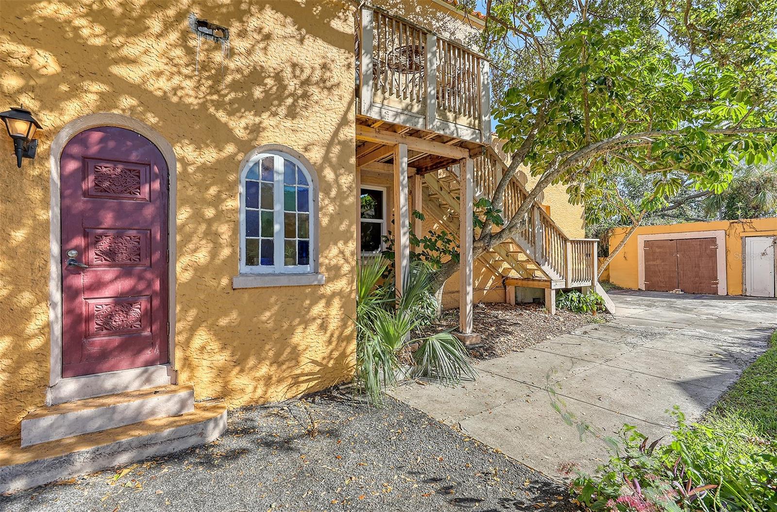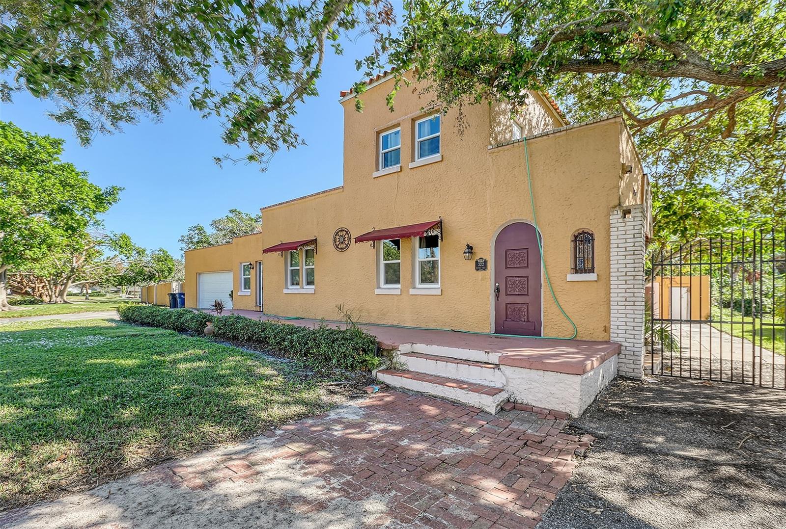 Motivated Sellers. $50k under appraisal!! Charming, 1920’S Spanish Style Home with all major systems updated. Hurricane windows last yr, 3 yr old roof, PVC plumbing/copper throughout, HVAC 6 yrs, breaker panels. Walled, gated, spacious back yard on 1/2 acre lot with 6 zone sprinkler system. This 4 bed/ 3 bath home is a 3/2 downstairs and another bed/bath upstairs, which has provided great rental income. Stairs inside and outside allow it to be used as a rental or 4/3 with attached. There is an oversized 1 car garage, incl. sink, W/D and work bench. There is an outside storage bldg as well. High ceilings, original stained glass and hardwood floors, as well as 2 living rooms and a fireplace add to the charm. It's close to the water but not in flood zone. Manatee County taxes (sarasota address), 2 blocks from prestigious SaraBay Country Club, this lovely, well taken care of home is a must see for anyone who doesn't want 'cookie-cutter.