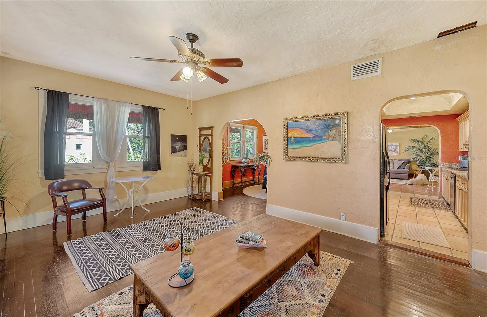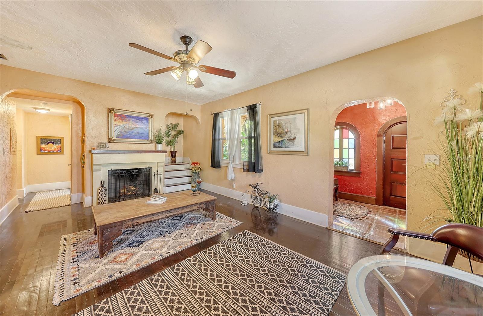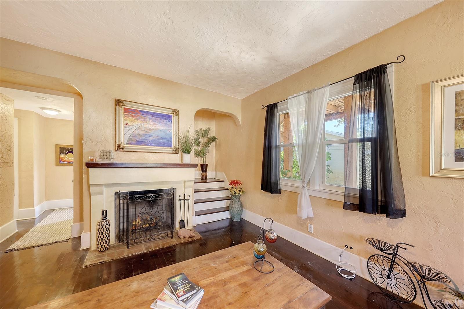 Motivated Sellers. $50k under appraisal!! Charming, 1920’S Spanish Style Home with all major systems updated. Hurricane windows last yr, 3 yr old roof, PVC plumbing/copper throughout, HVAC 6 yrs, breaker panels. Walled, gated, spacious back yard on 1/2 acre lot with 6 zone sprinkler system. This 4 bed/ 3 bath home is a 3/2 downstairs and another bed/bath upstairs, which has provided great rental income. Stairs inside and outside allow it to be used as a rental or 4/3 with attached. There is an oversized 1 car garage, incl. sink, W/D and work bench. There is an outside storage bldg as well. High ceilings, original stained glass and hardwood floors, as well as 2 living rooms and a fireplace add to the charm. It's close to the water but not in flood zone. Manatee County taxes (sarasota address), 2 blocks from prestigious SaraBay Country Club, this lovely, well taken care of home is a must see for anyone who doesn't want 'cookie-cutter.