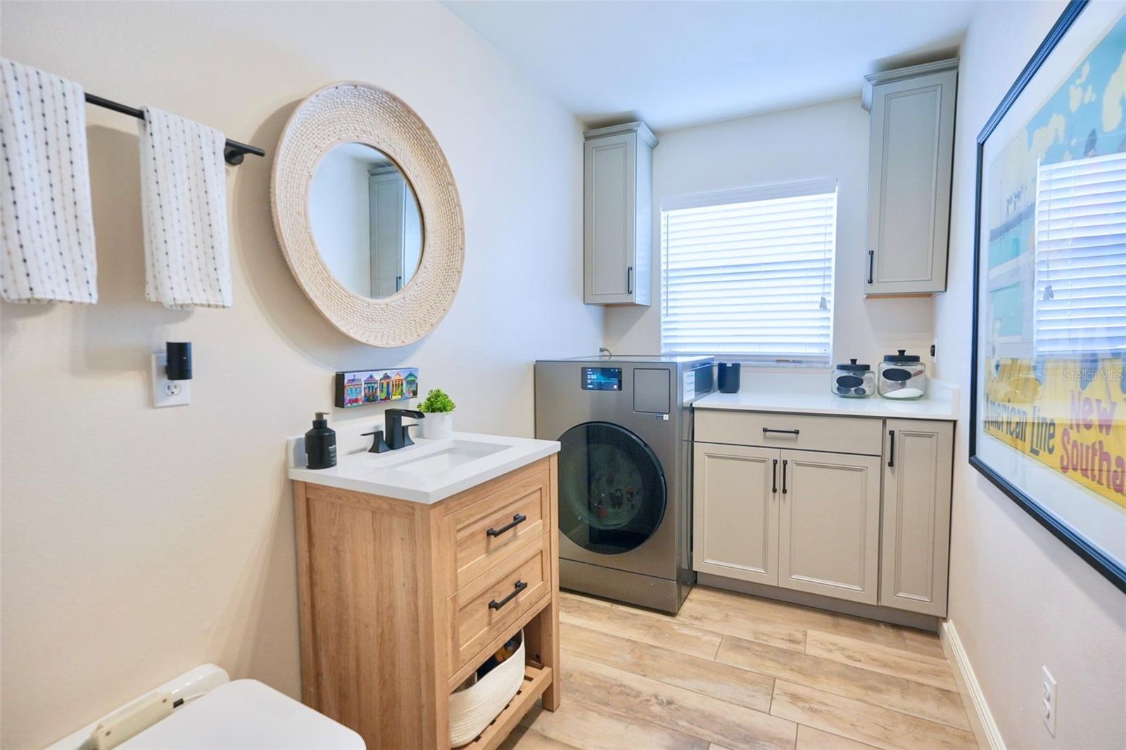 Welcome home to The Lakes 111. Where mature Oak trees surround this picturesque neighborhood. The Lakes has two community pools one heated with heated spas. A gym, a basketball court, playground, two tennis courts, and walking trails around a beautiful lake. Truly making you feel like you are in a different world. Nestled in the back of this highly desirable neighborhood. You will find a beautifully updated modern 5 bed plus office / 3.5 bath home. This expansive home has nearly 3100 ft.² of freshly painted beauty. It features an updated kitchen and bathrooms, quartz countertops, high end stainless steel kitchen appliances with a wine fridge. The quartz wood burning fireplace is a must for chilly winter nights. You will fall in love with the master suite. It encompasses the whole right wing of the house with 3 closets and master bathroom. New mechanicals, including HVAC two years old, energy efficient heat pump/water heater less than one year old and energystar pool pump that is three months old. Hurricane rated garage door, windows and doors. Here you can truly live the indoor outdoor lifestyle with 3 fully opening pocket slinging glass doors. These doors open onto the expansive patio/pool deck. Fully screened in pool cage, outdoor kitchen with quartz countertops , outdoor shower and both shaded or sunny lounging areas. Take your pic. Or you can sit by the custom out door fire pit and overlook the picturesque views of Phillipee Creek with its abundant wildlife. No neighbors behind you!!