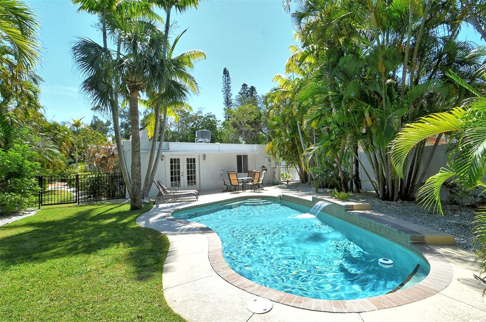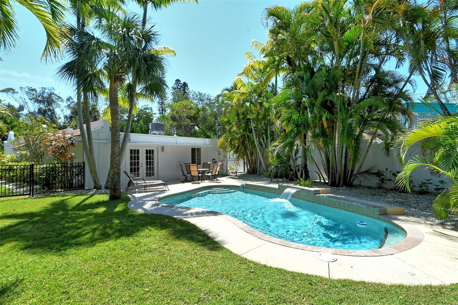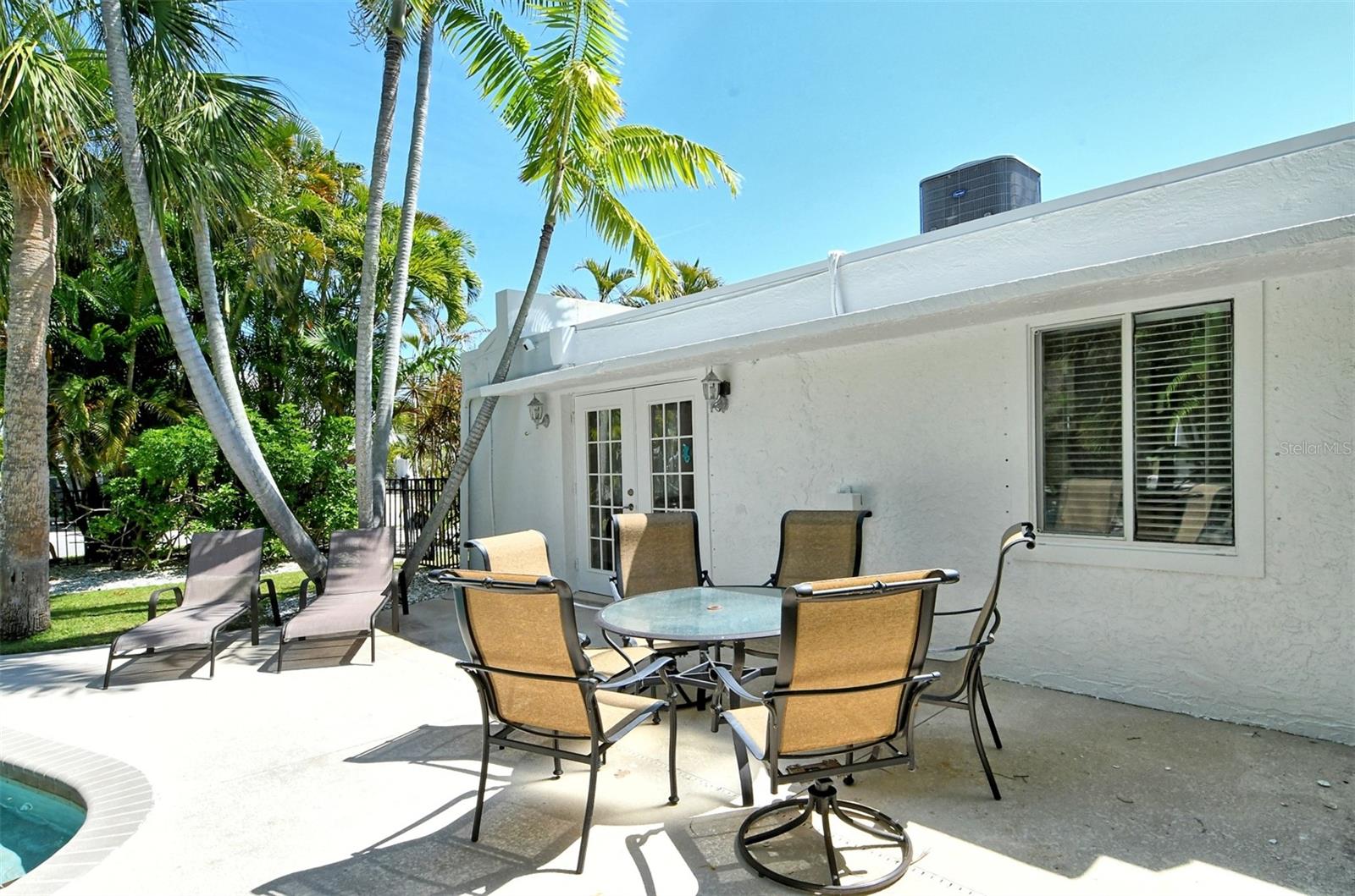 Introducing "Casa del Sol," a captivating Spanish-style beachside residence in the heart of Siesta Key’s coastal paradise. This remarkable 3 bedroom/2 bath home offers an elegant and timeless coastal charm. The home is richly detailed with beamed ceilings, and numerous porches, patios, and picturesque settings for outdoor entertaining. This oversized corner lot boasting approximately 200ft of frontage provides lush, mature tropical landscaping with numerous stunning specimen palms creating the ultimate in privacy. Once inside you are greeted by an abundance of natural light from the expansive great room which opens to the heart of the home, the chefs kitchen featuring high-end appliances, Granite countertops providing ample prep space, additional seating and custom built-in cabinetry. The spacious primary suite features French doors which lead to a private patio for that resort style relaxation anytime of day. The dining room also features French doors which leads outside, where paradise awaits with a large swimming pool & waterfall for refreshing dips on sunny days. This exceptional property’s location not only provides unparalleled access to the coastline but is just footsteps to Siesta Key’s most celebrated restaurants, shops, and beaches. Embrace Casa Del Sol’s coastal allure and make it yours!