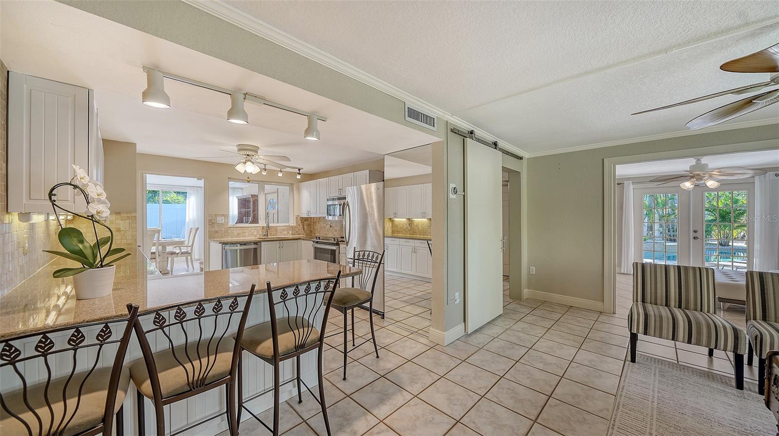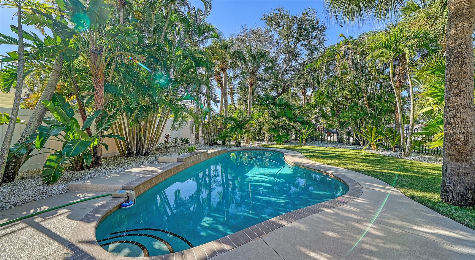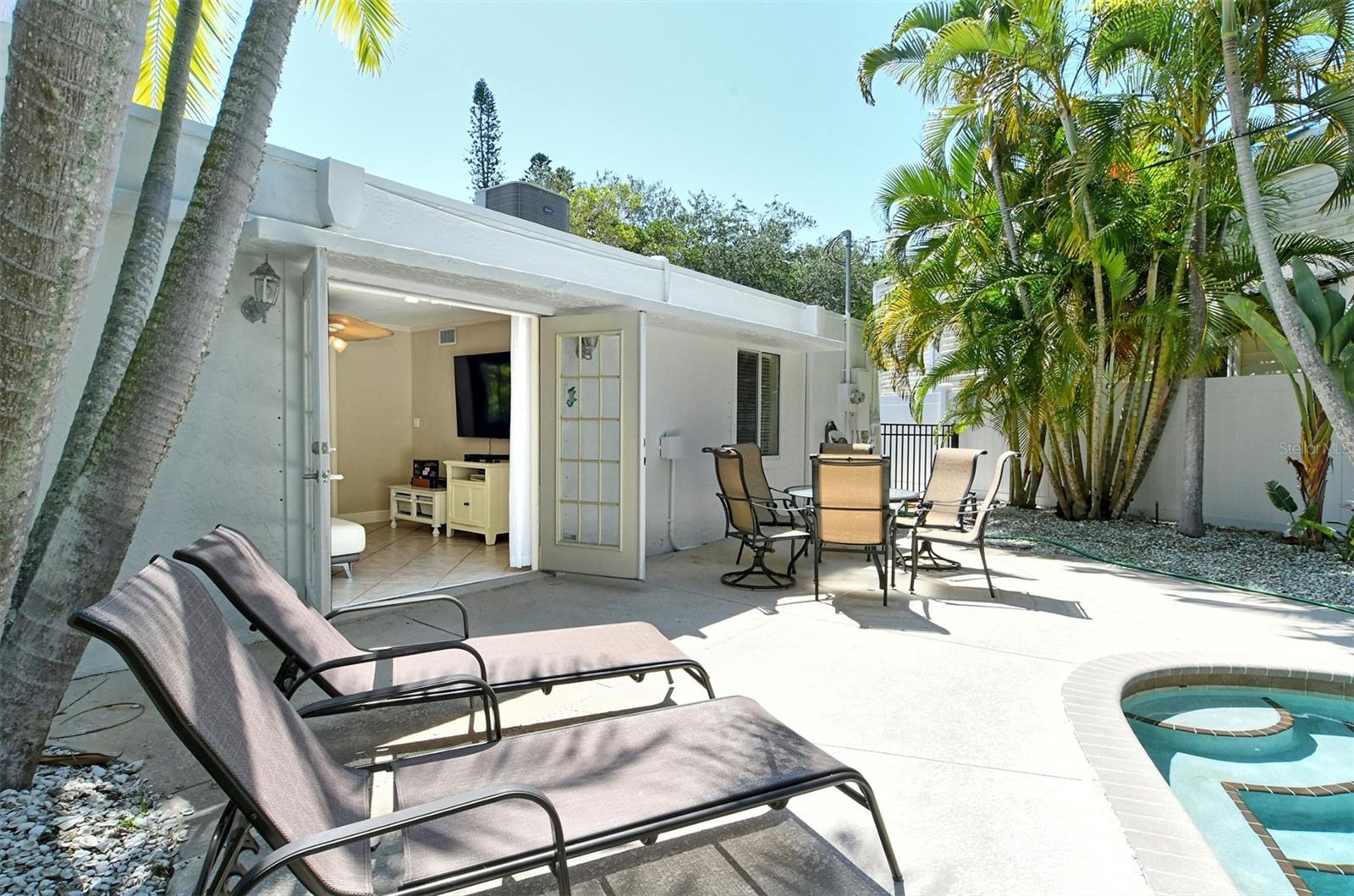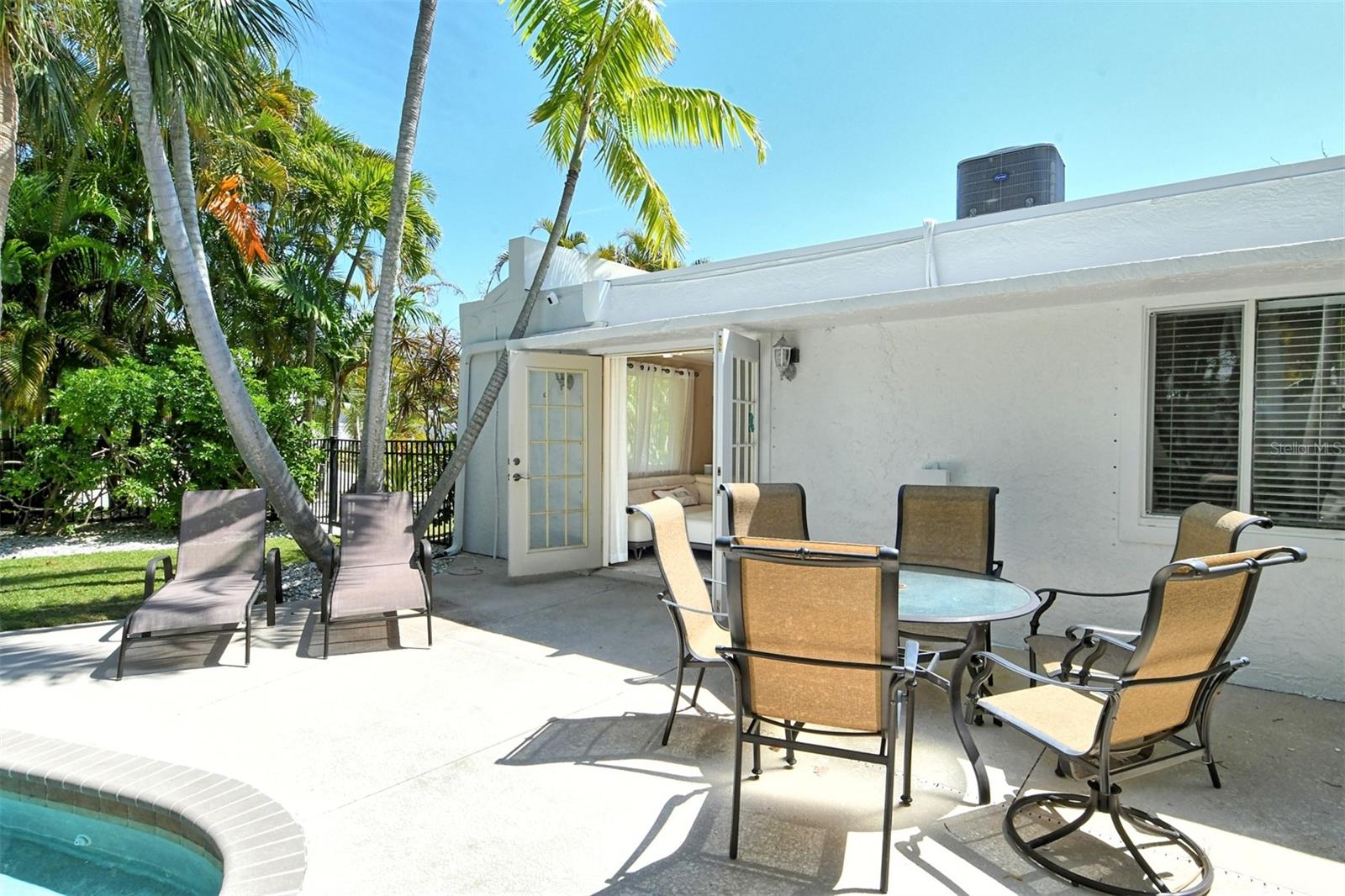 Introducing "Casa del Sol," a captivating Spanish-style beachside residence in the heart of Siesta Key’s coastal paradise. This remarkable 3 bedroom/2 bath home offers an elegant and timeless coastal charm. The home is richly detailed with beamed ceilings, and numerous porches, patios, and picturesque settings for outdoor entertaining. This oversized corner lot boasting approximately 200ft of frontage provides lush, mature tropical landscaping with numerous stunning specimen palms creating the ultimate in privacy. Once inside you are greeted by an abundance of natural light from the expansive great room which opens to the heart of the home, the chefs kitchen featuring high-end appliances, Granite countertops providing ample prep space, additional seating and custom built-in cabinetry. The spacious primary suite features French doors which lead to a private patio for that resort style relaxation anytime of day. The dining room also features French doors which leads outside, where paradise awaits with a large swimming pool & waterfall for refreshing dips on sunny days. This exceptional property’s location not only provides unparalleled access to the coastline but is just footsteps to Siesta Key’s most celebrated restaurants, shops, and beaches. Embrace Casa Del Sol’s coastal allure and make it yours!