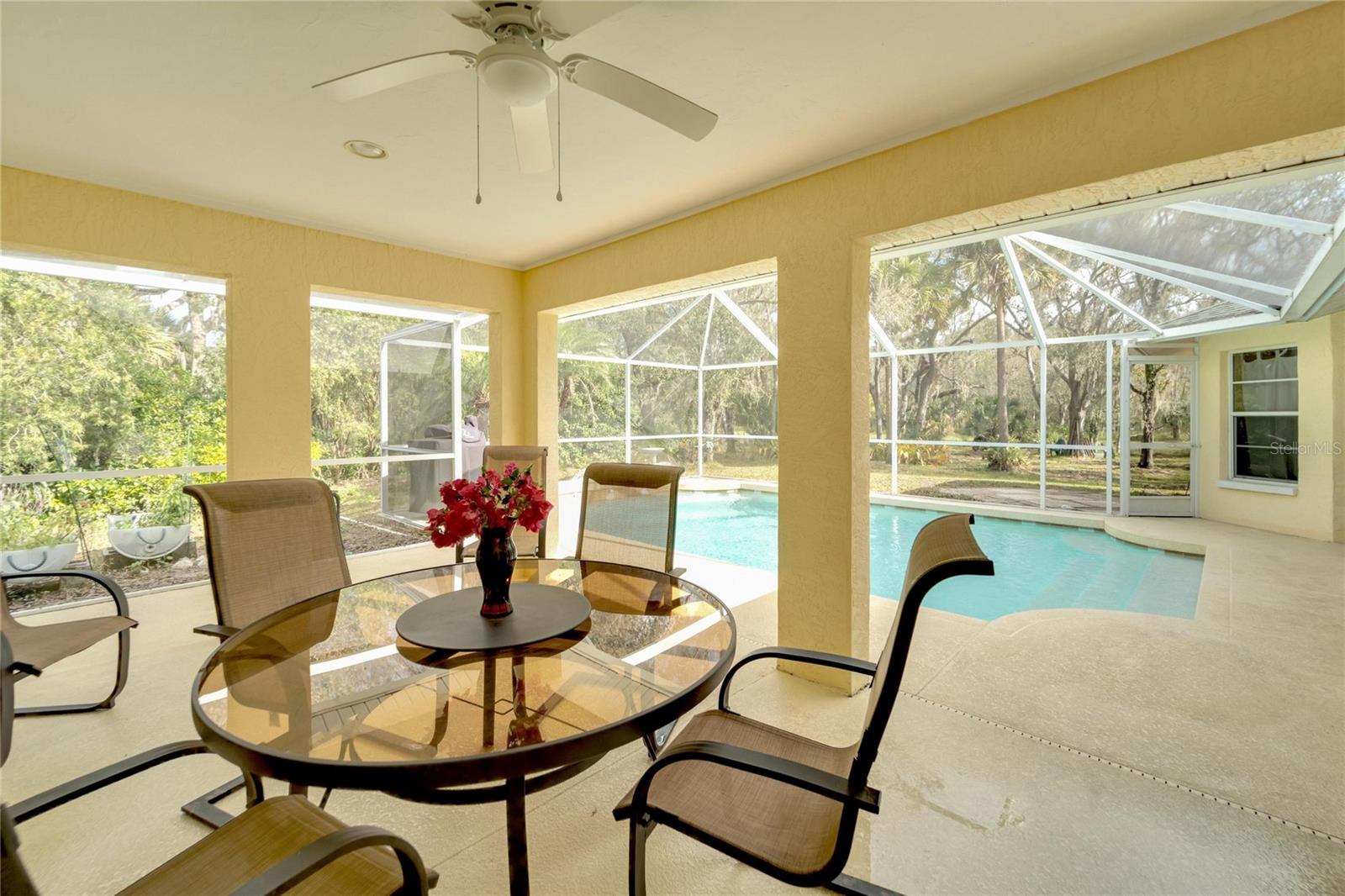 **SELLER IS OFFERING $37,500 IN SELLER CONCESSIONS** Welcome to an unparalleled oasis of luxury and tranquility, where sophistication meets serenity on 5.5 acres of pristine land in one of the most exclusive and quiet neighborhoods in desirable Sarasota. Nestled within the woods of Oak Ford, this estate redefines opulent living with an unmatched combination of privacy and natural beauty. As you approach the entrance, a tree-lined (and circular) driveway leads you to an impressive façade complete with natural coral columns, setting the tone for the elegance that awaits within. Step through the double-glass door entrance and immediately notice the clear, sleek breathtaking view of the pool and wooded backyard that peeks beyond the oversized living and dining area. All of the expansive living spaces are bathed in natural light, seamlessly connecting indoor and outdoor living. The gourmet kitchen is a masterpiece, featuring top-of-the-line appliances, double pantries, and a massive breakfast bar providing the perfect setting for culinary endeavors and casual dining (either at the bar or dinette space). The kitchen is open to the cozy family room offering the warmth of the gas fireplace. Never miss a moment of the entertainment with this open floor plan. The formal dining room (and living room) are elegant spaces for hosting gatherings, while the other spacious living areas offer panoramic views of the lush surroundings. The master suite is a sanctuary of indulgence. As you travel through the French doors down a secluded hallway, you’ll find a spacious bedroom with a private entrance into the backyard oasis, his and hers walk-in closets, and a luxurious en-suite bathroom. The primary bathroom offers a walk-in shower, separate spa-tub and heat lamps! Additional bedrooms, each with a separate bathroom and in their own secluded area of the home, provide comfort and privacy for family and guests. Step outside to discover a landscaped (and natural) paradise, complete with an enclosed lanai, heated pool, and plenty of room for outdoor dining. The expansive grounds offer endless possibilities or simply an untouched peaceful retreat surrounded by nature. This estate is not merely a residence; it's a lifestyle. With 5.5 acres of land, this property offers a rare combination of space and luxury. The quiet neighborhood ensures a peaceful retreat from the hustle and bustle of everyday life while being just moments away from the amenities of the city (including Sarasota nightlife, hot spots, restaurants, shopping, and award-winning beaches)!