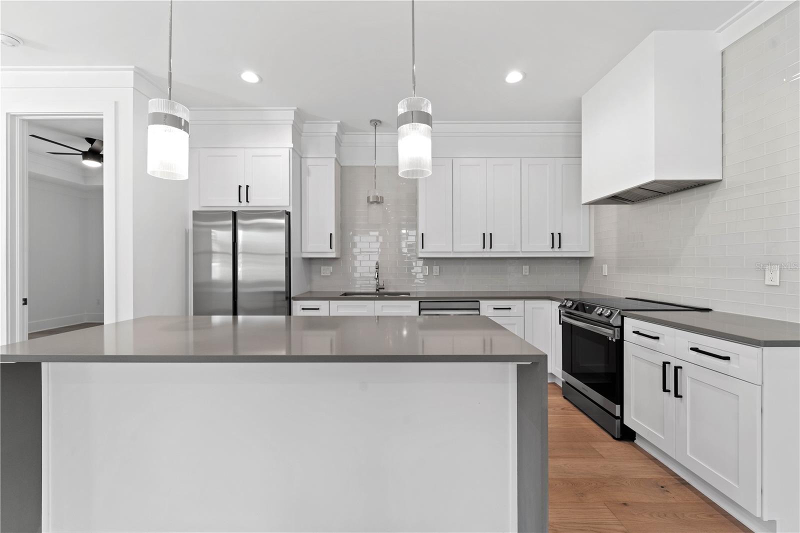 Experience luxury living at its finest with this stunning custom residential masterpiece! Nestled in a collection of four adjacent homes, this immaculate two-story traditional model boasts unrivaled craftsmanship and top-tier amenities. From its soaring 9’-4” ceilings and elegant crown molding to the gourmet kitchen featuring an entertainer’s dream island, every detail exudes sophistication. Revel in the allure of all-wood cabinets, quartz countertops, and pristine wood flooring throughout. Enhanced by block construction and upgraded underground electric service, this home offers both durability and style. Bask in natural light streaming through custom PGT Florida Impact Rated windows and doors, illuminating the spacious master suite, loft, and storage areas. Step outside to the expansive rear concrete lanai and embrace the Florida lifestyle. This home has been thru 2 Hurricanes and has zero damage, no flooding, No Flood Insurance required! Located just minutes from downtown Sarasota, St. Armands Circle, and Lido Beach, indulge in upscale shopping, dining, and entertainment. Landscaping includes lush St Augustine grass, plants, shrubs, and trees, complemented by a separate irrigation meter and system. Welcome home to luxury without the constraints of HOA or CDD fees! 4.99% interest rate on this beautiful home (5.30% APR) for qualified buyers!!