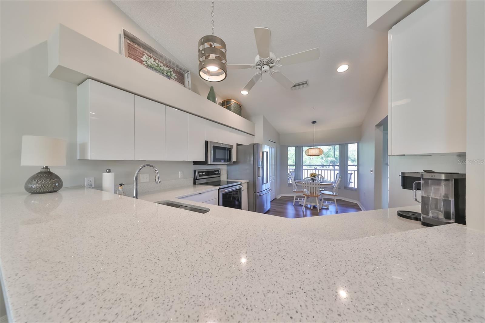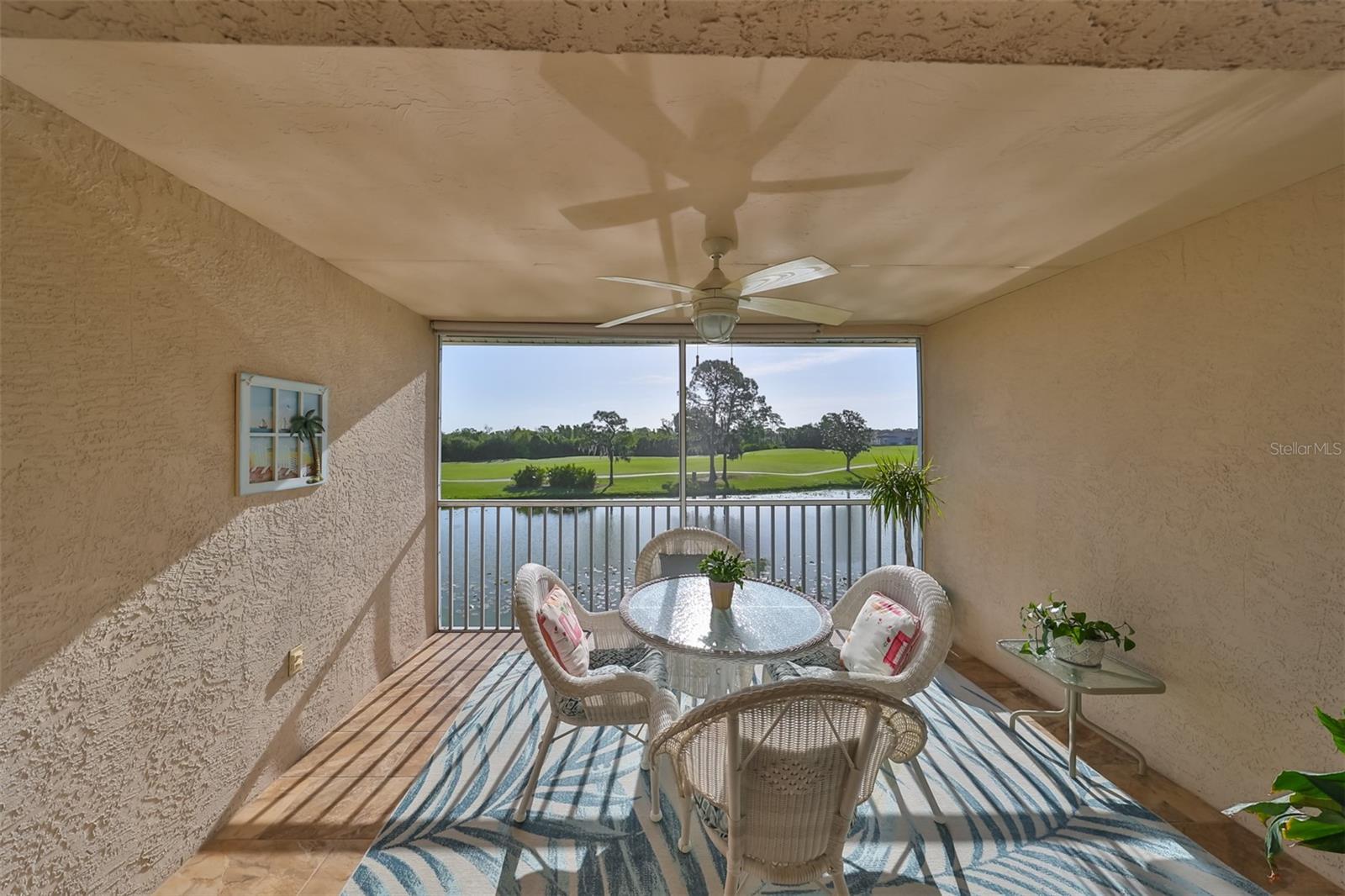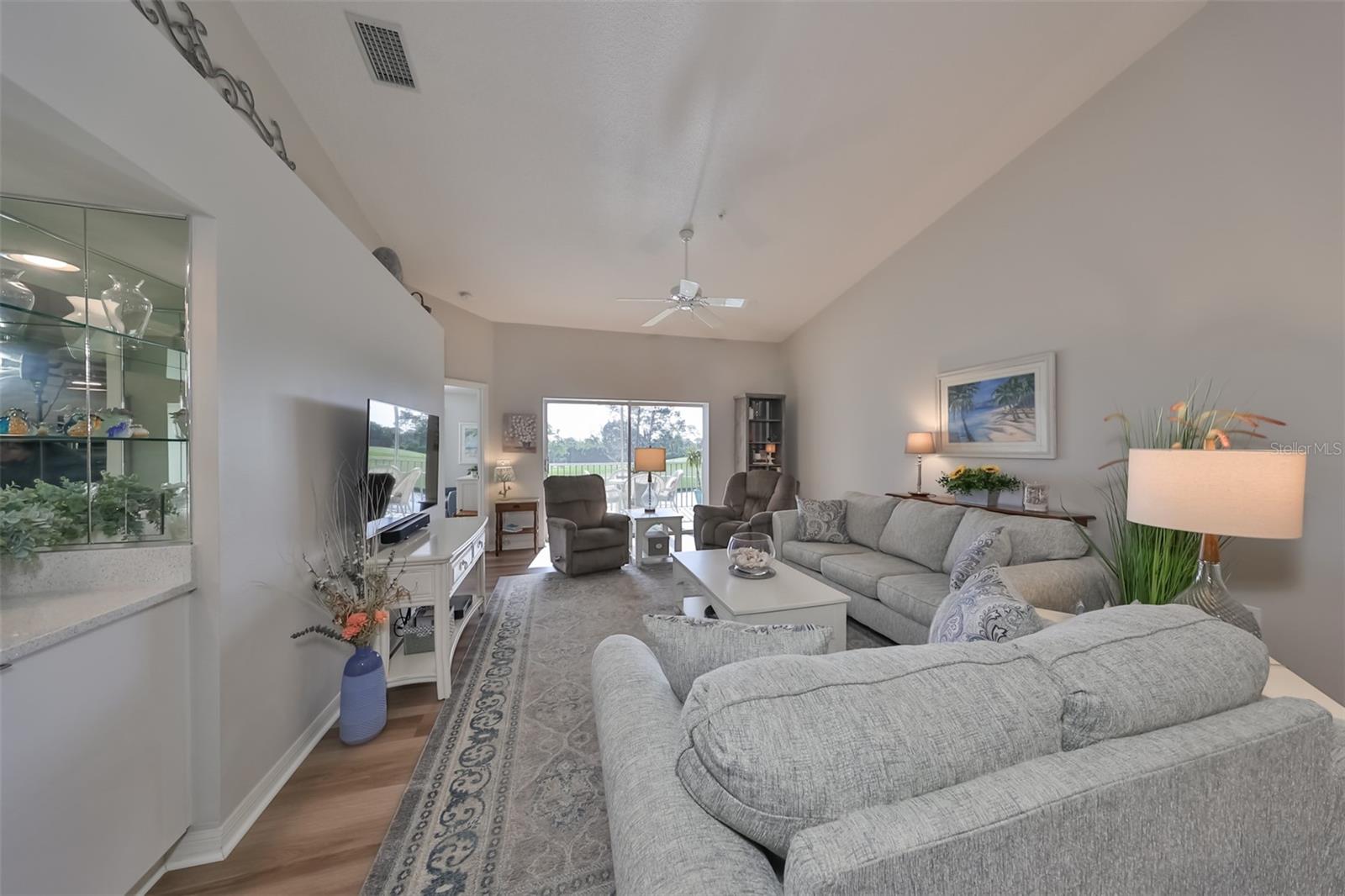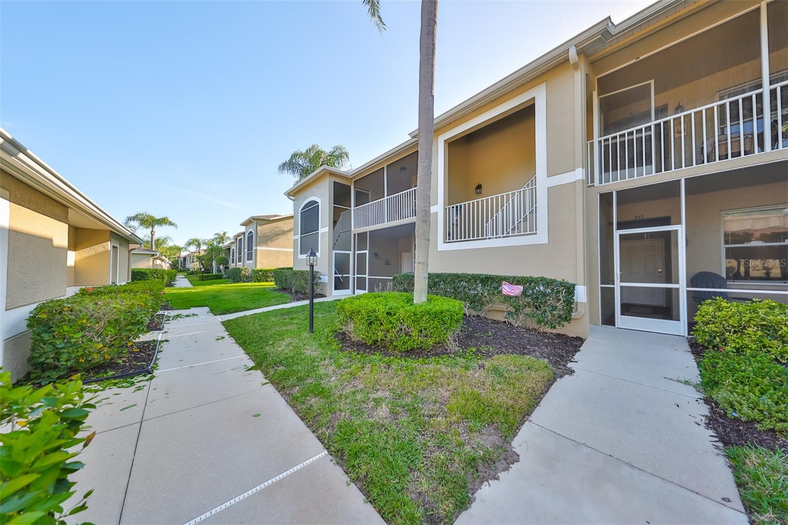 Welcome home to your wonderfully updated Abbey floor plan, Veranda Home! This home is move-in ready with an updated kitchen, beautiful luxury plank vinyl flooring, newer appliances, AC, and hot water heater. There's a large soaker tub and separate shower in the primary with two walk-in closets. Since you're an end unit the natural light you receive from the window in your den makes it the perfect place to work from home. The second bedroom and bathroom have ample room for your guest and are privately located at the front of the home. The amazing view of the 13th hole from one of your two screened balconies will mesmerize you as you watch for wildlife and golfers! A Home Warranty is being offered for peace of mind to the new buyer. Heritage Oaks is a highly sought-after gated community with five heated swimming pools, an 18-hole golf course, a clubhouse, two restaurants, a fitness center, and many scheduled activities. A designation as a Certified Audubon Neighborhood ensures the abundance of wildlife and beautifully maintained natural vegetation. You're going to love this home and its great location convenient to beaches, airports, shopping, and many tourist attractions!
