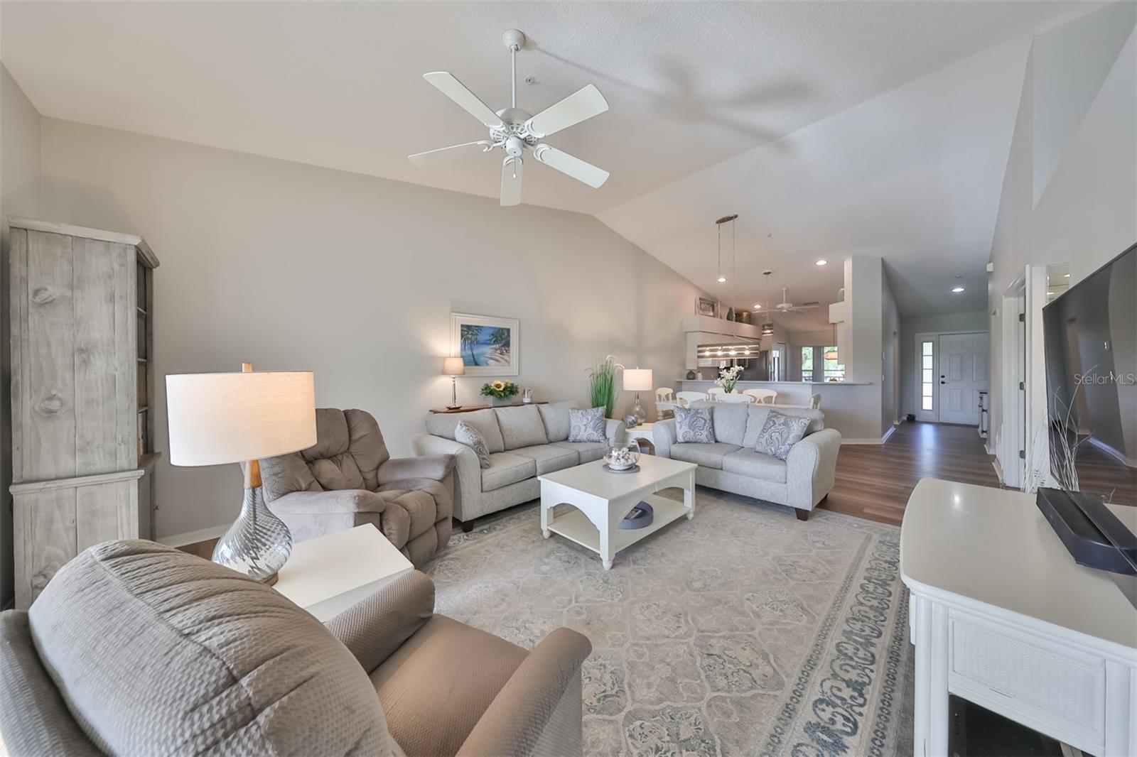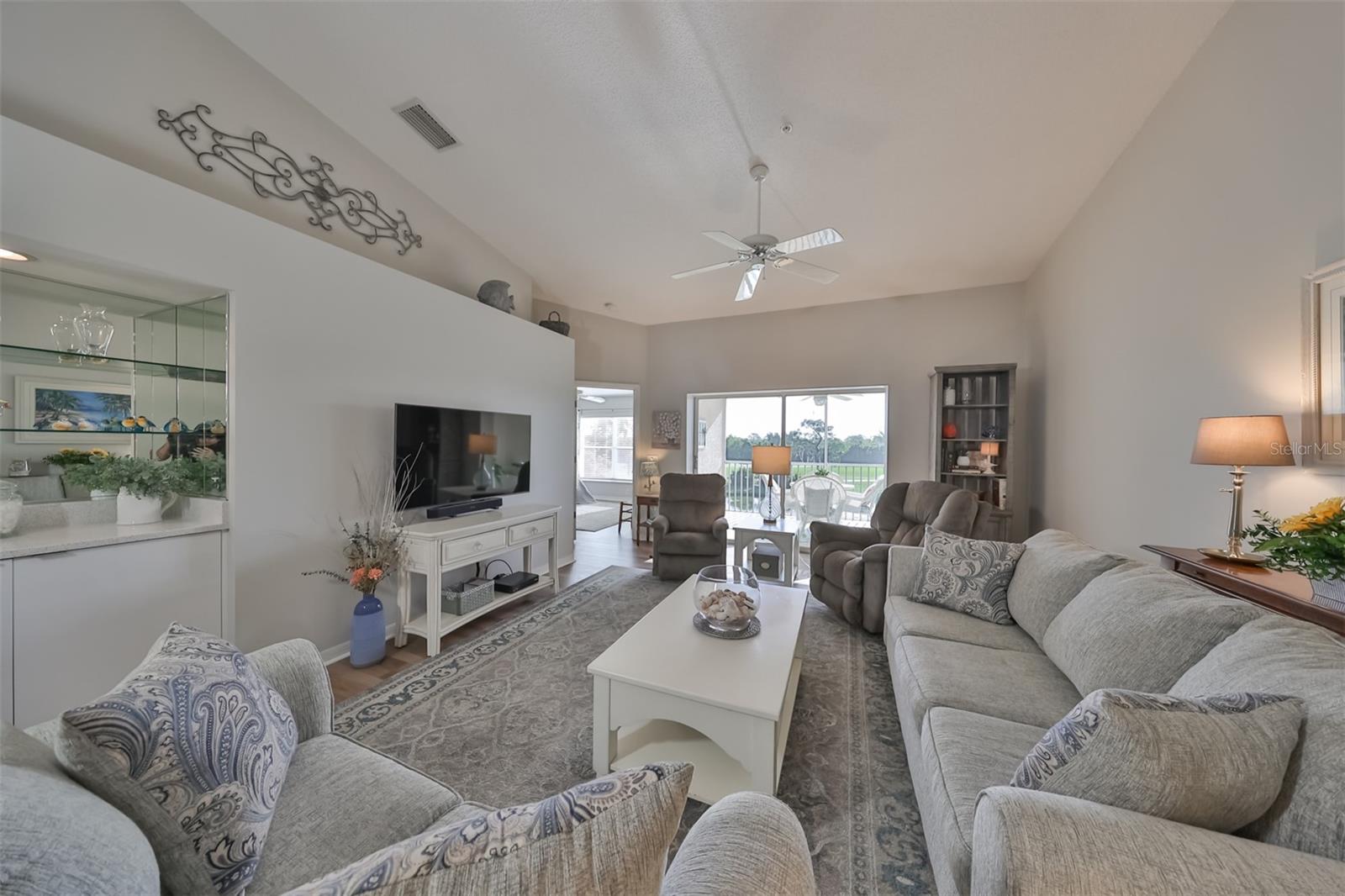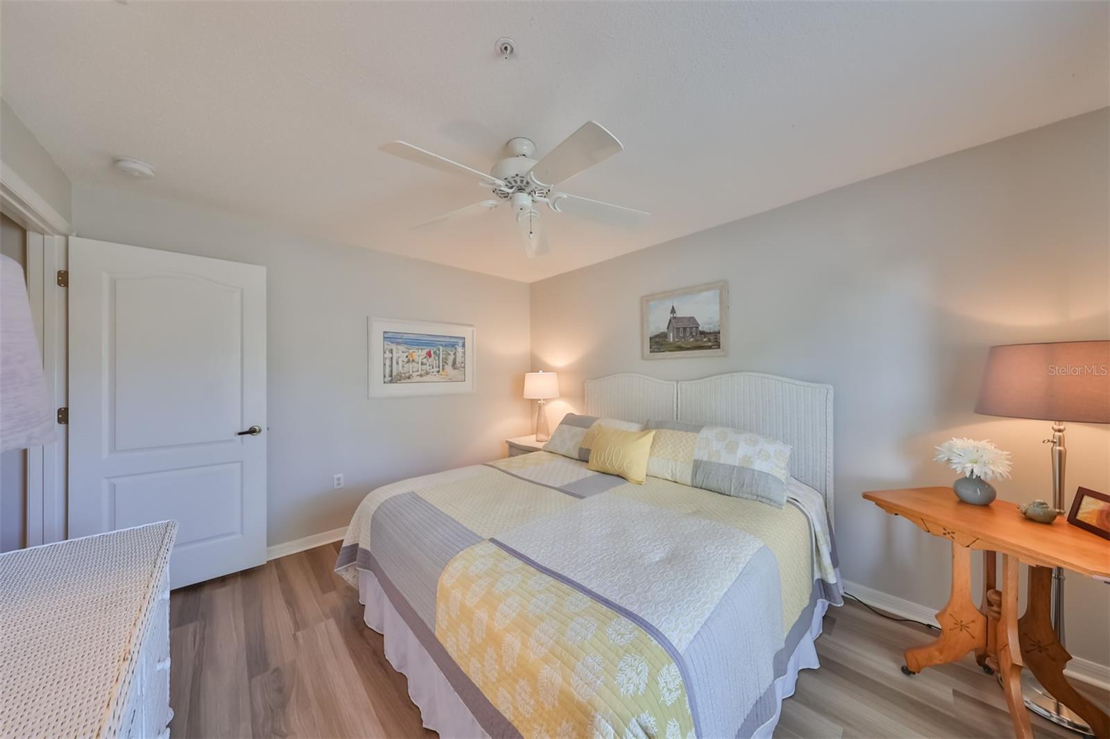 Welcome home to your wonderfully updated Abbey floor plan, Veranda Home! This home is move-in ready with an updated kitchen, beautiful luxury plank vinyl flooring, newer appliances, AC, and hot water heater. There's a large soaker tub and separate shower in the primary with two walk-in closets. Since you're an end unit the natural light you receive from the window in your den makes it the perfect place to work from home. The second bedroom and bathroom have ample room for your guest and are privately located at the front of the home. The amazing view of the 13th hole from one of your two screened balconies will mesmerize you as you watch for wildlife and golfers! A Home Warranty is being offered for peace of mind to the new buyer. Heritage Oaks is a highly sought-after gated community with five heated swimming pools, an 18-hole golf course, a clubhouse, two restaurants, a fitness center, and many scheduled activities. A designation as a Certified Audubon Neighborhood ensures the abundance of wildlife and beautifully maintained natural vegetation. You're going to love this home and its great location convenient to beaches, airports, shopping, and many tourist attractions!