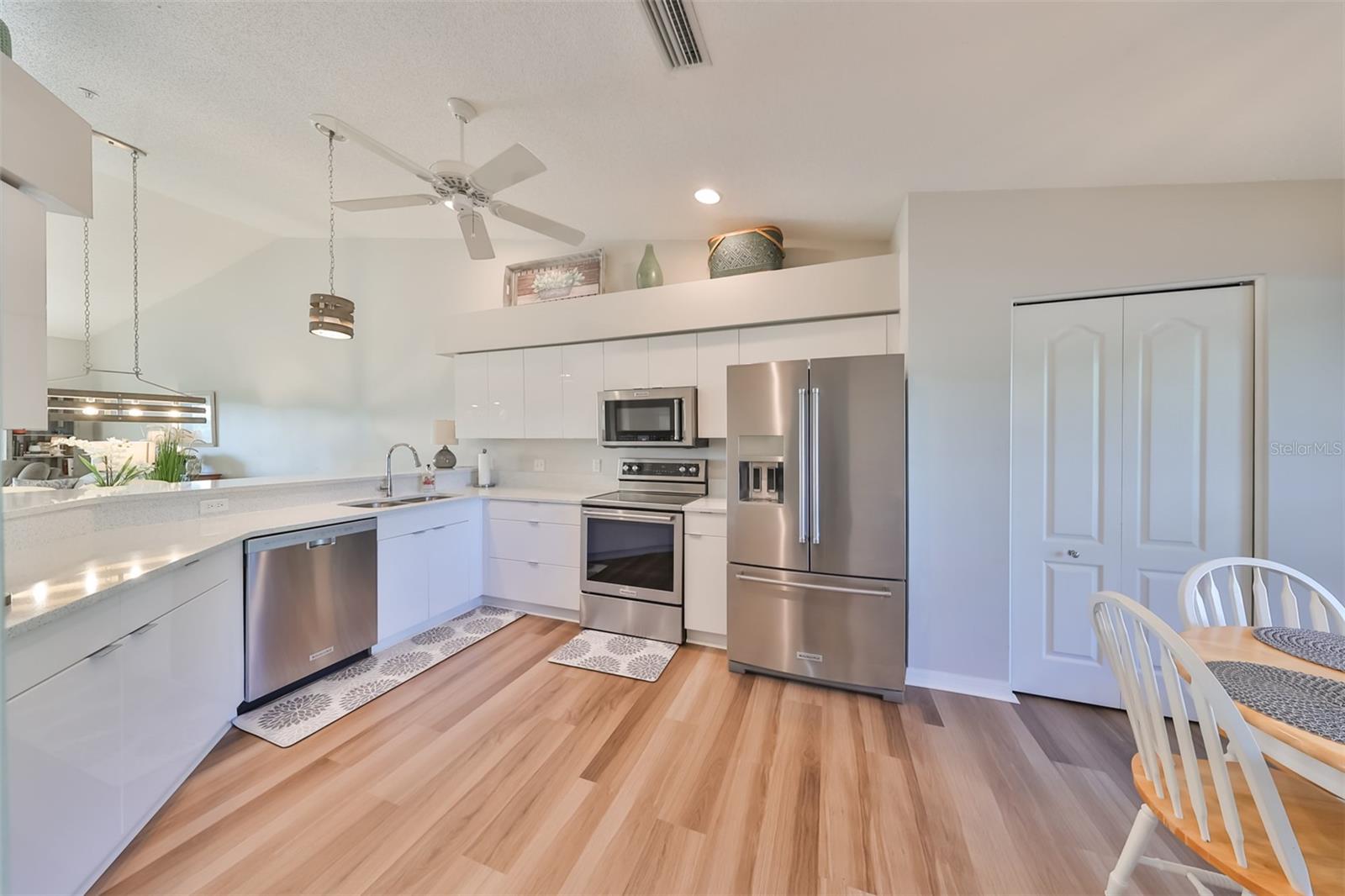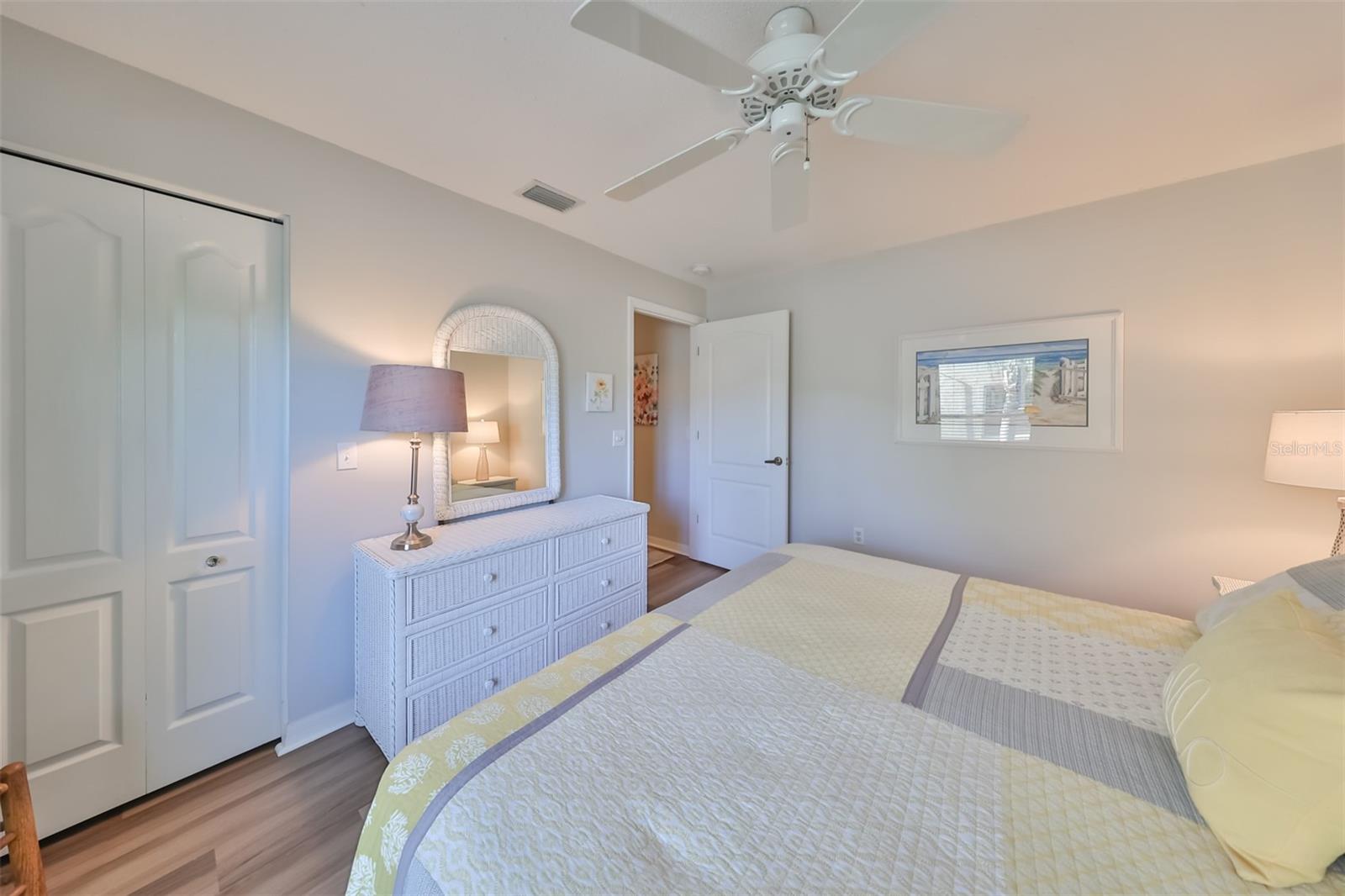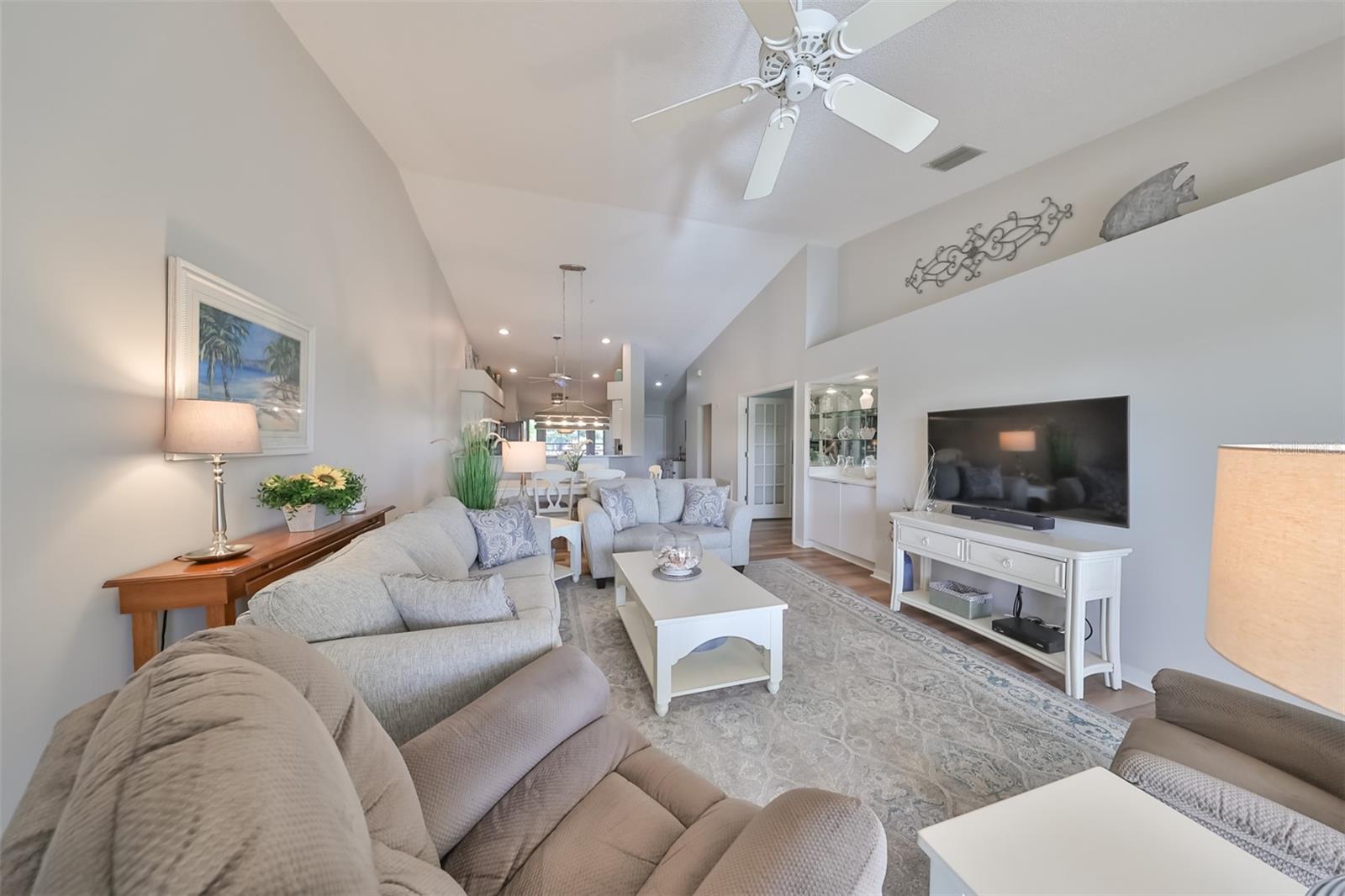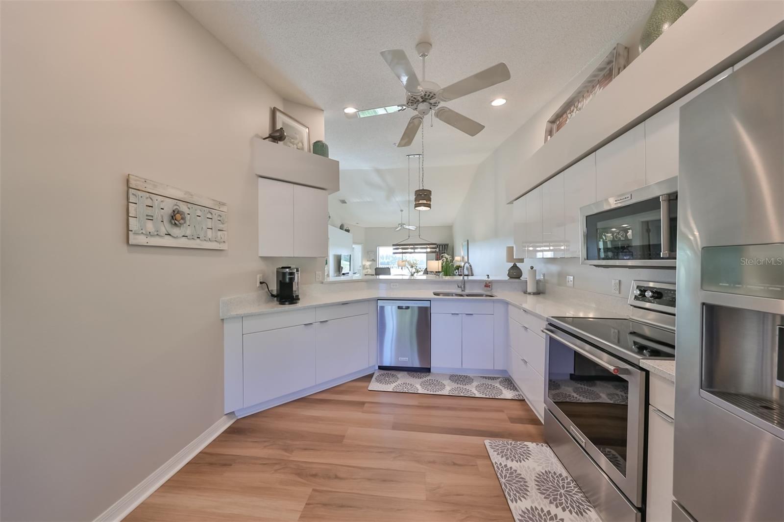 Welcome home to your wonderfully updated Abbey floor plan, Veranda Home! This home is move-in ready with an updated kitchen, beautiful luxury plank vinyl flooring, newer appliances, AC, and hot water heater. There's a large soaker tub and separate shower in the primary with two walk-in closets. Since you're an end unit the natural light you receive from the window in your den makes it the perfect place to work from home. The second bedroom and bathroom have ample room for your guest and are privately located at the front of the home. The amazing view of the 13th hole from one of your two screened balconies will mesmerize you as you watch for wildlife and golfers! A Home Warranty is being offered for peace of mind to the new buyer. Heritage Oaks is a highly sought-after gated community with five heated swimming pools, an 18-hole golf course, a clubhouse, two restaurants, a fitness center, and many scheduled activities. A designation as a Certified Audubon Neighborhood ensures the abundance of wildlife and beautifully maintained natural vegetation. You're going to love this home and its great location convenient to beaches, airports, shopping, and many tourist attractions!