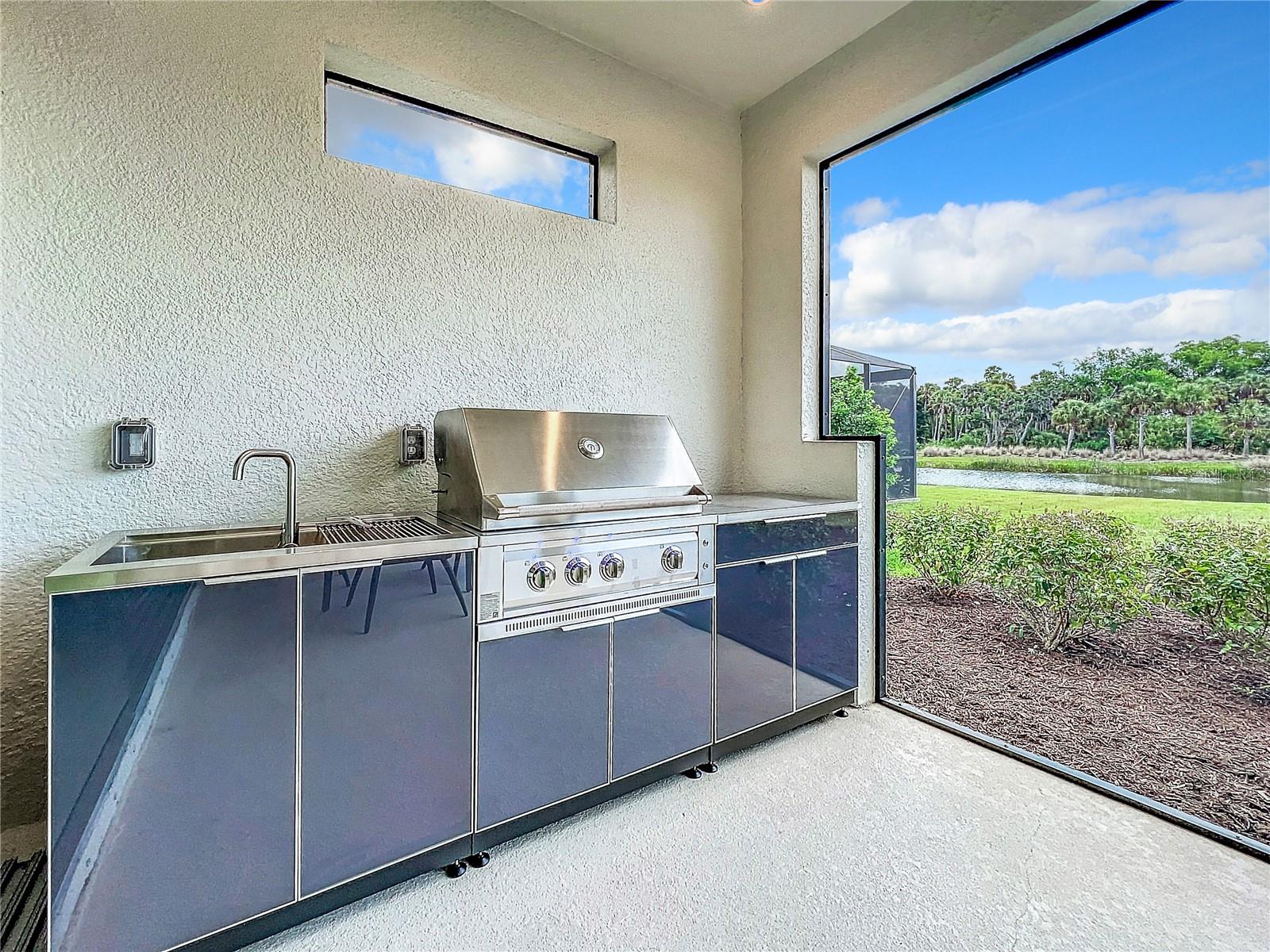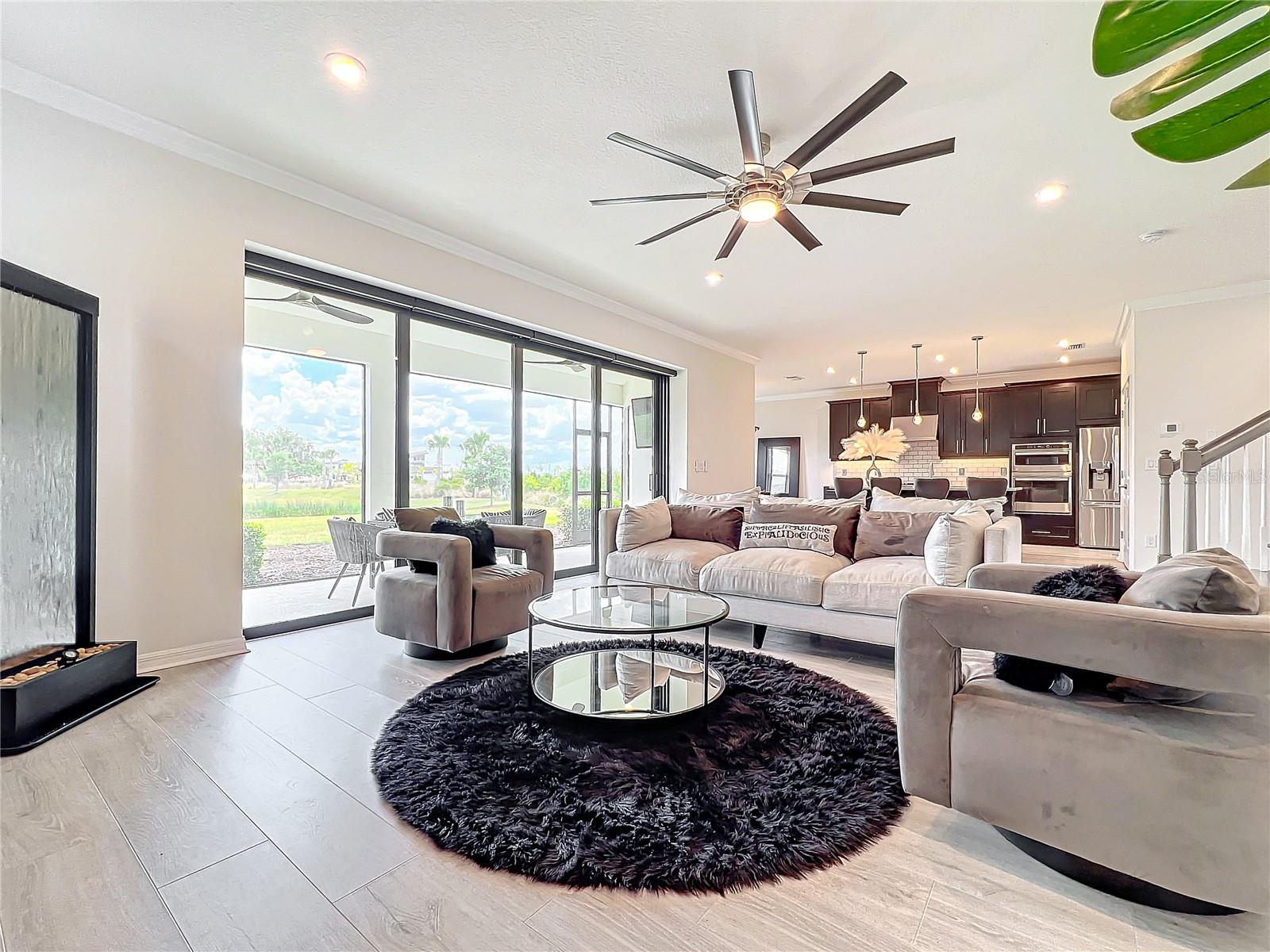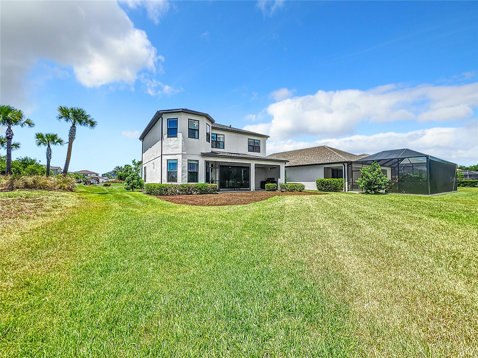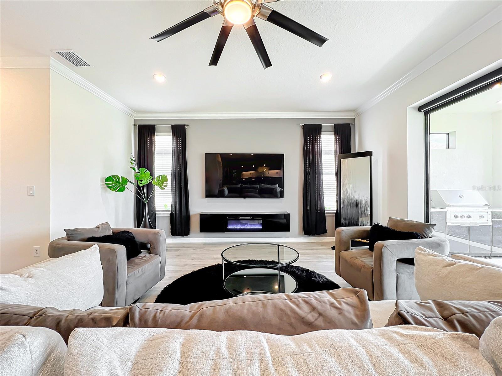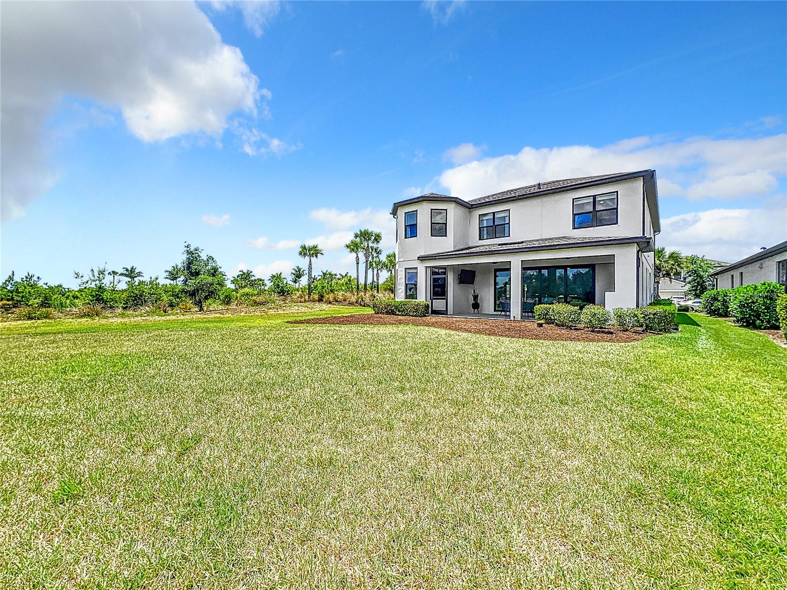 Luxurious 4-bedroom, 3.5-bathroom 2-story residence boasting a screened-in balcony attached to the lavish master suite on the upper level. The ground floor encompasses an elegant family room with a stunning tray ceiling, a formal dining room, an office/den, a formal living room with a cozy fireplace, and expansive sliding pocket doors that open up to a vast screened-in patio equipped with a built-in grill and sink, offering picturesque views of the natural wetlands in the backyard. The modern kitchen features a central island, breakfast bar, top-of-the-line stainless steel appliances, oversized dark wood cabinets with exquisite stone countertops and a tiled backsplash, as well as a separate dining area. Upstairs, an additional 19x16 family room with a tray ceiling, three spacious bedrooms, a laundry room, and a grand master suite complete with a walk-in closet, a luxurious soaking tub, an oversized separate shower, a dual sink vanity, and ample storage options await. Experience the epitome of luxury living. Located in Cassia at Skye Ranch; a premier community that offers opportunities to explore, experience, and enjoy life. The natural beauty of the land has been preserved, with grand old oaks, lush palms, forested wetlands, pristine lakes, and native wildlife. Miles of planned trails connect residents to nature, parks, and exceptional amenities within the Skye Ranch community. Turner Park at Skye Ranch features two tennis courts for open play, along with instructional tennis clinics offered by Court Sports Professional Brad Chase. Additionally, Skye Ranch offers options for members to enjoy Pickleball on multiple courts throughout the community, as well as Bocce Ball, a casual sport of Italian origin, for residents to enjoy. A brand new K-8 School was recently built within the community and there's also a brand new clubhouse and recreation center with two pools, hot tub and so much more just around the block form the house! Don't wait another minute... Call to schedule your showing now and make 9100 Luna Ln yours!!