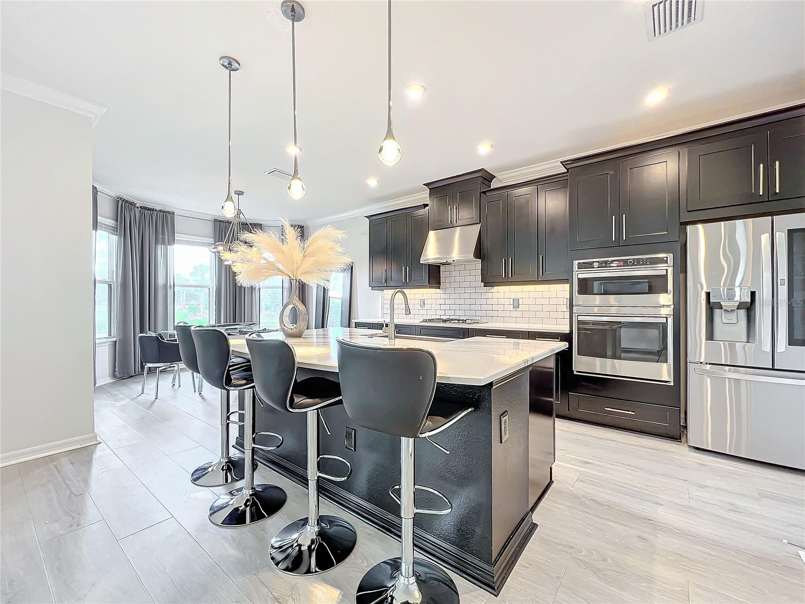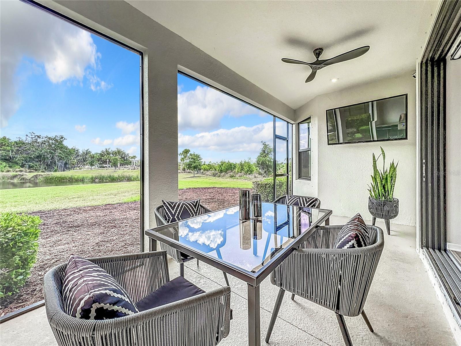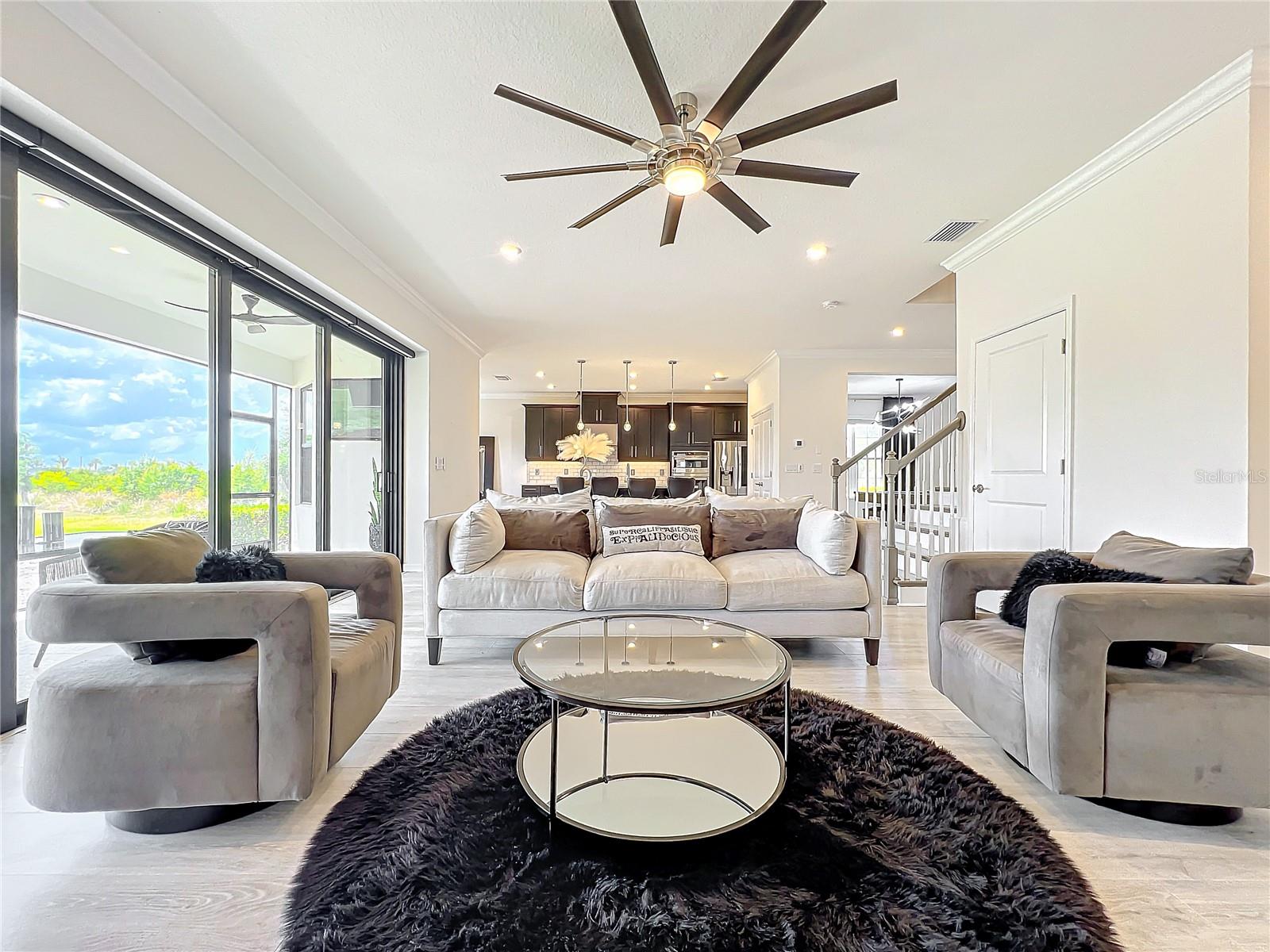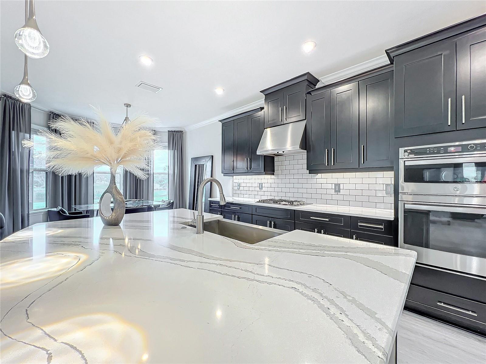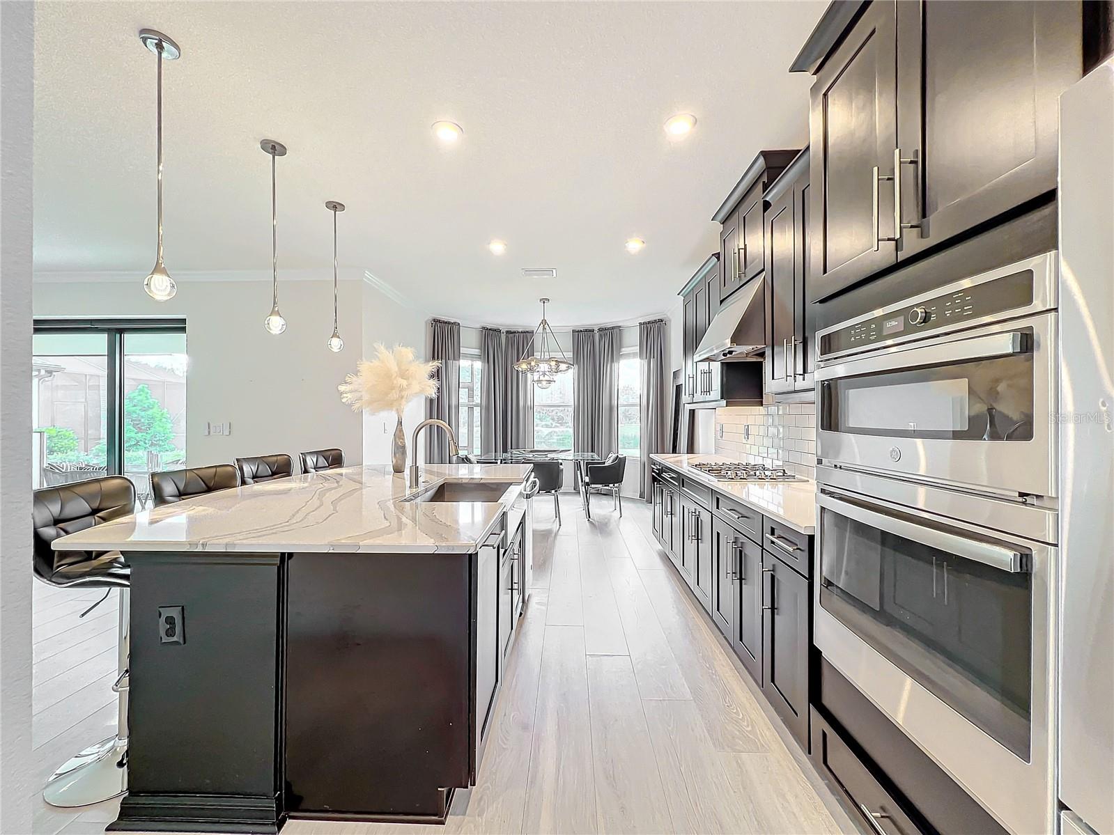 Luxurious 4-bedroom, 3.5-bathroom 2-story residence boasting a screened-in balcony attached to the lavish master suite on the upper level. The ground floor encompasses an elegant family room with a stunning tray ceiling, a formal dining room, an office/den, a formal living room with a cozy fireplace, and expansive sliding pocket doors that open up to a vast screened-in patio equipped with a built-in grill and sink, offering picturesque views of the natural wetlands in the backyard. The modern kitchen features a central island, breakfast bar, top-of-the-line stainless steel appliances, oversized dark wood cabinets with exquisite stone countertops and a tiled backsplash, as well as a separate dining area. Upstairs, an additional 19x16 family room with a tray ceiling, three spacious bedrooms, a laundry room, and a grand master suite complete with a walk-in closet, a luxurious soaking tub, an oversized separate shower, a dual sink vanity, and ample storage options await. Experience the epitome of luxury living. Located in Cassia at Skye Ranch; a premier community that offers opportunities to explore, experience, and enjoy life. The natural beauty of the land has been preserved, with grand old oaks, lush palms, forested wetlands, pristine lakes, and native wildlife. Miles of planned trails connect residents to nature, parks, and exceptional amenities within the Skye Ranch community. Turner Park at Skye Ranch features two tennis courts for open play, along with instructional tennis clinics offered by Court Sports Professional Brad Chase. Additionally, Skye Ranch offers options for members to enjoy Pickleball on multiple courts throughout the community, as well as Bocce Ball, a casual sport of Italian origin, for residents to enjoy. A brand new K-8 School was recently built within the community and there's also a brand new clubhouse and recreation center with two pools, hot tub and so much more just around the block form the house! Don't wait another minute... Call to schedule your showing now and make 9100 Luna Ln yours!!