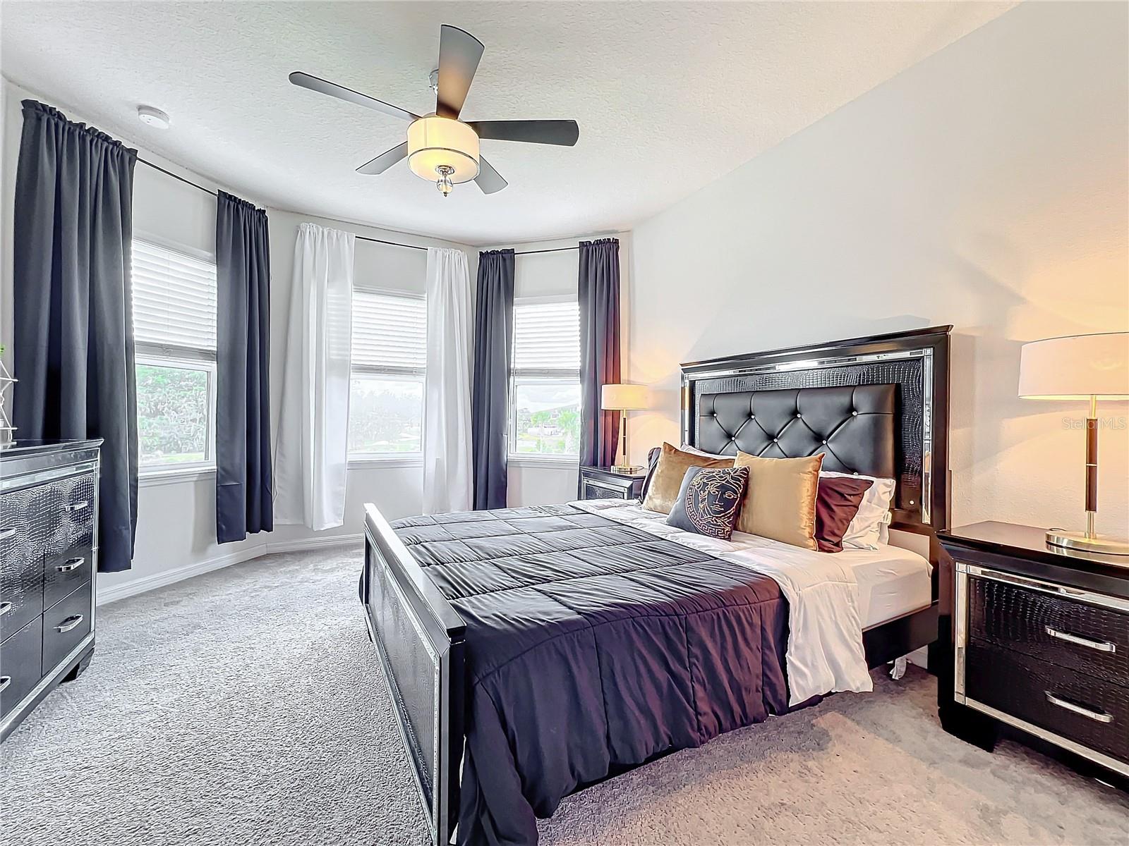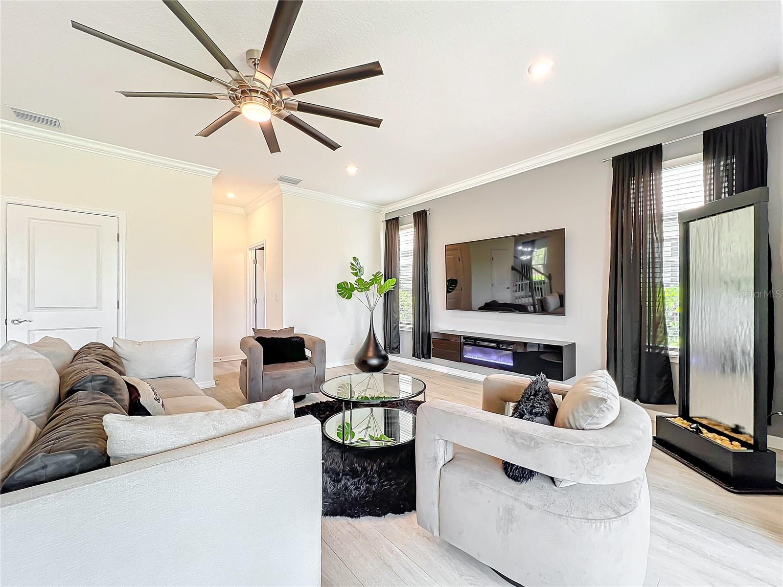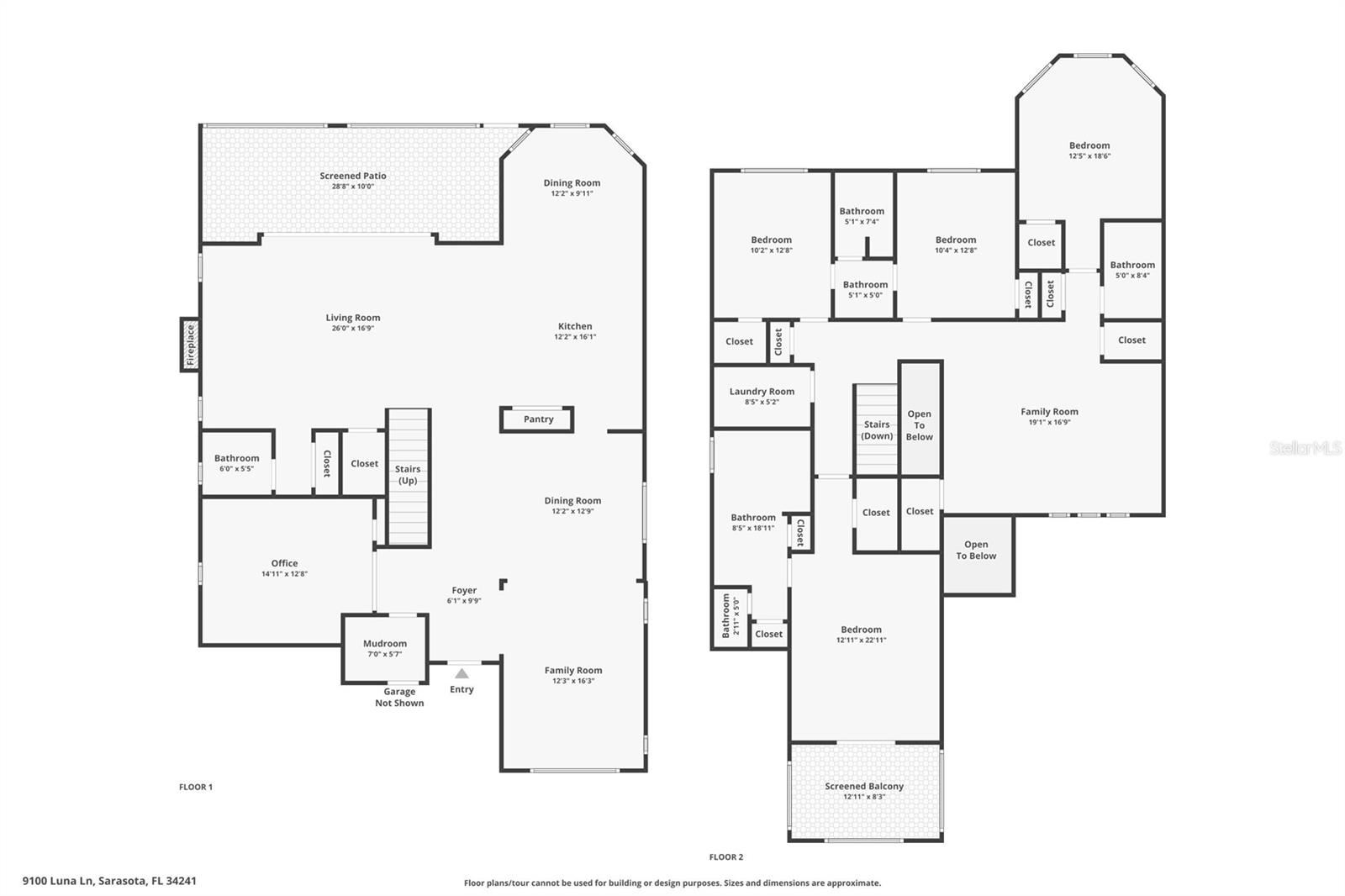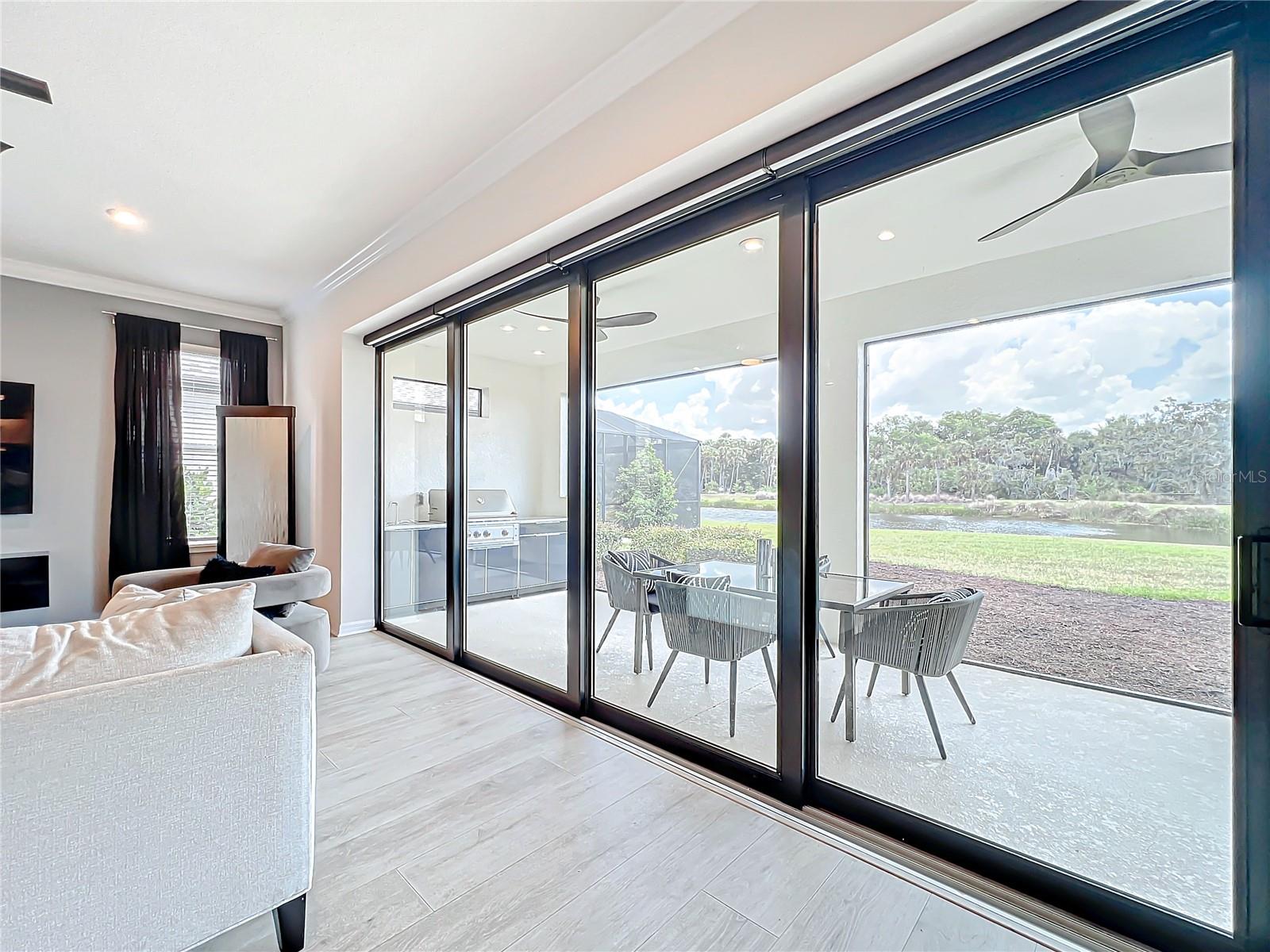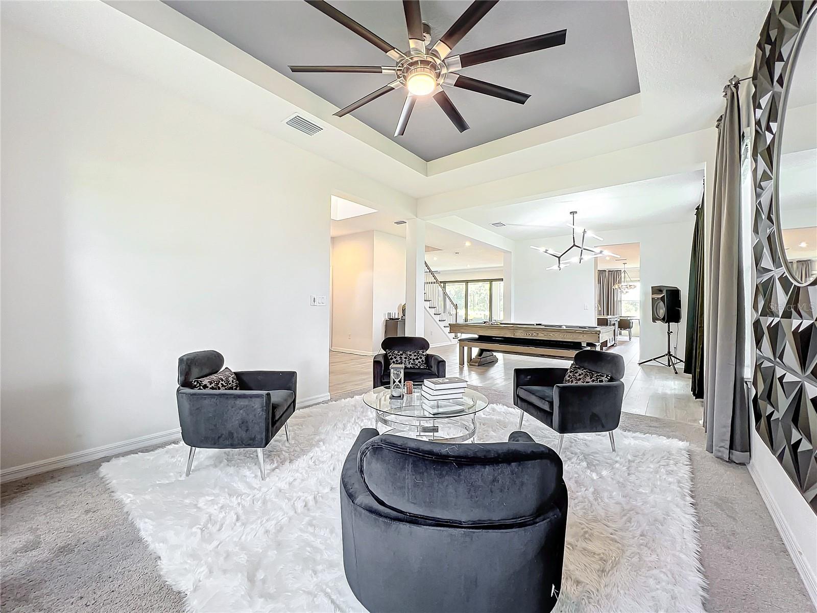 Luxurious 4-bedroom, 3.5-bathroom 2-story residence boasting a screened-in balcony attached to the lavish master suite on the upper level. The ground floor encompasses an elegant family room with a stunning tray ceiling, a formal dining room, an office/den, a formal living room with a cozy fireplace, and expansive sliding pocket doors that open up to a vast screened-in patio equipped with a built-in grill and sink, offering picturesque views of the natural wetlands in the backyard. The modern kitchen features a central island, breakfast bar, top-of-the-line stainless steel appliances, oversized dark wood cabinets with exquisite stone countertops and a tiled backsplash, as well as a separate dining area. Upstairs, an additional 19x16 family room with a tray ceiling, three spacious bedrooms, a laundry room, and a grand master suite complete with a walk-in closet, a luxurious soaking tub, an oversized separate shower, a dual sink vanity, and ample storage options await. Experience the epitome of luxury living. Located in Cassia at Skye Ranch; a premier community that offers opportunities to explore, experience, and enjoy life. The natural beauty of the land has been preserved, with grand old oaks, lush palms, forested wetlands, pristine lakes, and native wildlife. Miles of planned trails connect residents to nature, parks, and exceptional amenities within the Skye Ranch community. Turner Park at Skye Ranch features two tennis courts for open play, along with instructional tennis clinics offered by Court Sports Professional Brad Chase. Additionally, Skye Ranch offers options for members to enjoy Pickleball on multiple courts throughout the community, as well as Bocce Ball, a casual sport of Italian origin, for residents to enjoy. A brand new K-8 School was recently built within the community and there's also a brand new clubhouse and recreation center with two pools, hot tub and so much more just around the block form the house! Don't wait another minute... Call to schedule your showing now and make 9100 Luna Ln yours!!