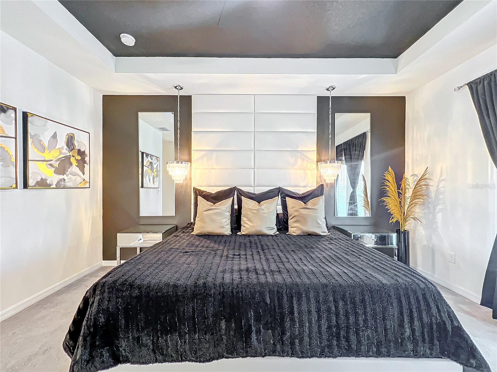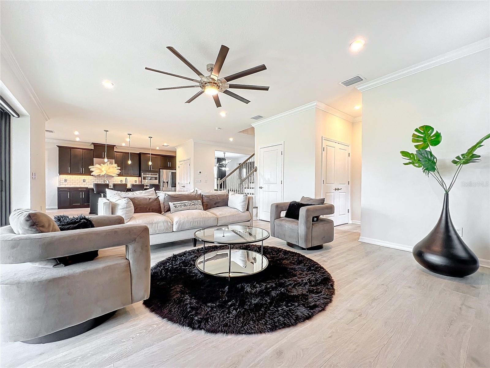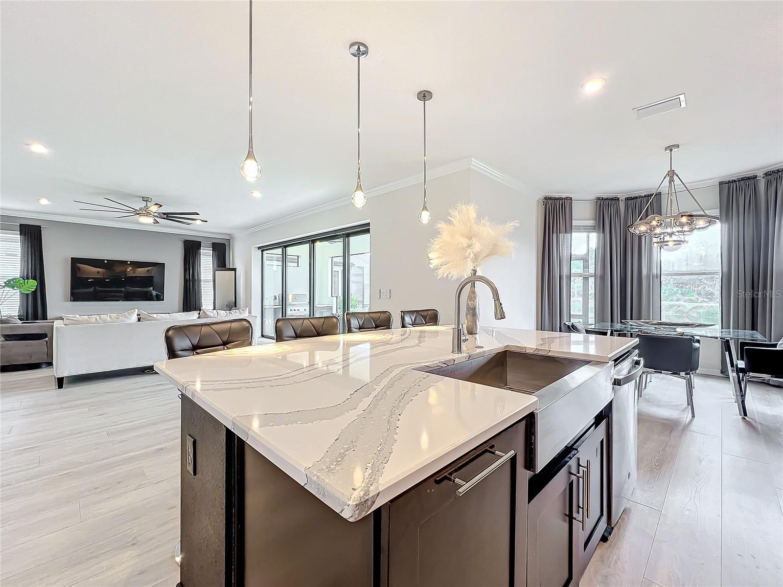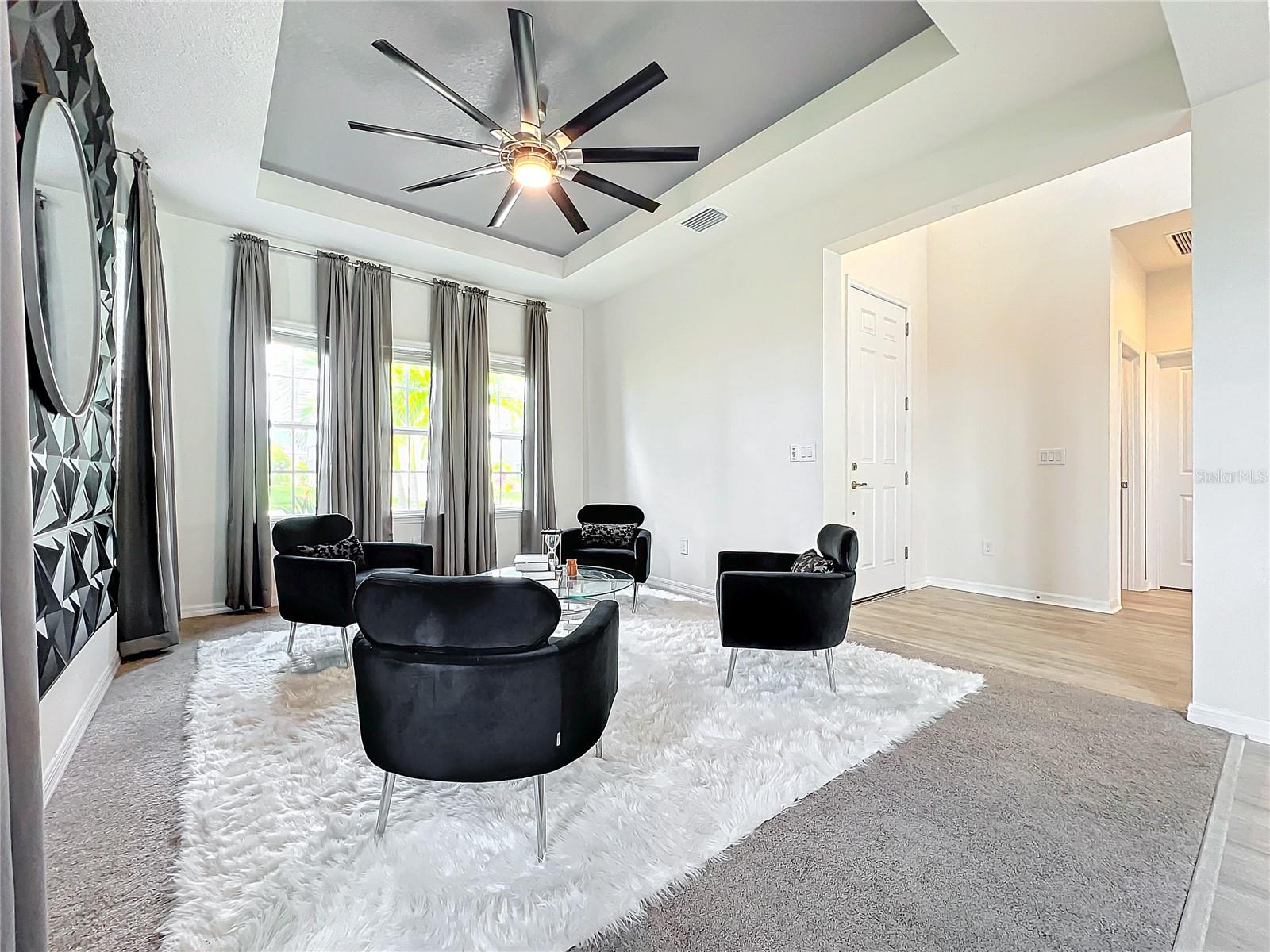 Luxurious 4-bedroom, 3.5-bathroom 2-story residence boasting a screened-in balcony attached to the lavish master suite on the upper level. The ground floor encompasses an elegant family room with a stunning tray ceiling, a formal dining room, an office/den, a formal living room with a cozy fireplace, and expansive sliding pocket doors that open up to a vast screened-in patio equipped with a built-in grill and sink, offering picturesque views of the natural wetlands in the backyard. The modern kitchen features a central island, breakfast bar, top-of-the-line stainless steel appliances, oversized dark wood cabinets with exquisite stone countertops and a tiled backsplash, as well as a separate dining area. Upstairs, an additional 19x16 family room with a tray ceiling, three spacious bedrooms, a laundry room, and a grand master suite complete with a walk-in closet, a luxurious soaking tub, an oversized separate shower, a dual sink vanity, and ample storage options await. Experience the epitome of luxury living. Located in Cassia at Skye Ranch; a premier community that offers opportunities to explore, experience, and enjoy life. The natural beauty of the land has been preserved, with grand old oaks, lush palms, forested wetlands, pristine lakes, and native wildlife. Miles of planned trails connect residents to nature, parks, and exceptional amenities within the Skye Ranch community. Turner Park at Skye Ranch features two tennis courts for open play, along with instructional tennis clinics offered by Court Sports Professional Brad Chase. Additionally, Skye Ranch offers options for members to enjoy Pickleball on multiple courts throughout the community, as well as Bocce Ball, a casual sport of Italian origin, for residents to enjoy. A brand new K-8 School was recently built within the community and there's also a brand new clubhouse and recreation center with two pools, hot tub and so much more just around the block form the house! Don't wait another minute... Call to schedule your showing now and make 9100 Luna Ln yours!!