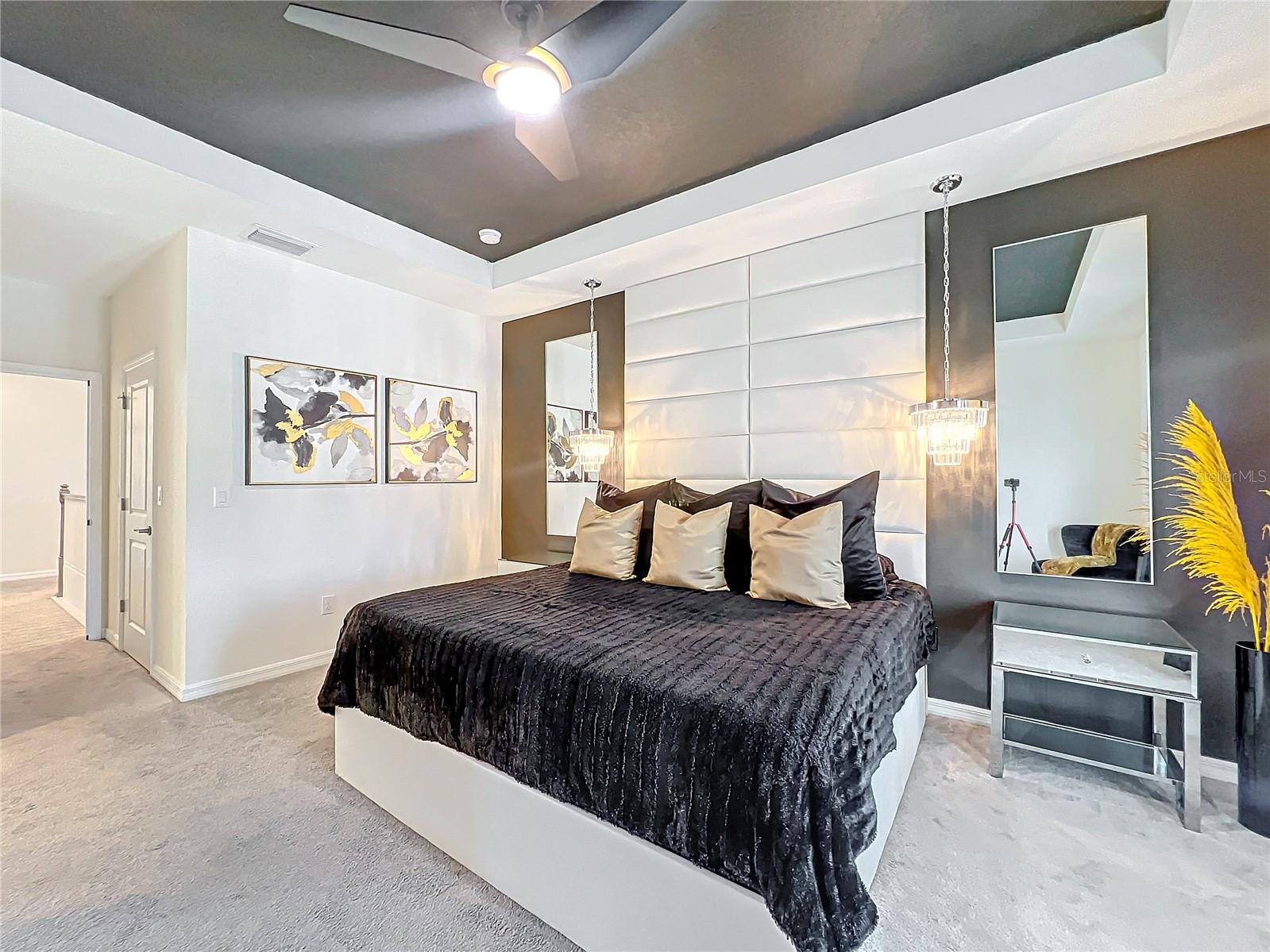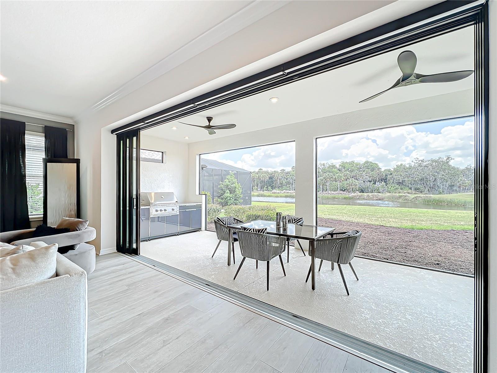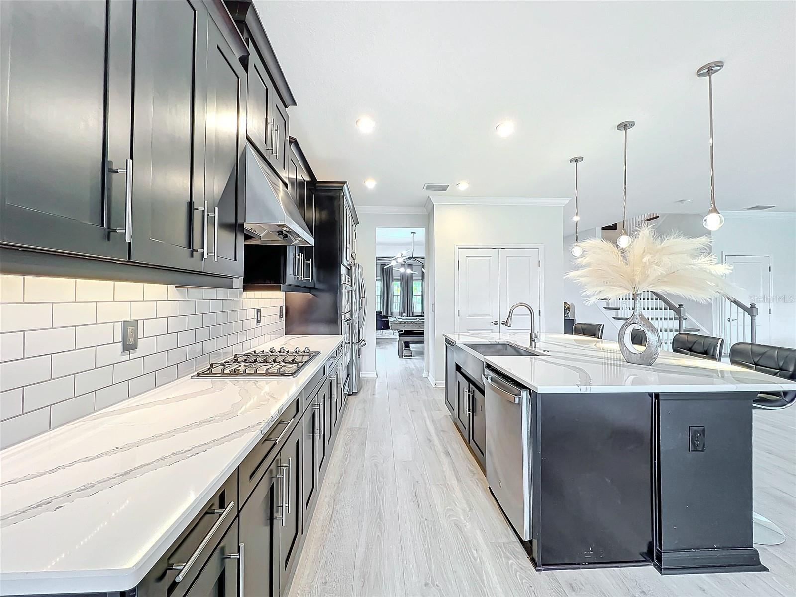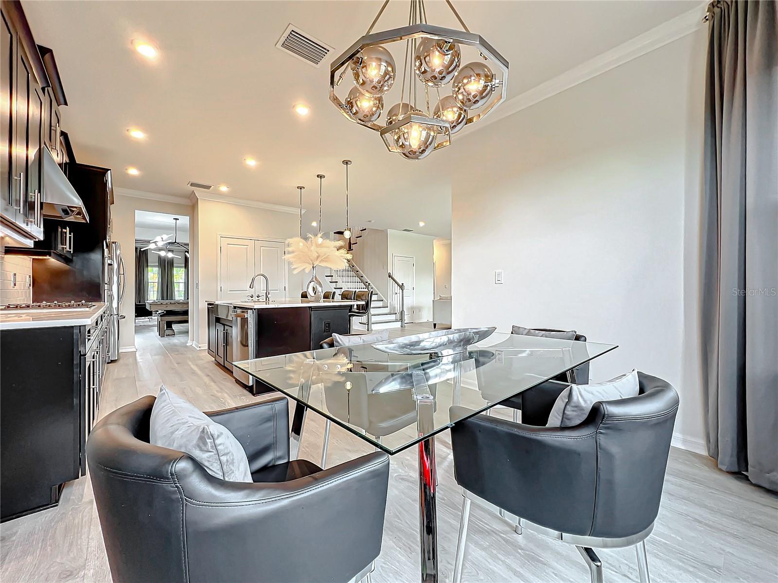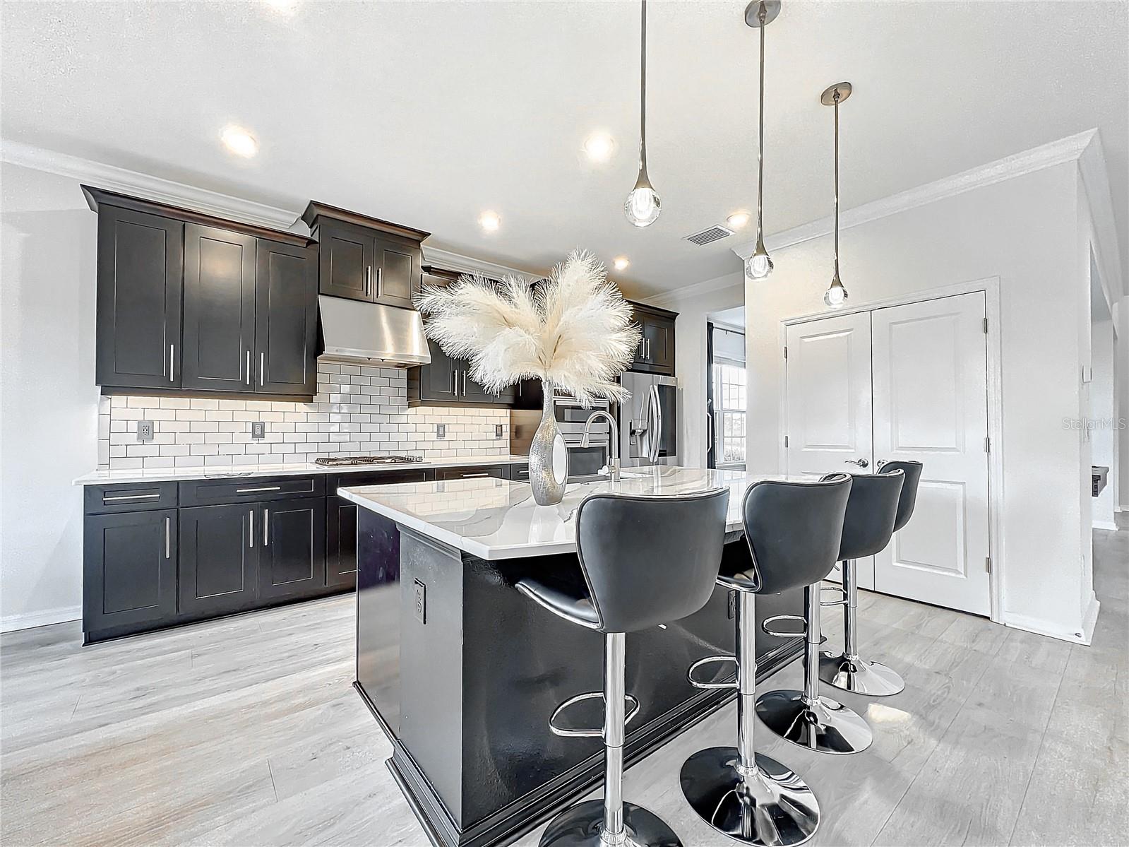 Luxurious 4-bedroom, 3.5-bathroom 2-story residence boasting a screened-in balcony attached to the lavish master suite on the upper level. The ground floor encompasses an elegant family room with a stunning tray ceiling, a formal dining room, an office/den, a formal living room with a cozy fireplace, and expansive sliding pocket doors that open up to a vast screened-in patio equipped with a built-in grill and sink, offering picturesque views of the natural wetlands in the backyard. The modern kitchen features a central island, breakfast bar, top-of-the-line stainless steel appliances, oversized dark wood cabinets with exquisite stone countertops and a tiled backsplash, as well as a separate dining area. Upstairs, an additional 19x16 family room with a tray ceiling, three spacious bedrooms, a laundry room, and a grand master suite complete with a walk-in closet, a luxurious soaking tub, an oversized separate shower, a dual sink vanity, and ample storage options await. Experience the epitome of luxury living. Located in Cassia at Skye Ranch; a premier community that offers opportunities to explore, experience, and enjoy life. The natural beauty of the land has been preserved, with grand old oaks, lush palms, forested wetlands, pristine lakes, and native wildlife. Miles of planned trails connect residents to nature, parks, and exceptional amenities within the Skye Ranch community. Turner Park at Skye Ranch features two tennis courts for open play, along with instructional tennis clinics offered by Court Sports Professional Brad Chase. Additionally, Skye Ranch offers options for members to enjoy Pickleball on multiple courts throughout the community, as well as Bocce Ball, a casual sport of Italian origin, for residents to enjoy. A brand new K-8 School was recently built within the community and there's also a brand new clubhouse and recreation center with two pools, hot tub and so much more just around the block form the house! Don't wait another minute... Call to schedule your showing now and make 9100 Luna Ln yours!!