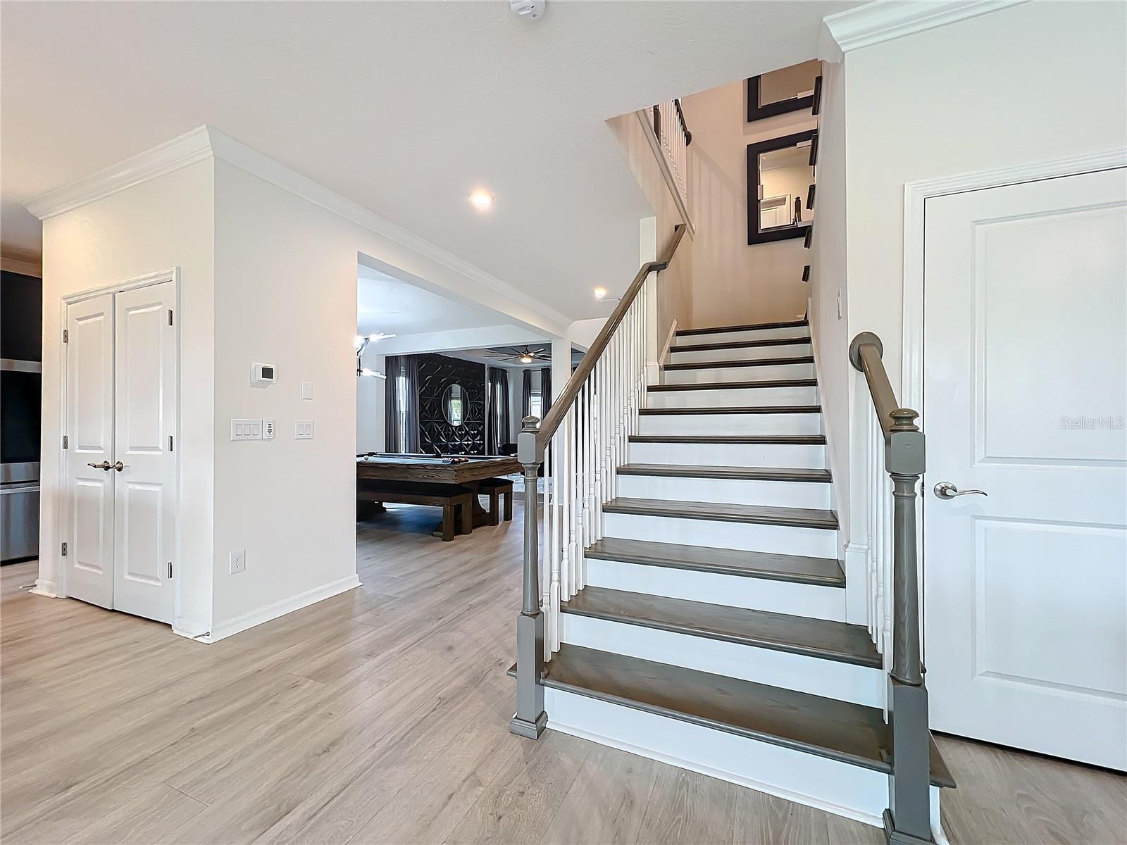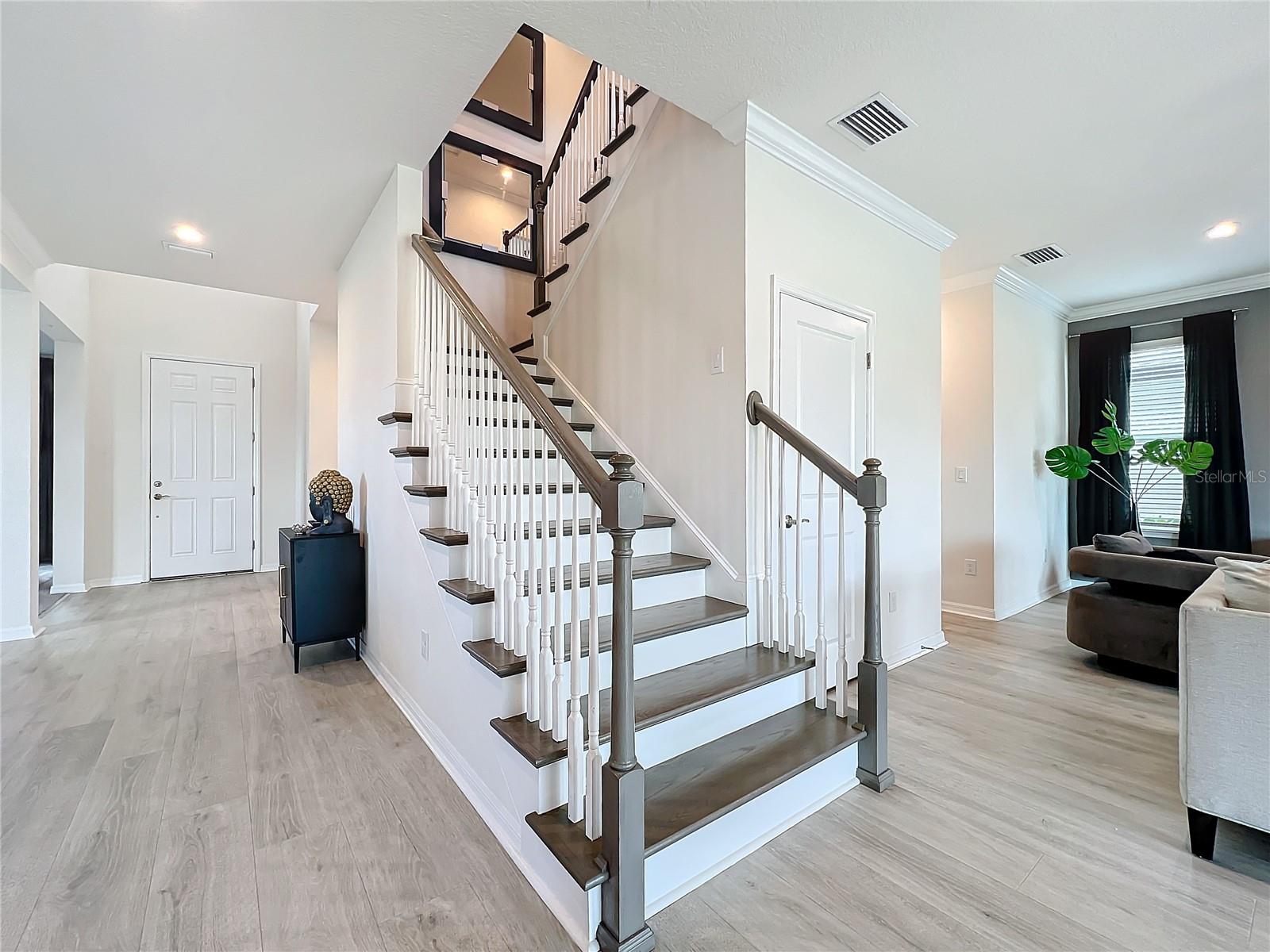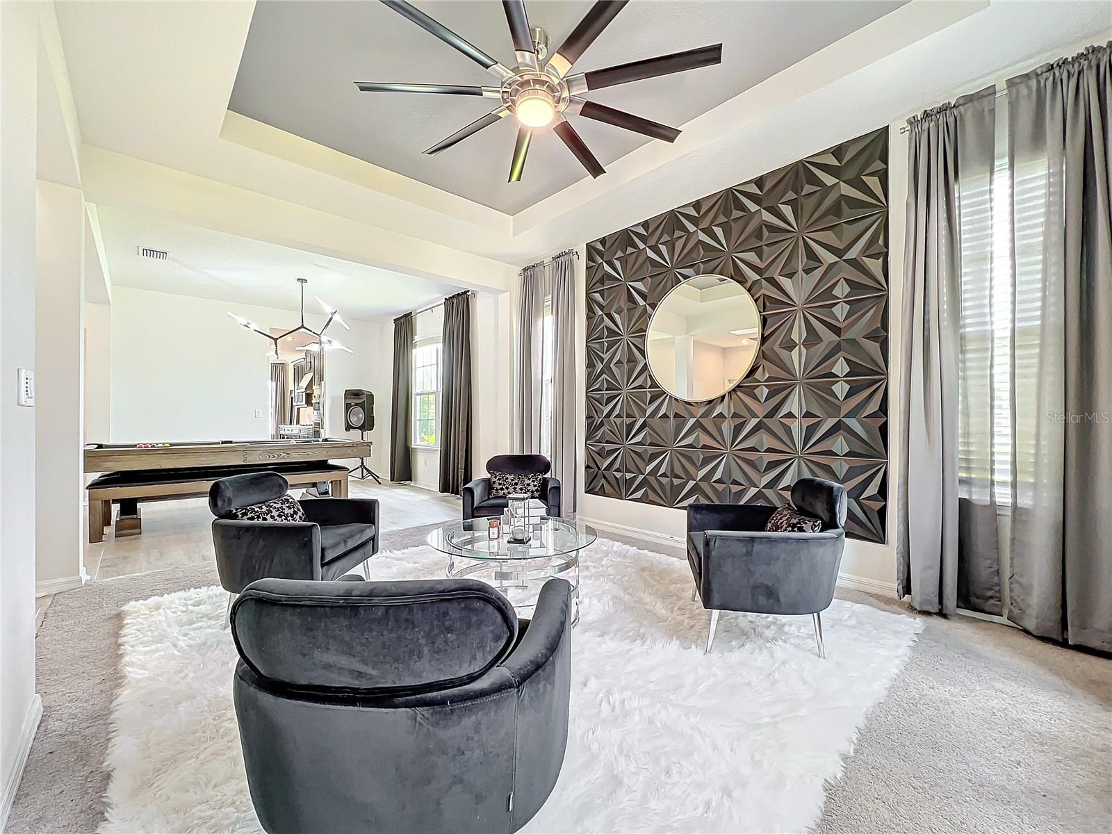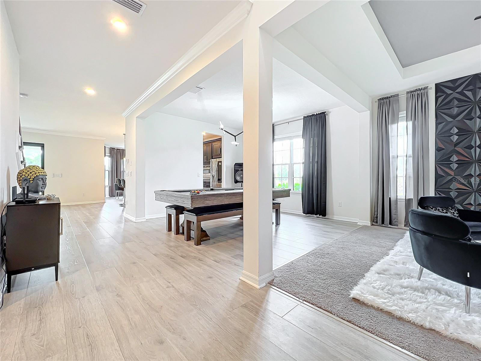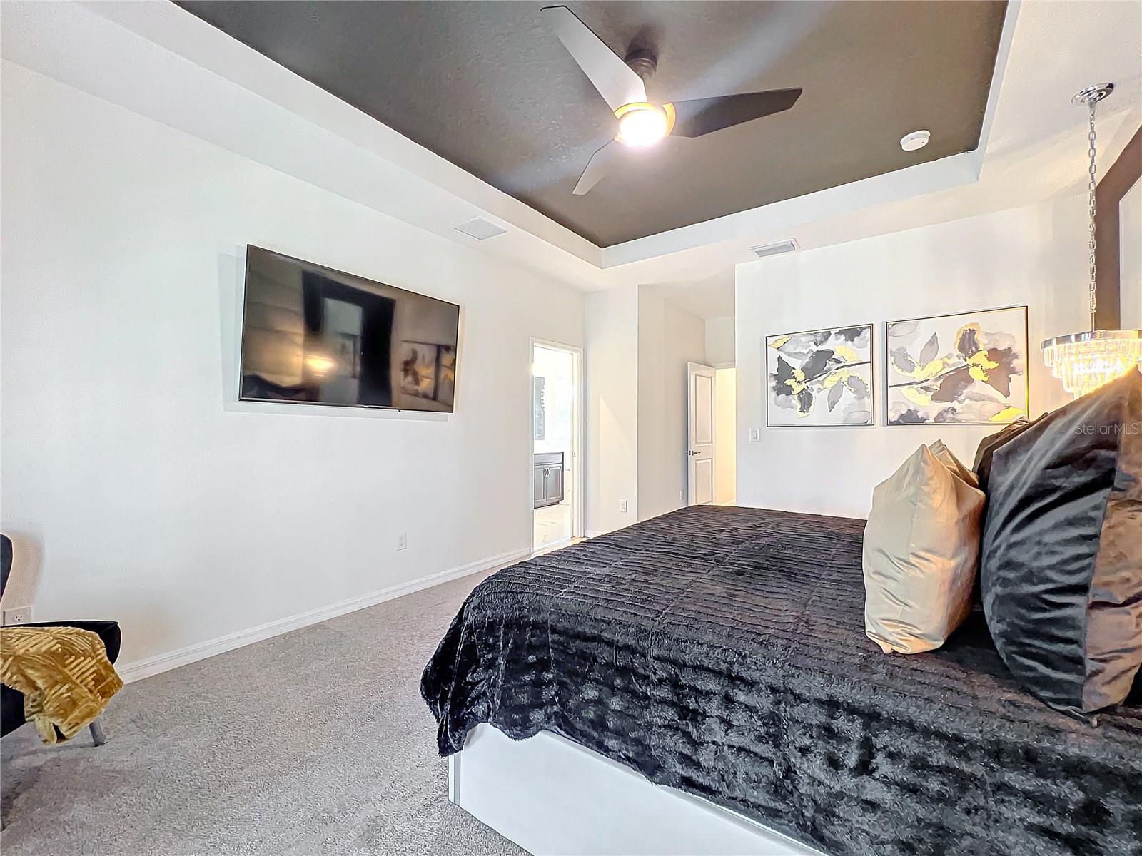 Luxurious 4-bedroom, 3.5-bathroom 2-story residence boasting a screened-in balcony attached to the lavish master suite on the upper level. The ground floor encompasses an elegant family room with a stunning tray ceiling, a formal dining room, an office/den, a formal living room with a cozy fireplace, and expansive sliding pocket doors that open up to a vast screened-in patio equipped with a built-in grill and sink, offering picturesque views of the natural wetlands in the backyard. The modern kitchen features a central island, breakfast bar, top-of-the-line stainless steel appliances, oversized dark wood cabinets with exquisite stone countertops and a tiled backsplash, as well as a separate dining area. Upstairs, an additional 19x16 family room with a tray ceiling, three spacious bedrooms, a laundry room, and a grand master suite complete with a walk-in closet, a luxurious soaking tub, an oversized separate shower, a dual sink vanity, and ample storage options await. Experience the epitome of luxury living. Located in Cassia at Skye Ranch; a premier community that offers opportunities to explore, experience, and enjoy life. The natural beauty of the land has been preserved, with grand old oaks, lush palms, forested wetlands, pristine lakes, and native wildlife. Miles of planned trails connect residents to nature, parks, and exceptional amenities within the Skye Ranch community. Turner Park at Skye Ranch features two tennis courts for open play, along with instructional tennis clinics offered by Court Sports Professional Brad Chase. Additionally, Skye Ranch offers options for members to enjoy Pickleball on multiple courts throughout the community, as well as Bocce Ball, a casual sport of Italian origin, for residents to enjoy. A brand new K-8 School was recently built within the community and there's also a brand new clubhouse and recreation center with two pools, hot tub and so much more just around the block form the house! Don't wait another minute... Call to schedule your showing now and make 9100 Luna Ln yours!!