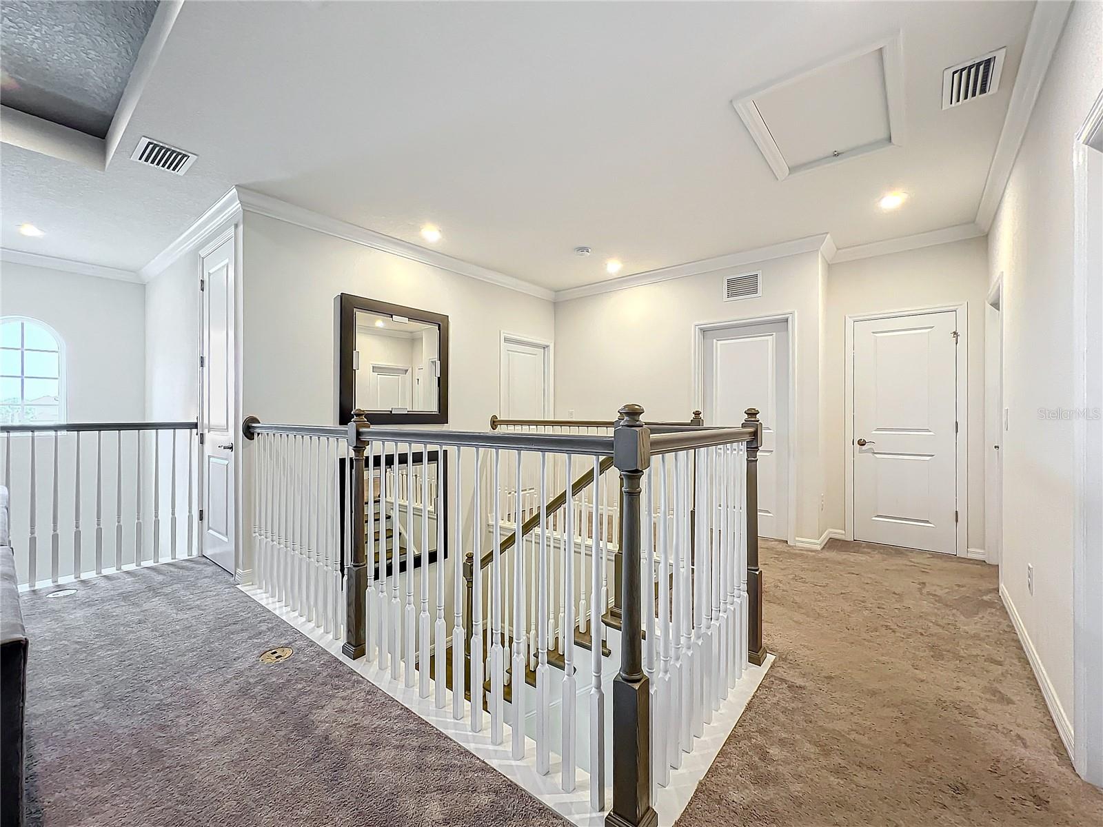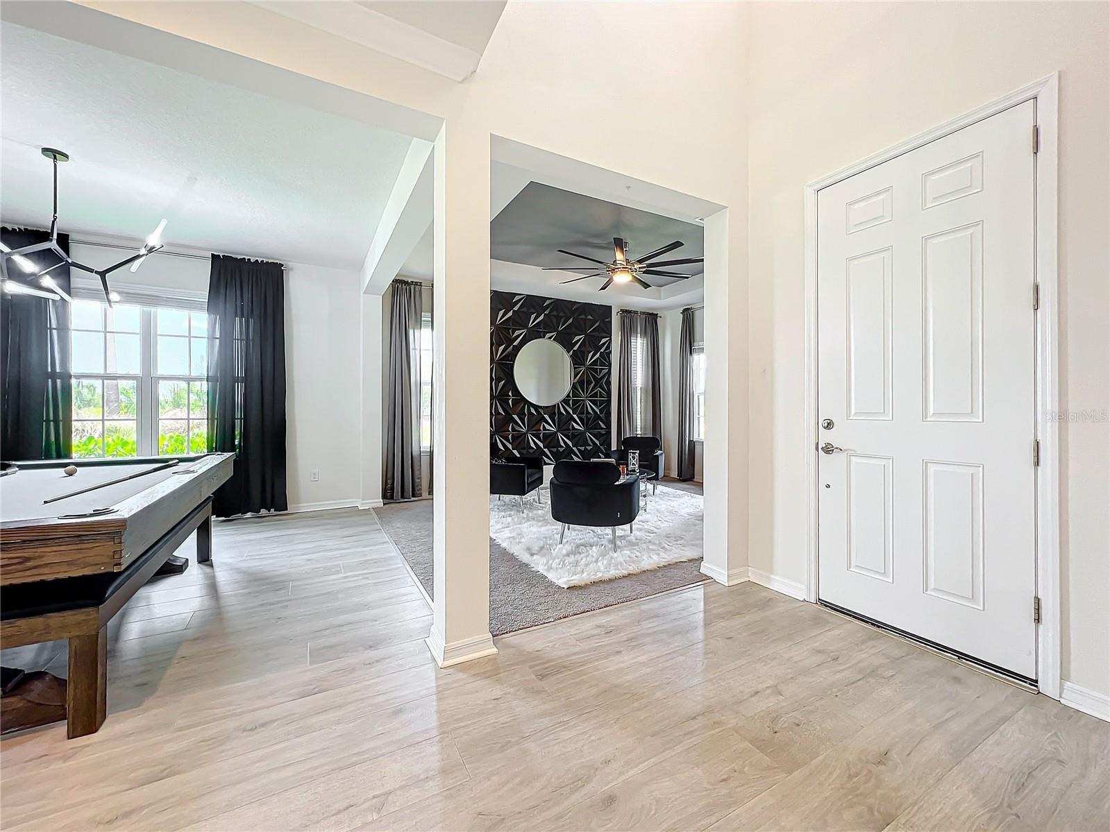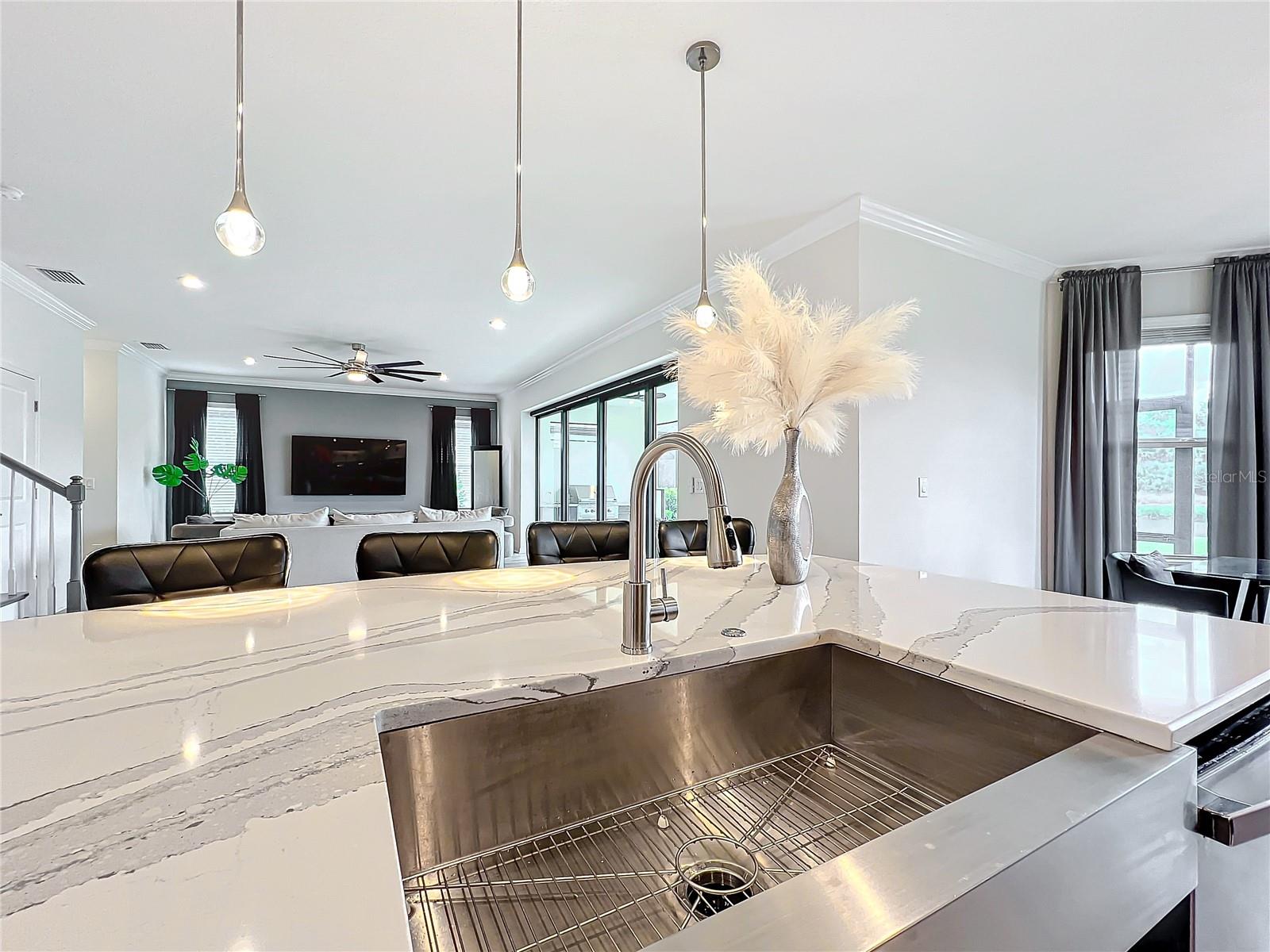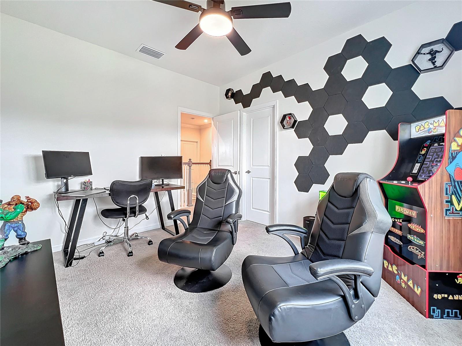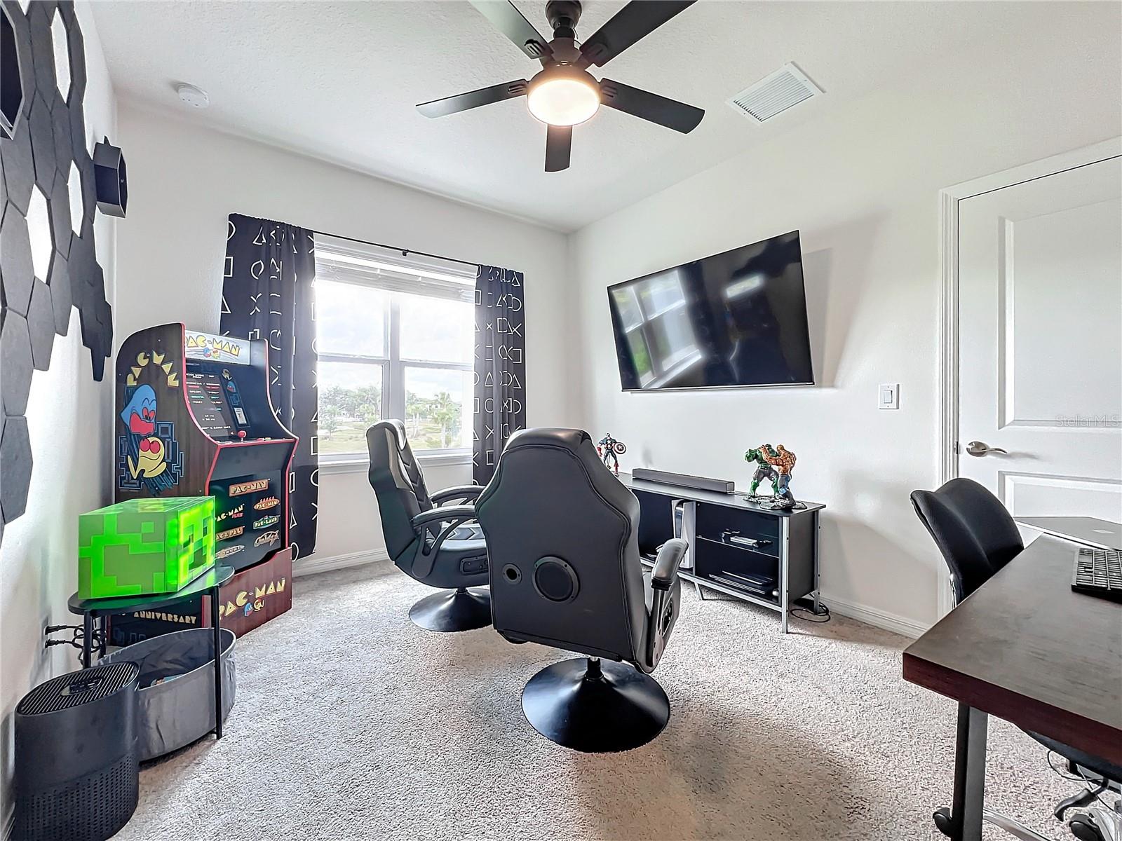 Luxurious 4-bedroom, 3.5-bathroom 2-story residence boasting a screened-in balcony attached to the lavish master suite on the upper level. The ground floor encompasses an elegant family room with a stunning tray ceiling, a formal dining room, an office/den, a formal living room with a cozy fireplace, and expansive sliding pocket doors that open up to a vast screened-in patio equipped with a built-in grill and sink, offering picturesque views of the natural wetlands in the backyard. The modern kitchen features a central island, breakfast bar, top-of-the-line stainless steel appliances, oversized dark wood cabinets with exquisite stone countertops and a tiled backsplash, as well as a separate dining area. Upstairs, an additional 19x16 family room with a tray ceiling, three spacious bedrooms, a laundry room, and a grand master suite complete with a walk-in closet, a luxurious soaking tub, an oversized separate shower, a dual sink vanity, and ample storage options await. Experience the epitome of luxury living. Located in Cassia at Skye Ranch; a premier community that offers opportunities to explore, experience, and enjoy life. The natural beauty of the land has been preserved, with grand old oaks, lush palms, forested wetlands, pristine lakes, and native wildlife. Miles of planned trails connect residents to nature, parks, and exceptional amenities within the Skye Ranch community. Turner Park at Skye Ranch features two tennis courts for open play, along with instructional tennis clinics offered by Court Sports Professional Brad Chase. Additionally, Skye Ranch offers options for members to enjoy Pickleball on multiple courts throughout the community, as well as Bocce Ball, a casual sport of Italian origin, for residents to enjoy. A brand new K-8 School was recently built within the community and there's also a brand new clubhouse and recreation center with two pools, hot tub and so much more just around the block form the house! Don't wait another minute... Call to schedule your showing now and make 9100 Luna Ln yours!!