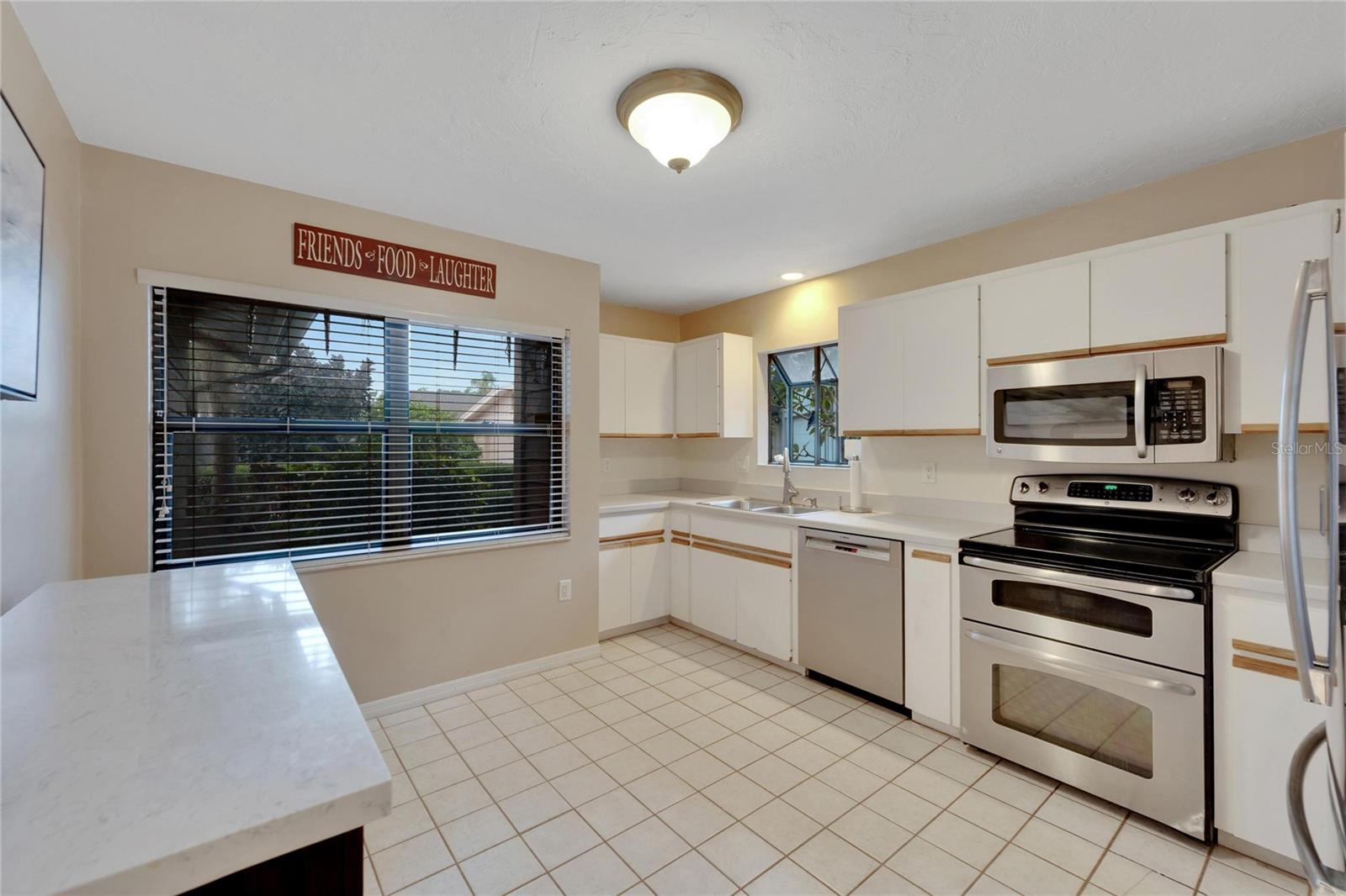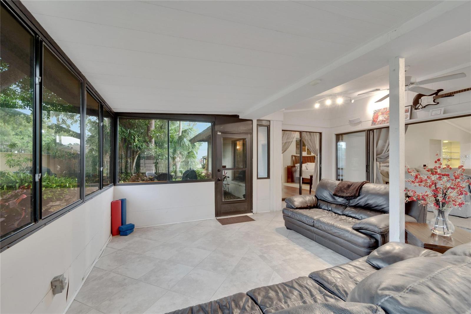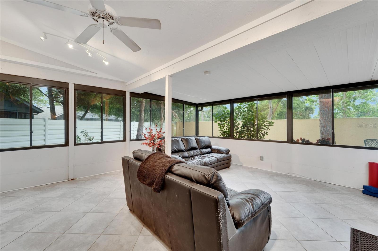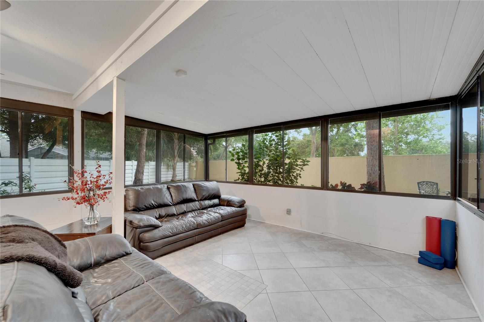 Welcome home to this 2 bedroom, 2 bath single-family home in Pine Trace, a Condominium in sunny Sarasota! Enjoy the maintenance free living that includes cable, trash, pest control, lawn maintenance, and exterior maintenance. BRAND NEW HVAC 9/2024, NEW ROOF 2023. NEW EXTERIOR PAINT 2023. Inside you will find the living/dining inviting with the open floor concept and vaulted ceilings. Kitchen offers natural lighting with stainless steel appliances and a new dishwasher in 2023. The spacious primary bedroom has separate space for either an office or a private lounging area. The primary ensuite provides granite vanities, a sliding glass shower door, and a walk-in closet. Relax in the Florida room that is surrounded by windows overlooking your backyard oasis ready for entertaining. This ideal location in Sarasota is close to shopping, dining, golf, beaches, healthcare, entertainment & the Sarasota Bradenton International Airport. The Palm Aire Country Club is conveniently across the street and offers a variety of memberships that can include golf, tennis, pickleball, pool, fitness and social and dining activities.