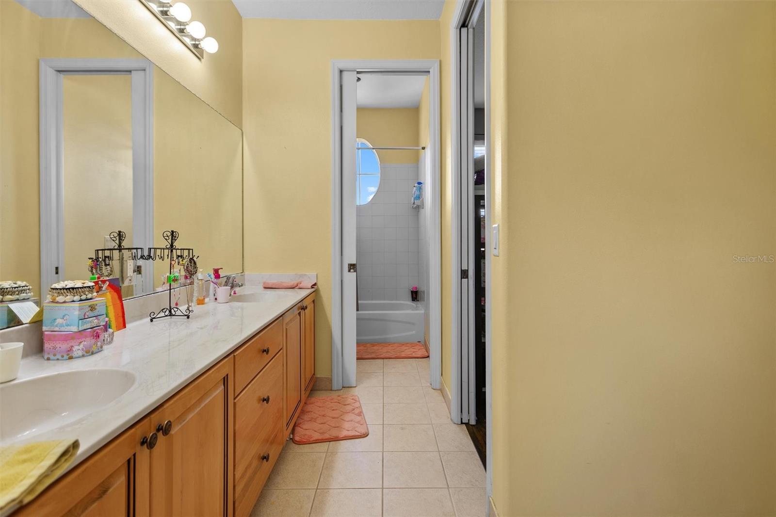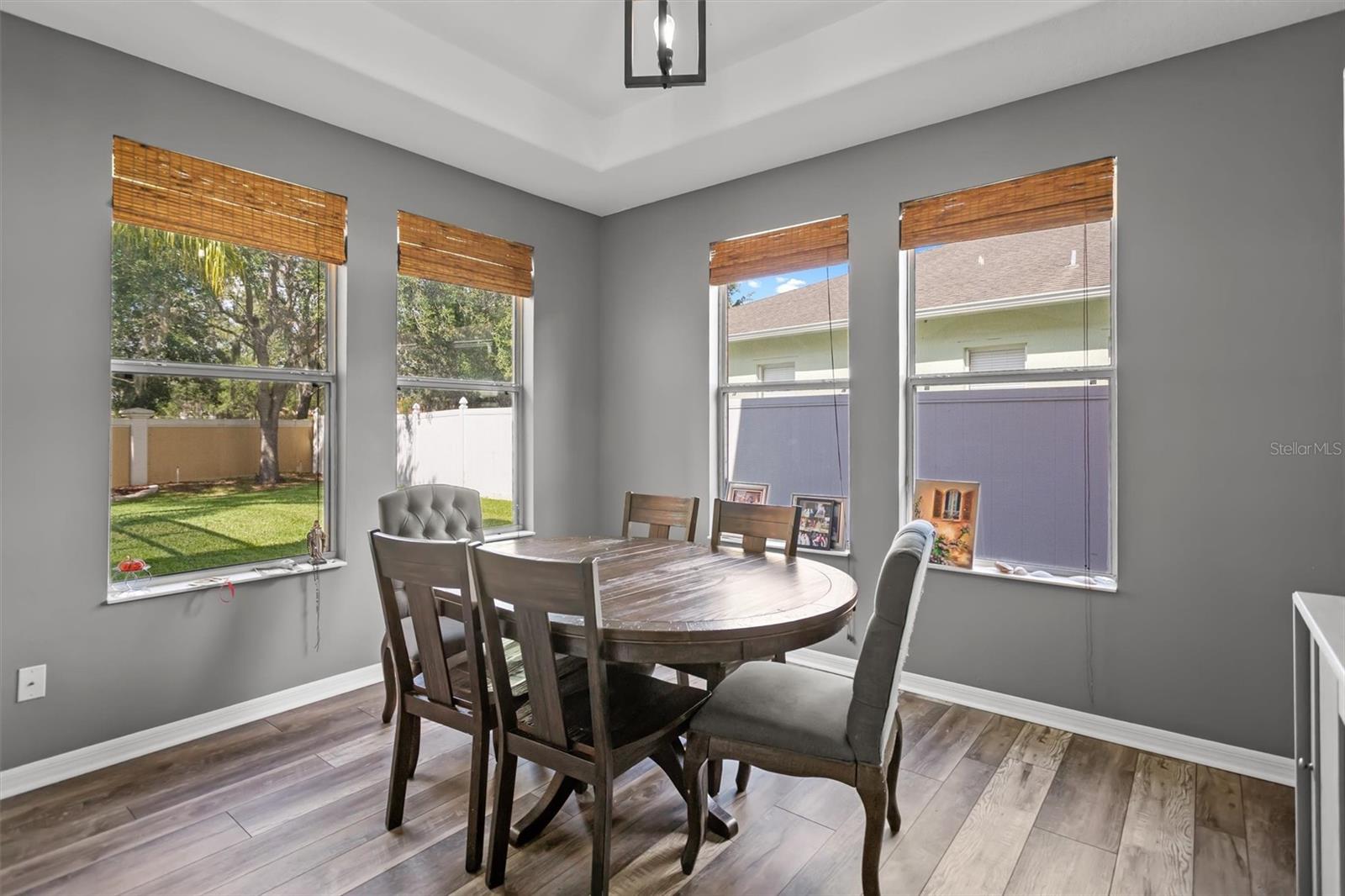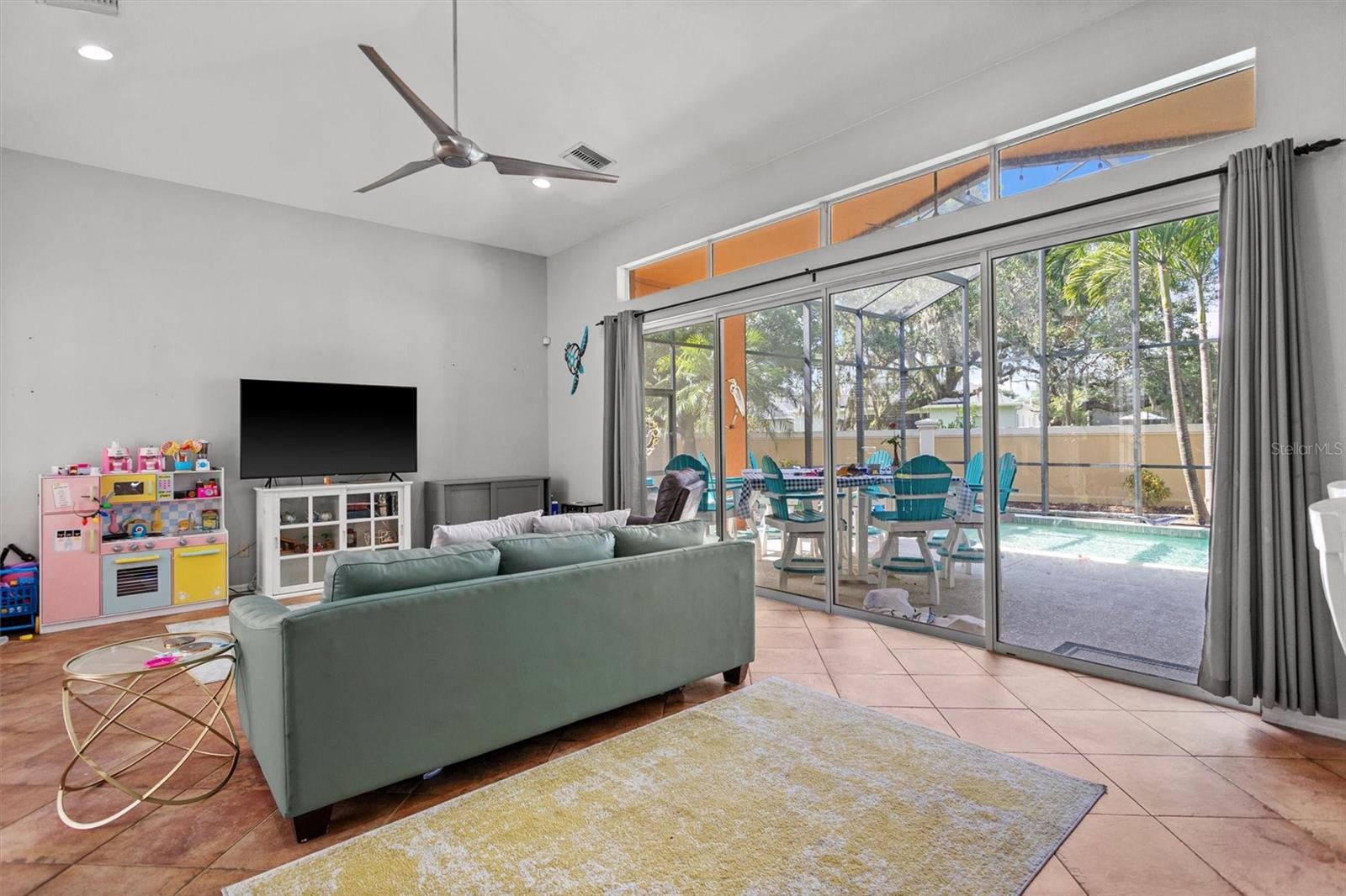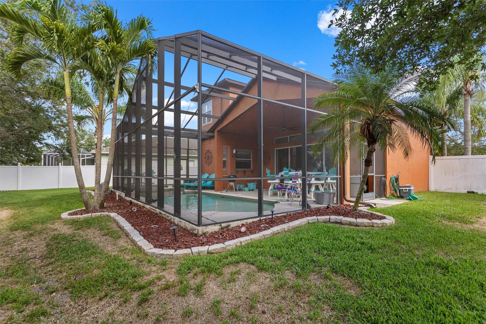 The perfect combo of size, location, elevation, and layout this 5 bed, 4 bath, 3 car garage with pool home is move in ready and waiting for you! You'll love the high ceilings, lots of natural light and incredible amounts of storage. When entering the home, the open floor plan, soaring high ceilings, sparkling pool, and lush backyard greet you and your guests. The living room is spacious and when the sliders are opened up it is even more spacious! The pool deck becomes almost an extension of the living room, bringing the outdoors in! The kitchen is the central gathering space, with a large functional island, smaller staging island, and a built in breakfast nook bench with even more storage underneath! Off the kitchen is an office/ den space that used to be used as a formal dining room. There is one full bedroom on the ground floor with a full bathroom as well. Upstairs, the owners suite is large and in charge! The en-suite bath features a soaking tub and walk in shower, his/hers vanities, and even a bidet! You'll struggle to fill the walk in closet, the size of another bedroom! The 2nd and 3rd bedrooms are connected through a Jack and Jill bath, and the 4th bedroom comes with a private en-suite bath. The interior laundry room has extensive storage. Sellers willing to give repair and painting credits. Roof replaced in 2022. No damage from the storms! Flood Zone X !