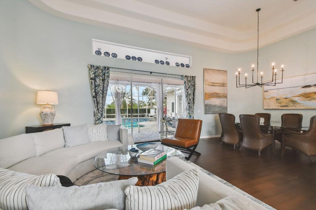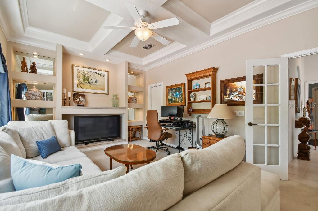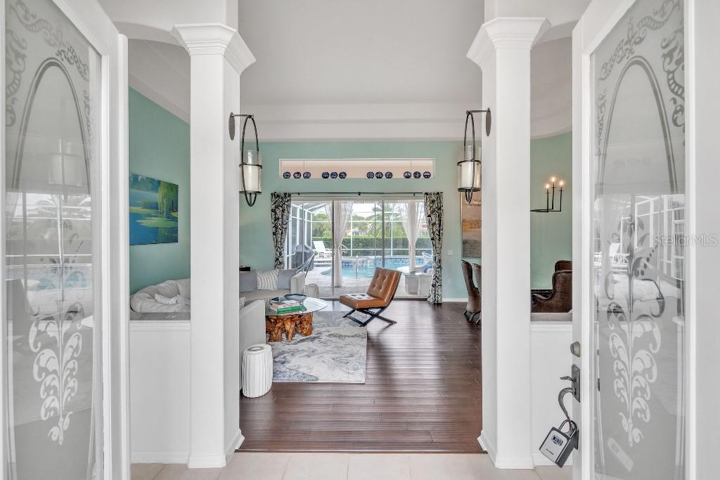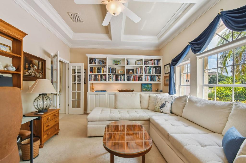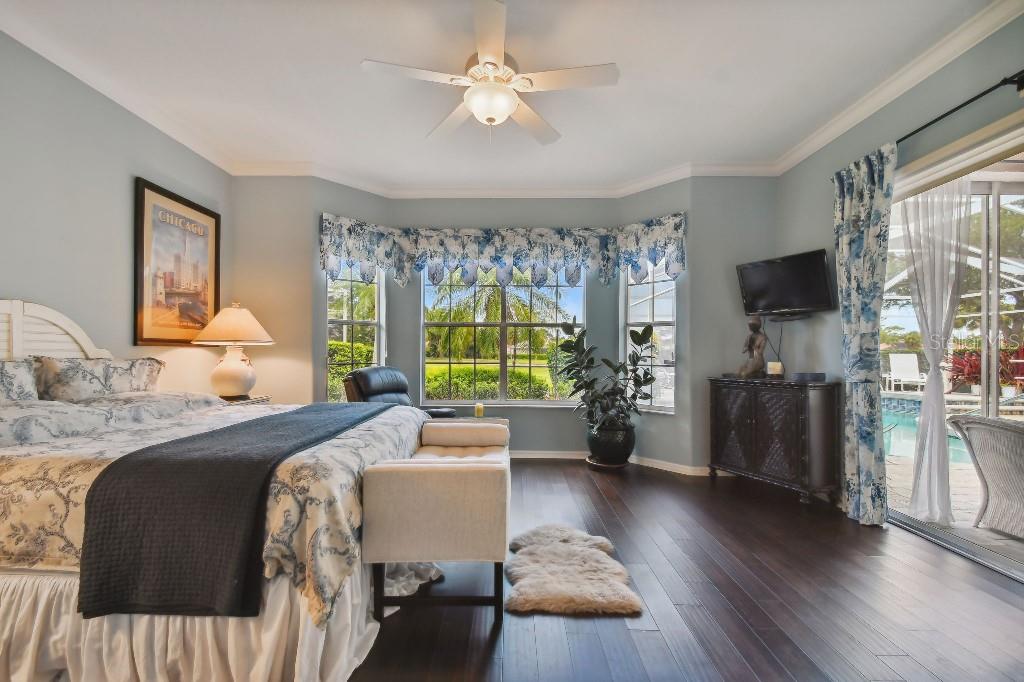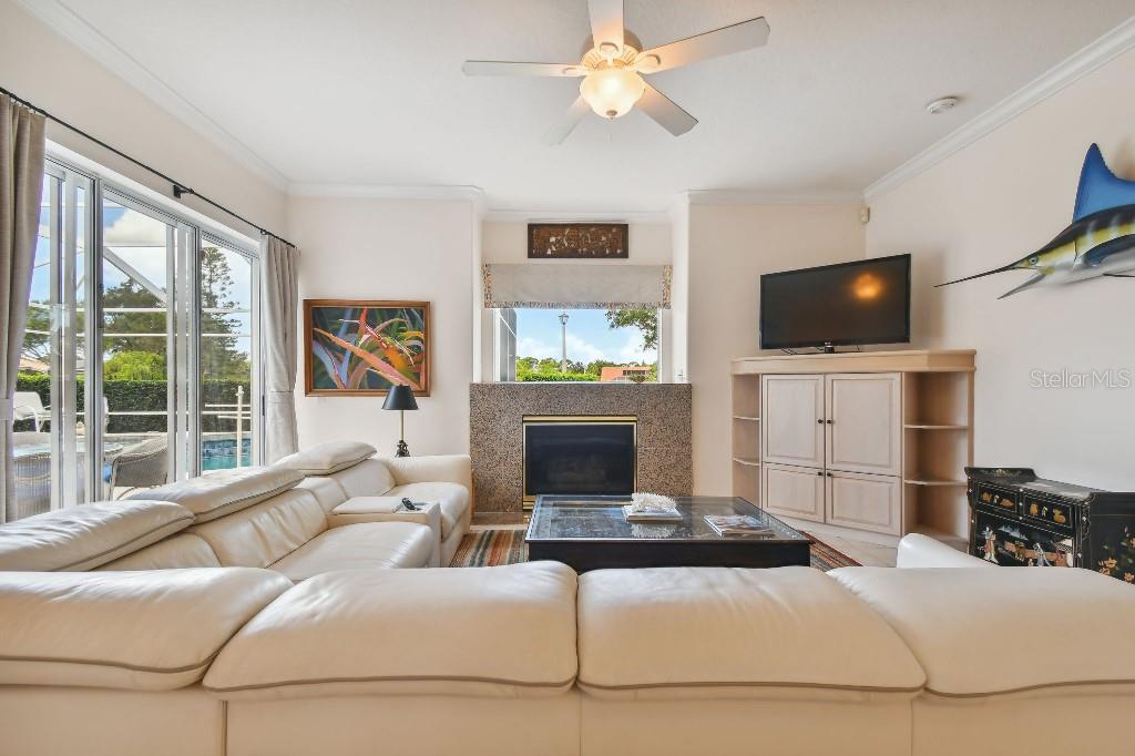 ACCEPTING BACK UP OFFERS!! Welcome to Stoneybrook Golf & Country Club-a true southwest Florida lifestyle community offering the best combination of location and conveniences. Community amenities include the new Kipp Schultes designed 18-hole golf course and pro shop, four lighted Har Tru tennis courts, fitness center, Bocce ball courts, walking trails, a full-service restaurant, award-winning community ponds. The community is also a five-minute drive to Costco, Publix and shopping and less than 8 miles from Nokomis and Siesta Key beaches. This special home is one of the largest in the entire community and is located on the corner lot in the highly desired area of Stoneybrook called Grey Oaks Estates, where life is easy and you can just walk to the Clubhouse. The tile roof was replaced in 2017 with wind mitigation report to reduce insurance cost. For added security, the home has combination electric and accordion hurricane shutters throughout. The hot water tank was replaced in 2021 and home has a 250-gallon underground propane tank. The special assessment on the new golf course is paid in full! As the model home, all of the rooms are big! Big living room, big kitchen, big family room, big bedrooms!! Boasting 3,031 sf, this one-story home has 3 bedrooms, plus den with 2 full baths, 2 half-baths and a two-car garage. As you enter, you are greeted with expansive floor-to-ceiling sliding glass doors that open to private pool views with low maintenance landscaping with pond views beyond. The formal living/dining room with hardwood floors and 16-foot ceiling is ideal for entertaining, while the large family room off the kitchen is perfect for casual gatherings. The large kitchen includes granite countertops, new LG stainless steel appliances and pull-out cabinet drawers; aquarium glass surrounds the dinette area, and the fireplace is perfect for those few chilly days in winter. The split floor plan maximizes privacy. On one side, retreat to the spacious main bedroom, with dual walk-in closets and bay windows that look out onto a private garden. The en suite has dual sinks, soaking tub and a separate shower and vanity. The light and bright den offers coffered ceiling and built-ins that can accommodate a 70” tv and separate library-style bookcase; it makes for a great executive office or 4 th bedroom. The two guest bedrooms are spacious & have delightful views of mature foliage with their own full bath. Each side of the home has an independent A/C system; new A/C replaced in 2022. There is a separate laundry room with sink and cabinets. For a quick suit change after a day by the sparkling pool with waterfall hot tub, you can use the outdoor shower and half bath. The pool pump and heater were replaced in 2021. The covered lanai, with dual ceiling fans, can be accessed from sliding glass doors from the living room, the kitchen/family room, and main bedroom. The west coast of Florida is known for offering the best of indoor/outdoor living and this home has it all.
