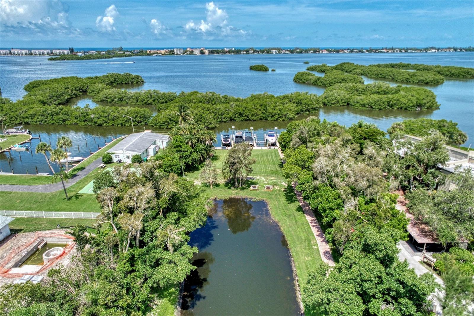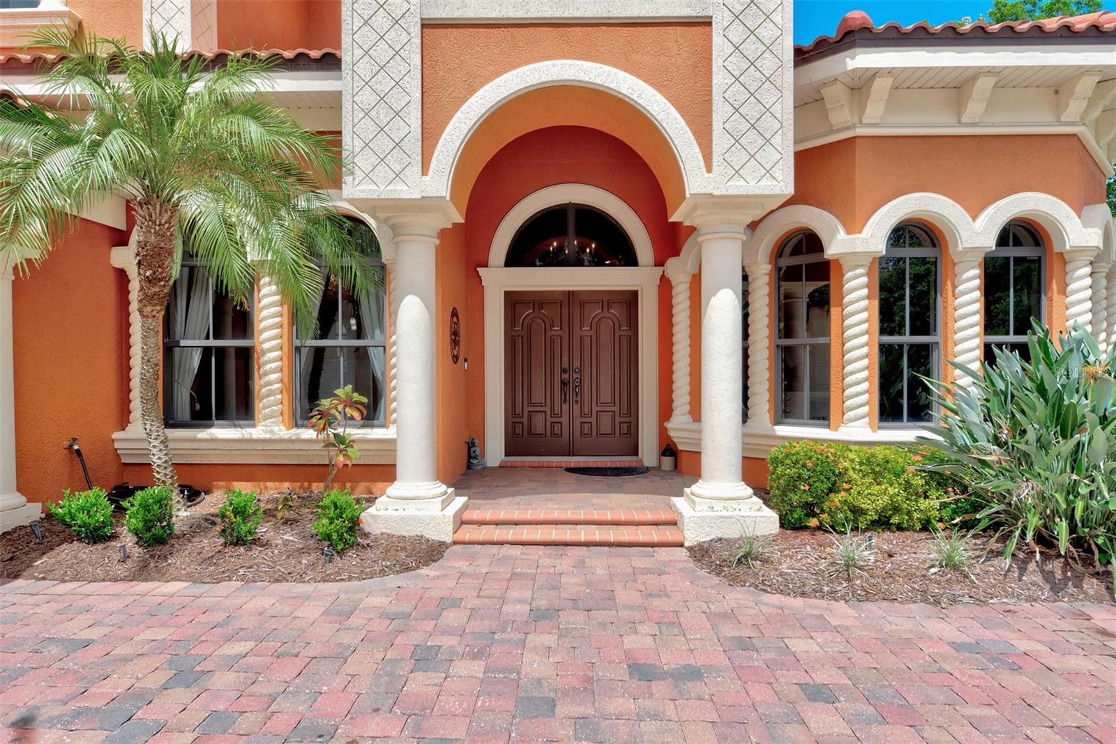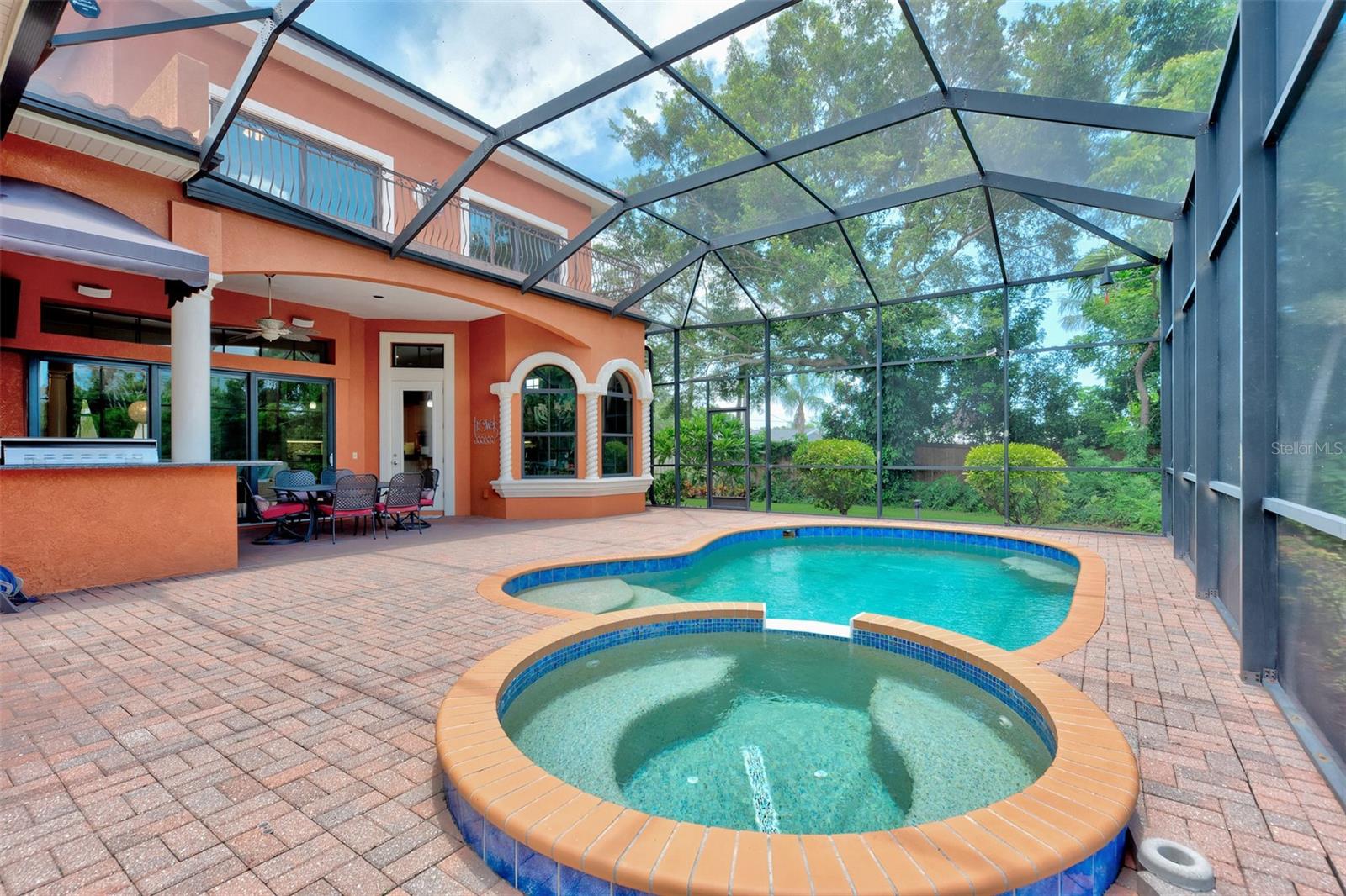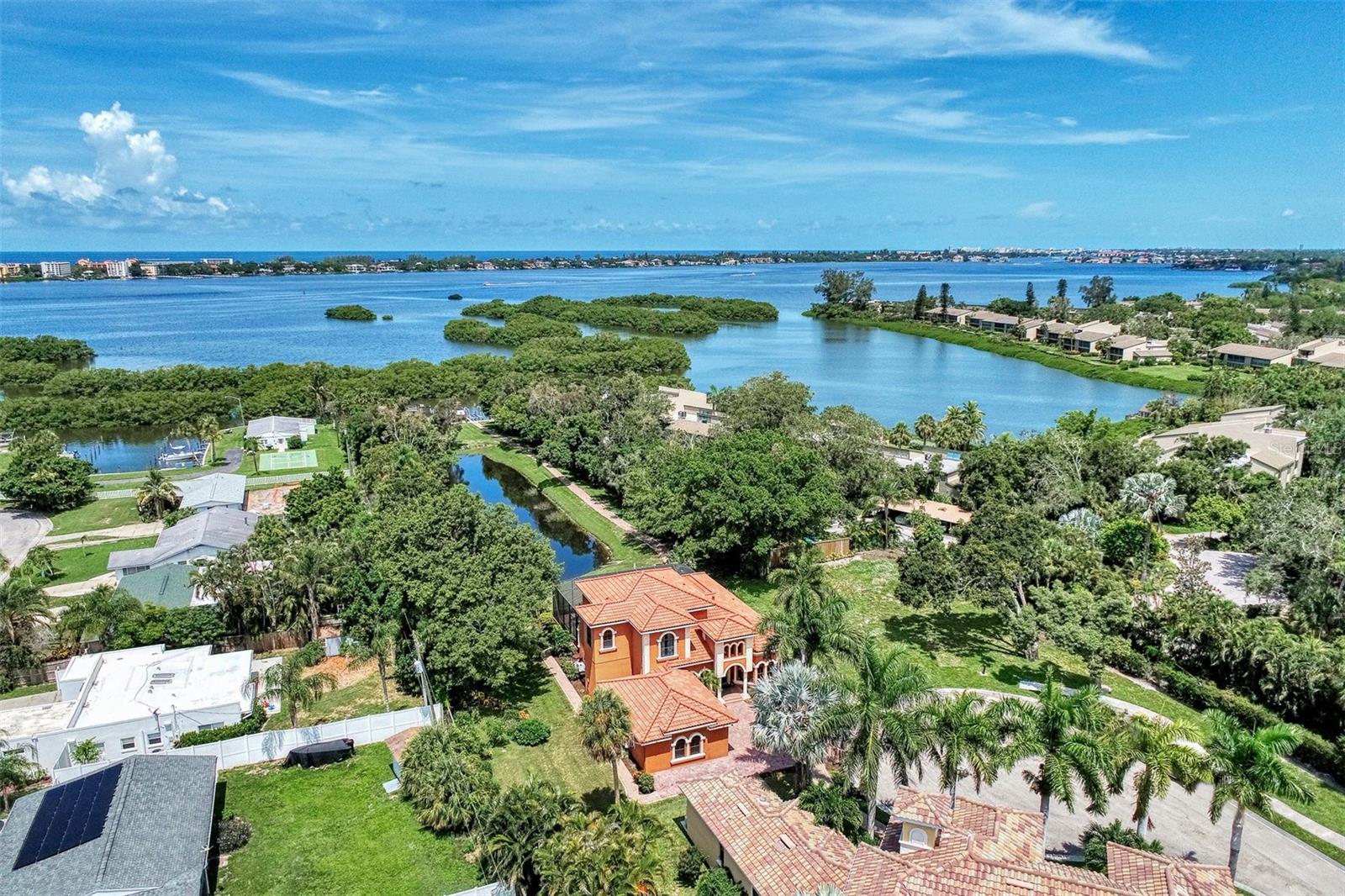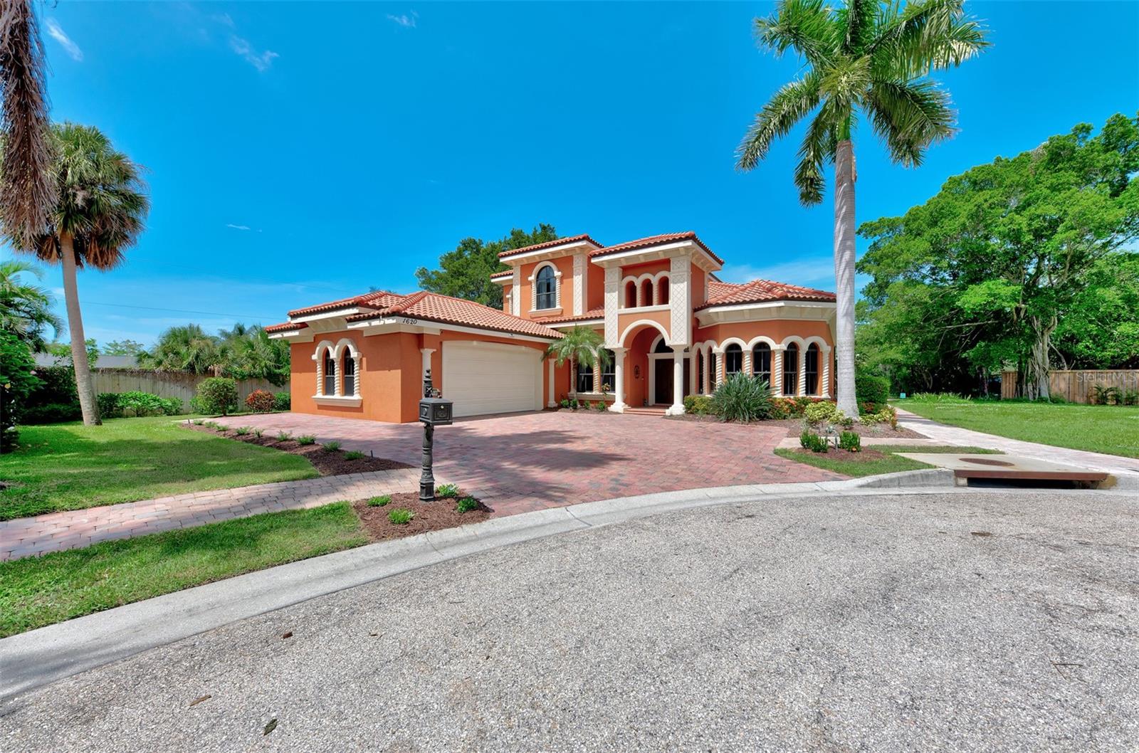 Beautiful Mediterranean style luxury home built in 2010 by Todd Johnston, who is one of Sarasota's most respected high end builders. Incredible sunset views await from the first floor that overlooks the pond and boat docks. Amazing views from the 2nd story balcony/sun deck that overlooks the pond, boat docks and Intracoastal waterway. This 4 bed, 3.5 bath open layout home includes large pocket sliders to the pool area, stainless appliances, inside kitchen with large bar seating, granite countertops, an island with a sink, gas cooktop, gas fireplace, outdoor kitchen with bar, heated pool with spa, air conditioned oversized garage and driveway. Master bedroom and bath are on the first floor with 2 sets of French doors leading to the pool area. Upstairs boasts 3 bedrooms, one with a full bath and another shared full bath. Central air throughout with upstairs and downstairs on 2 separate zones/thermostats. Both air conditioners replaced in 2022 and 2023. The Portofino on the Bay gated community has a kayak launch and boat day dock for all residents to use and there are kayak racks for rent for a minimal fee per year. There may be boat slips available for purchase with lifts from other owners, but you should check with the HOA manager for availability. Come live the Florida waterfront lifestyle in a peaceful setting close to beaches, shopping, restaurants and medical facilities. Air compressor, Tesla EV Charger do not convey with sale.