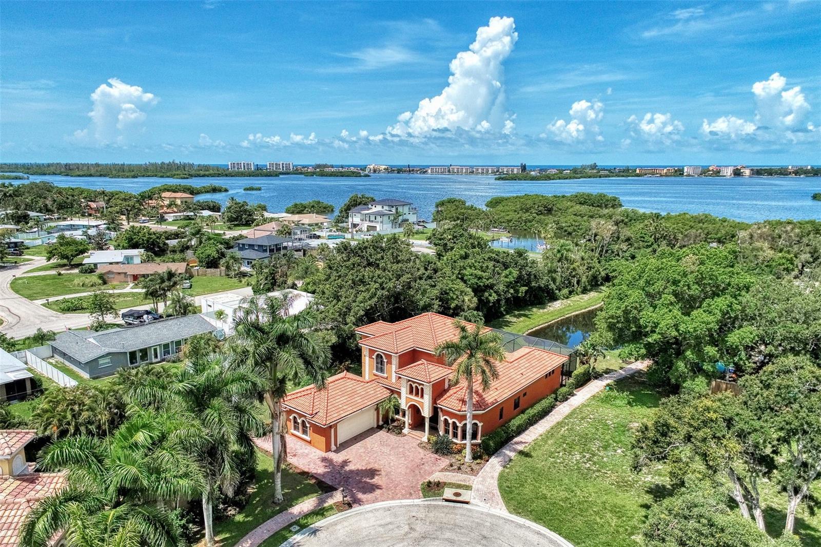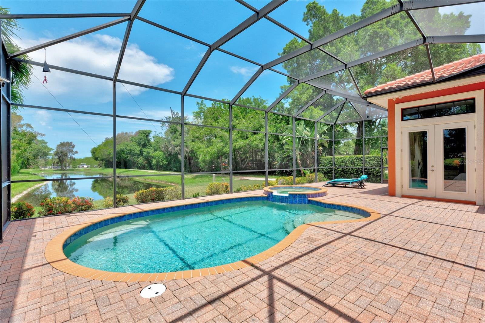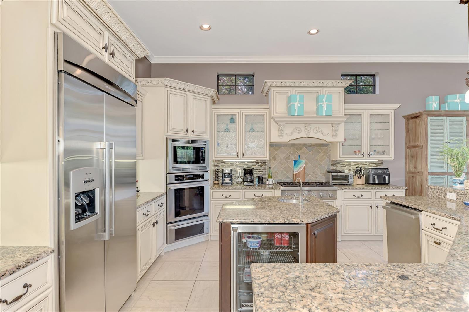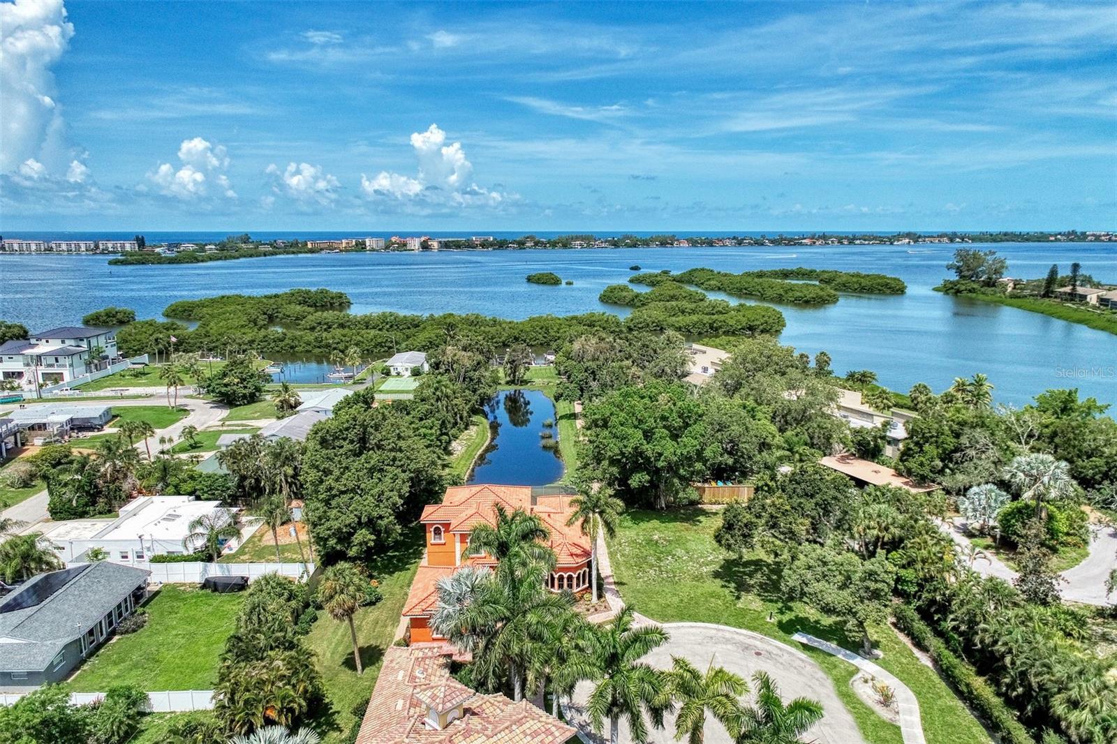 Beautiful Mediterranean style luxury home built in 2010 by Todd Johnston, who is one of Sarasota's most respected high end builders. Incredible sunset views await from the first floor that overlooks the pond and boat docks. Amazing views from the 2nd story balcony/sun deck that overlooks the pond, boat docks and Intracoastal waterway. This 4 bed, 3.5 bath open layout home includes large pocket sliders to the pool area, stainless appliances, inside kitchen with large bar seating, granite countertops, an island with a sink, gas cooktop, gas fireplace, outdoor kitchen with bar, heated pool with spa, air conditioned oversized garage and driveway. Master bedroom and bath are on the first floor with 2 sets of French doors leading to the pool area. Upstairs boasts 3 bedrooms, one with a full bath and another shared full bath. Central air throughout with upstairs and downstairs on 2 separate zones/thermostats. Both air conditioners replaced in 2022 and 2023. The Portofino on the Bay gated community has a kayak launch and boat day dock for all residents to use and there are kayak racks for rent for a minimal fee per year. There may be boat slips available for purchase with lifts from other owners, but you should check with the HOA manager for availability. Come live the Florida waterfront lifestyle in a peaceful setting close to beaches, shopping, restaurants and medical facilities. Air compressor, Tesla EV Charger do not convey with sale.