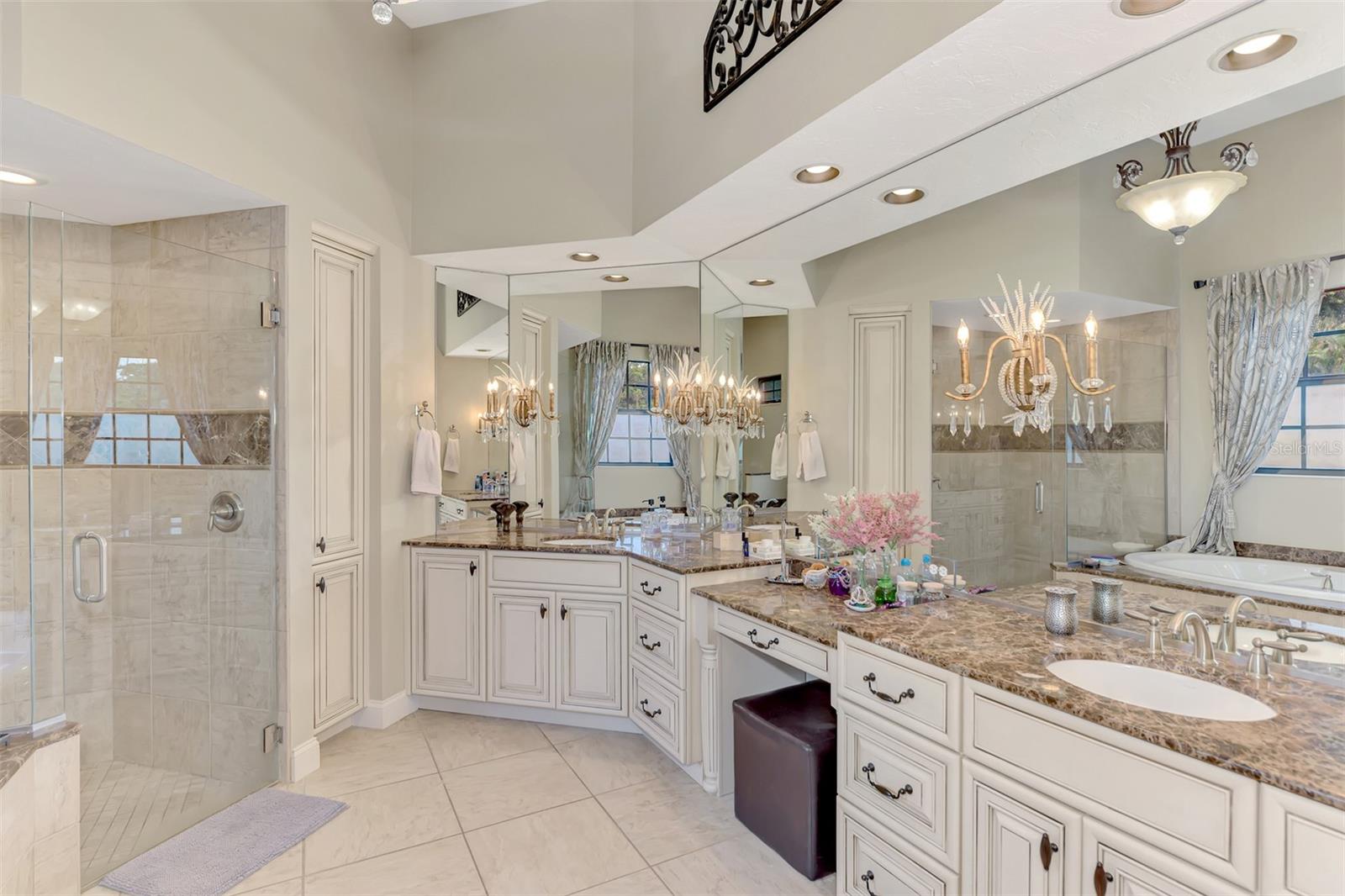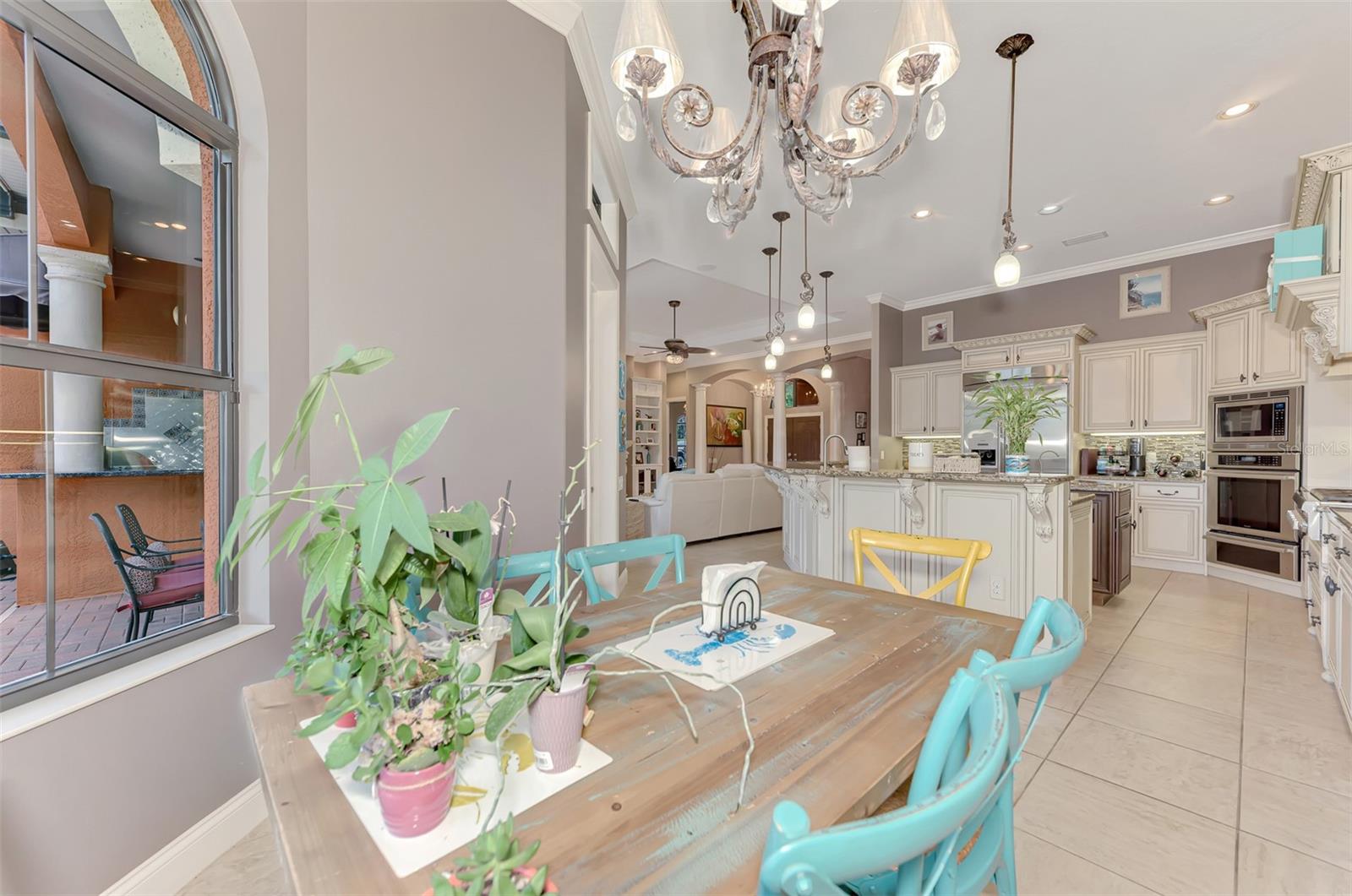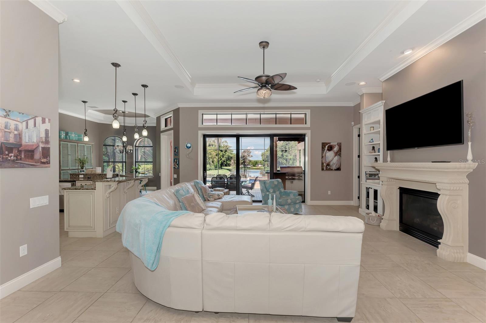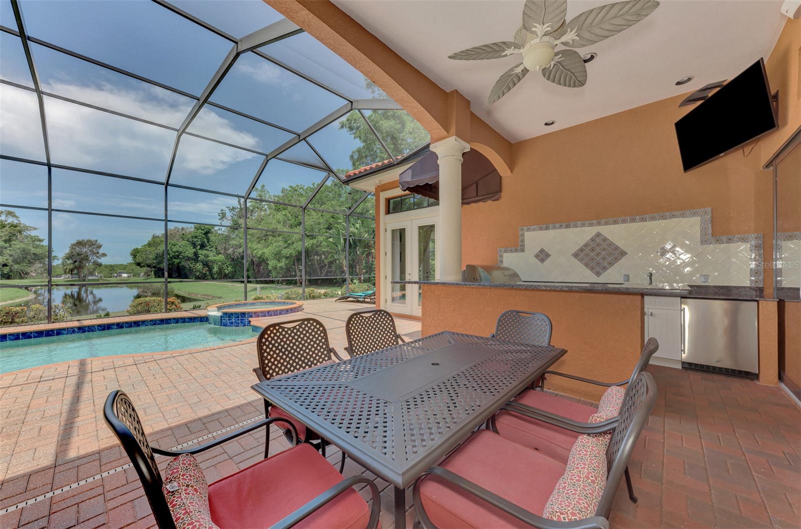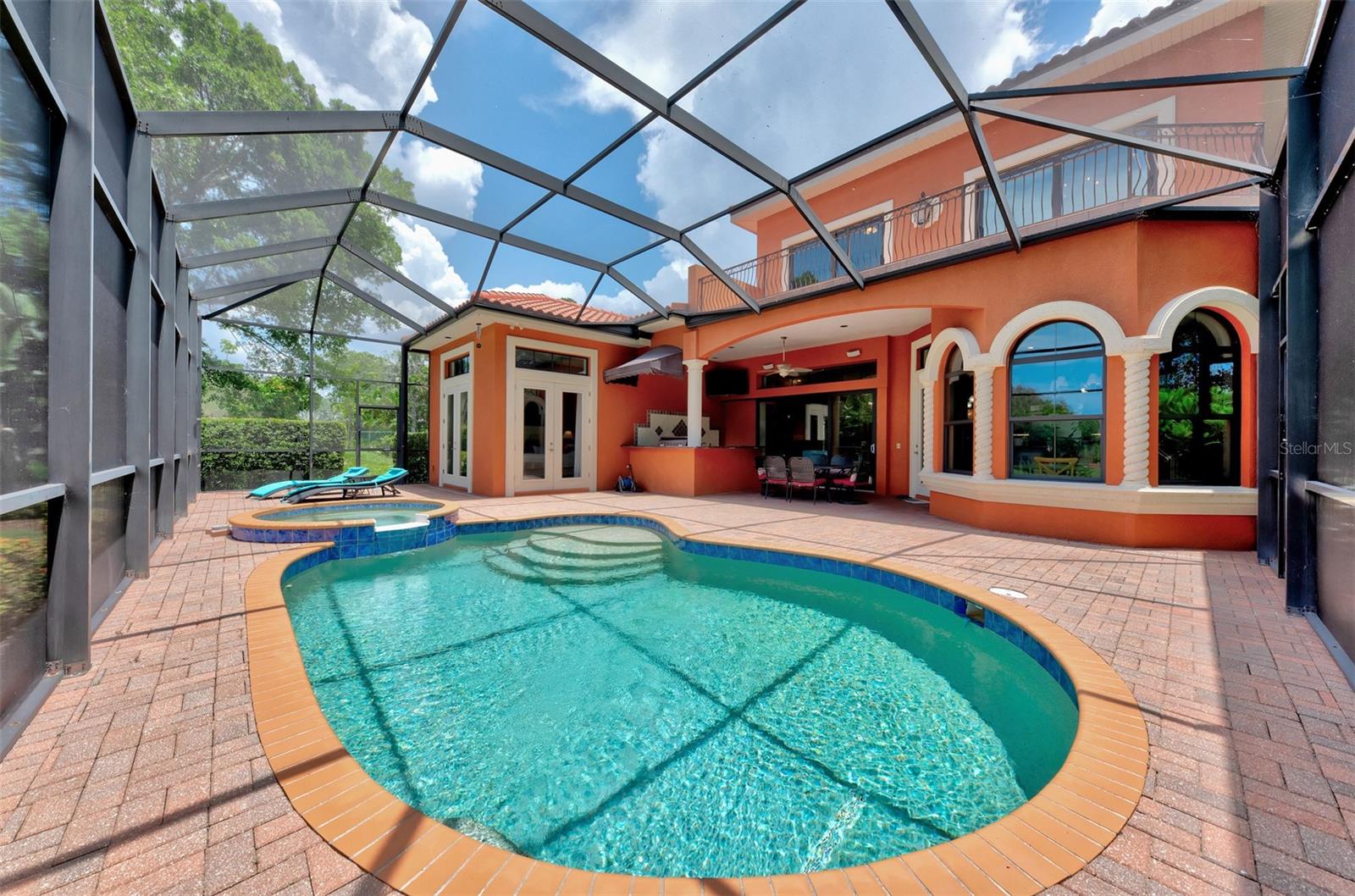 Beautiful Mediterranean style luxury home built in 2010 by Todd Johnston, who is one of Sarasota's most respected high end builders. Incredible sunset views await from the first floor that overlooks the pond and boat docks. Amazing views from the 2nd story balcony/sun deck that overlooks the pond, boat docks and Intracoastal waterway. This 4 bed, 3.5 bath open layout home includes large pocket sliders to the pool area, stainless appliances, inside kitchen with large bar seating, granite countertops, an island with a sink, gas cooktop, gas fireplace, outdoor kitchen with bar, heated pool with spa, air conditioned oversized garage and driveway. Master bedroom and bath are on the first floor with 2 sets of French doors leading to the pool area. Upstairs boasts 3 bedrooms, one with a full bath and another shared full bath. Central air throughout with upstairs and downstairs on 2 separate zones/thermostats. Both air conditioners replaced in 2022 and 2023. The Portofino on the Bay gated community has a kayak launch and boat day dock for all residents to use and there are kayak racks for rent for a minimal fee per year. There may be boat slips available for purchase with lifts from other owners, but you should check with the HOA manager for availability. Come live the Florida waterfront lifestyle in a peaceful setting close to beaches, shopping, restaurants and medical facilities. Air compressor, Tesla EV Charger do not convey with sale.