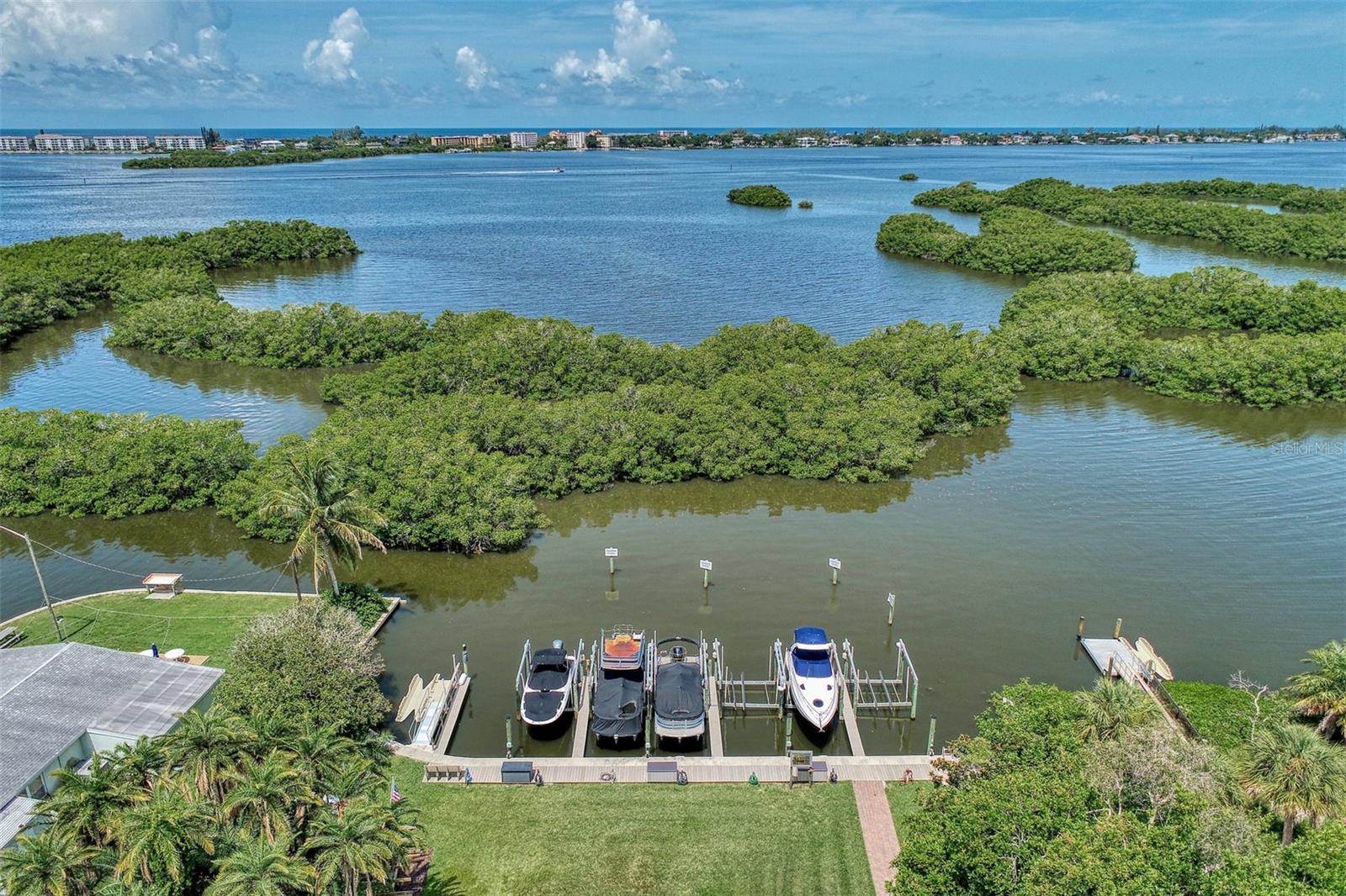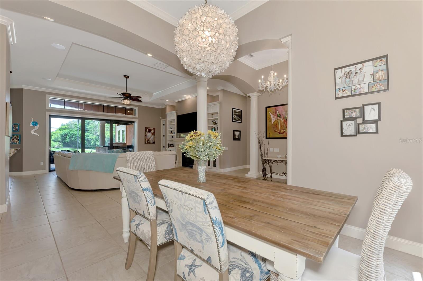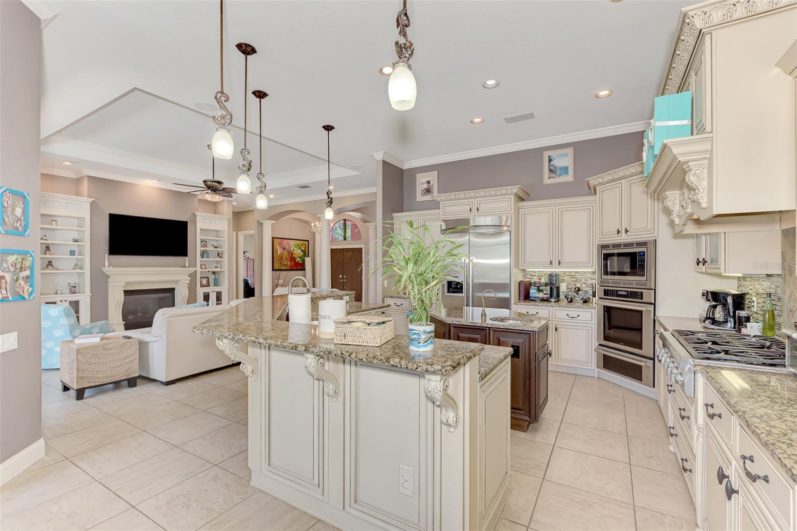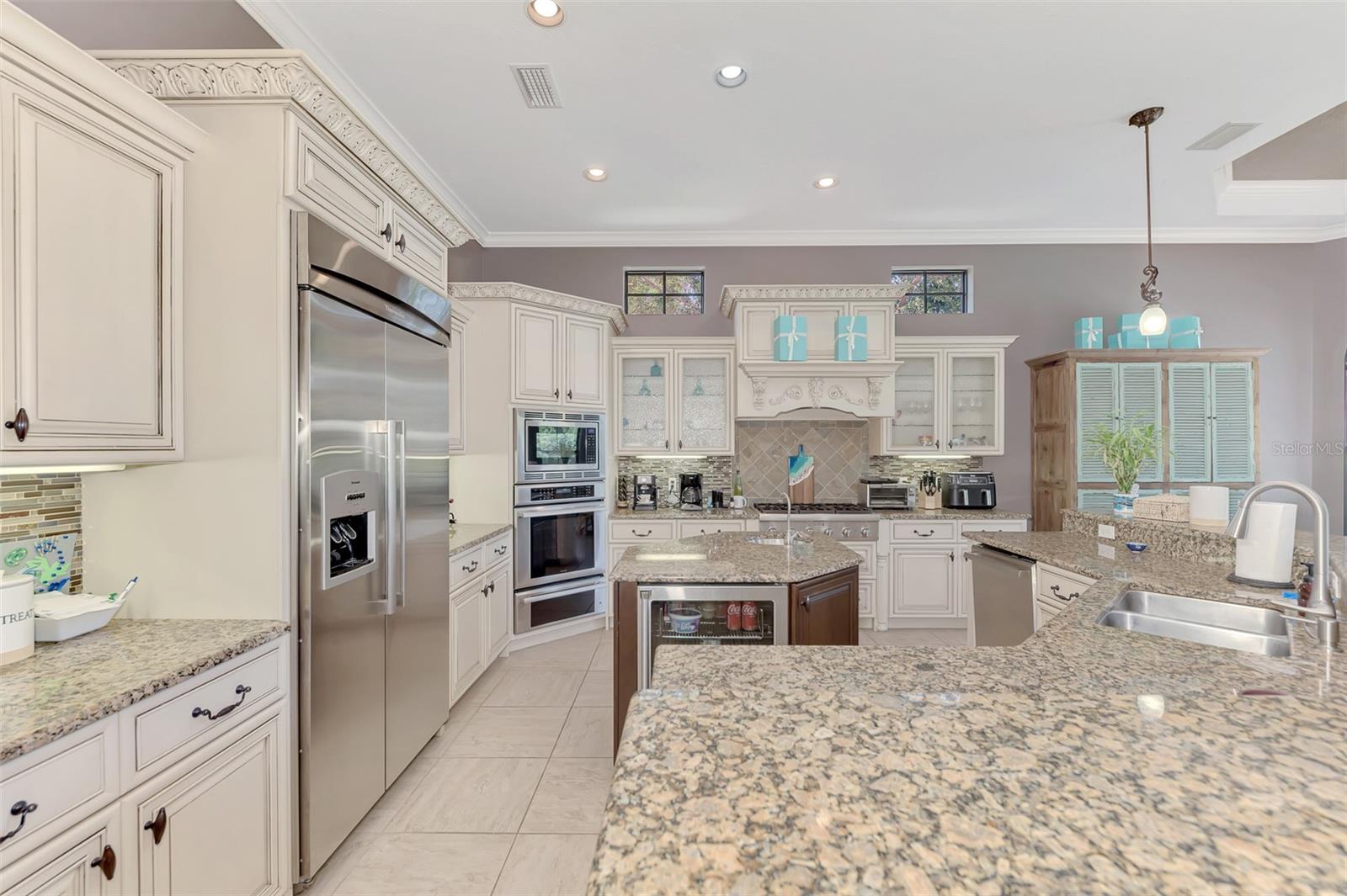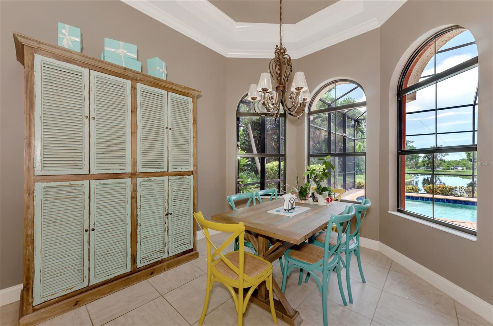 Beautiful Mediterranean style luxury home built in 2010 by Todd Johnston, who is one of Sarasota's most respected high end builders. Incredible sunset views await from the first floor that overlooks the pond and boat docks. Amazing views from the 2nd story balcony/sun deck that overlooks the pond, boat docks and Intracoastal waterway. This 4 bed, 3.5 bath open layout home includes large pocket sliders to the pool area, stainless appliances, inside kitchen with large bar seating, granite countertops, an island with a sink, gas cooktop, gas fireplace, outdoor kitchen with bar, heated pool with spa, air conditioned oversized garage and driveway. Master bedroom and bath are on the first floor with 2 sets of French doors leading to the pool area. Upstairs boasts 3 bedrooms, one with a full bath and another shared full bath. Central air throughout with upstairs and downstairs on 2 separate zones/thermostats. Both air conditioners replaced in 2022 and 2023. The Portofino on the Bay gated community has a kayak launch and boat day dock for all residents to use and there are kayak racks for rent for a minimal fee per year. There may be boat slips available for purchase with lifts from other owners, but you should check with the HOA manager for availability. Come live the Florida waterfront lifestyle in a peaceful setting close to beaches, shopping, restaurants and medical facilities. Air compressor, Tesla EV Charger do not convey with sale.