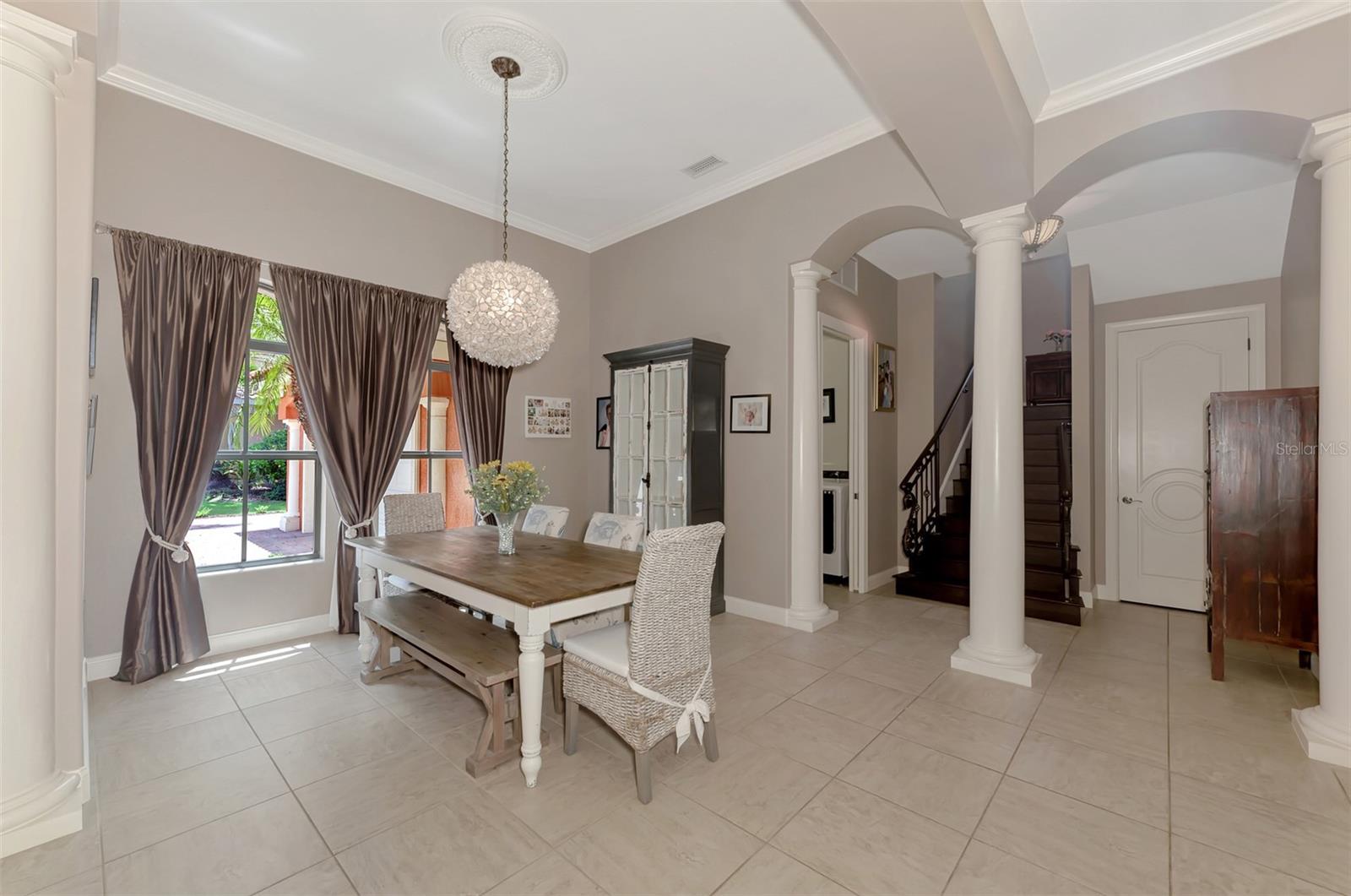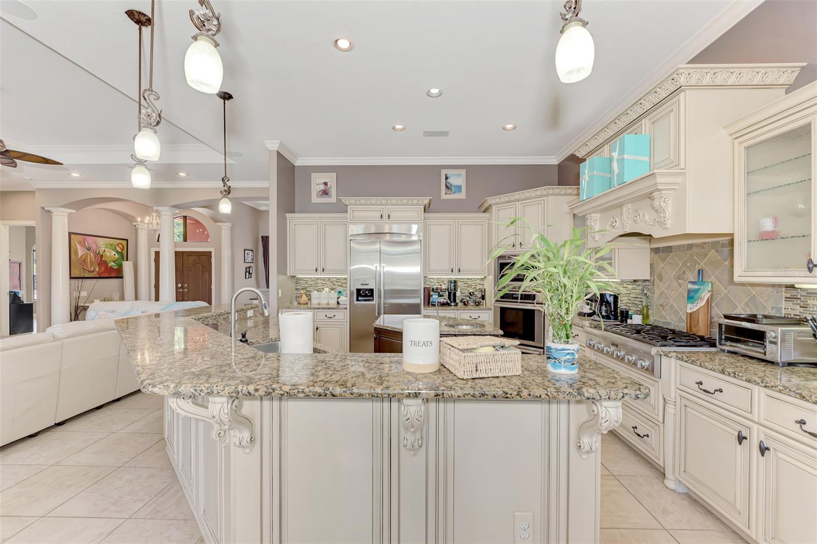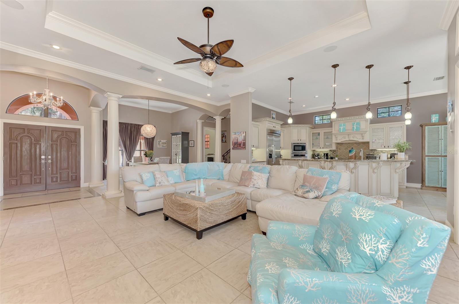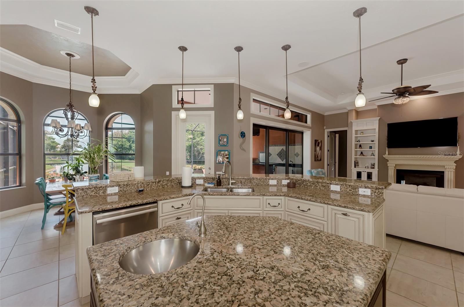 Beautiful Mediterranean style luxury home built in 2010 by Todd Johnston, who is one of Sarasota's most respected high end builders. Incredible sunset views await from the first floor that overlooks the pond and boat docks. Amazing views from the 2nd story balcony/sun deck that overlooks the pond, boat docks and Intracoastal waterway. This 4 bed, 3.5 bath open layout home includes large pocket sliders to the pool area, stainless appliances, inside kitchen with large bar seating, granite countertops, an island with a sink, gas cooktop, gas fireplace, outdoor kitchen with bar, heated pool with spa, air conditioned oversized garage and driveway. Master bedroom and bath are on the first floor with 2 sets of French doors leading to the pool area. Upstairs boasts 3 bedrooms, one with a full bath and another shared full bath. Central air throughout with upstairs and downstairs on 2 separate zones/thermostats. Both air conditioners replaced in 2022 and 2023. The Portofino on the Bay gated community has a kayak launch and boat day dock for all residents to use and there are kayak racks for rent for a minimal fee per year. There may be boat slips available for purchase with lifts from other owners, but you should check with the HOA manager for availability. Come live the Florida waterfront lifestyle in a peaceful setting close to beaches, shopping, restaurants and medical facilities. Air compressor, Tesla EV Charger do not convey with sale.
