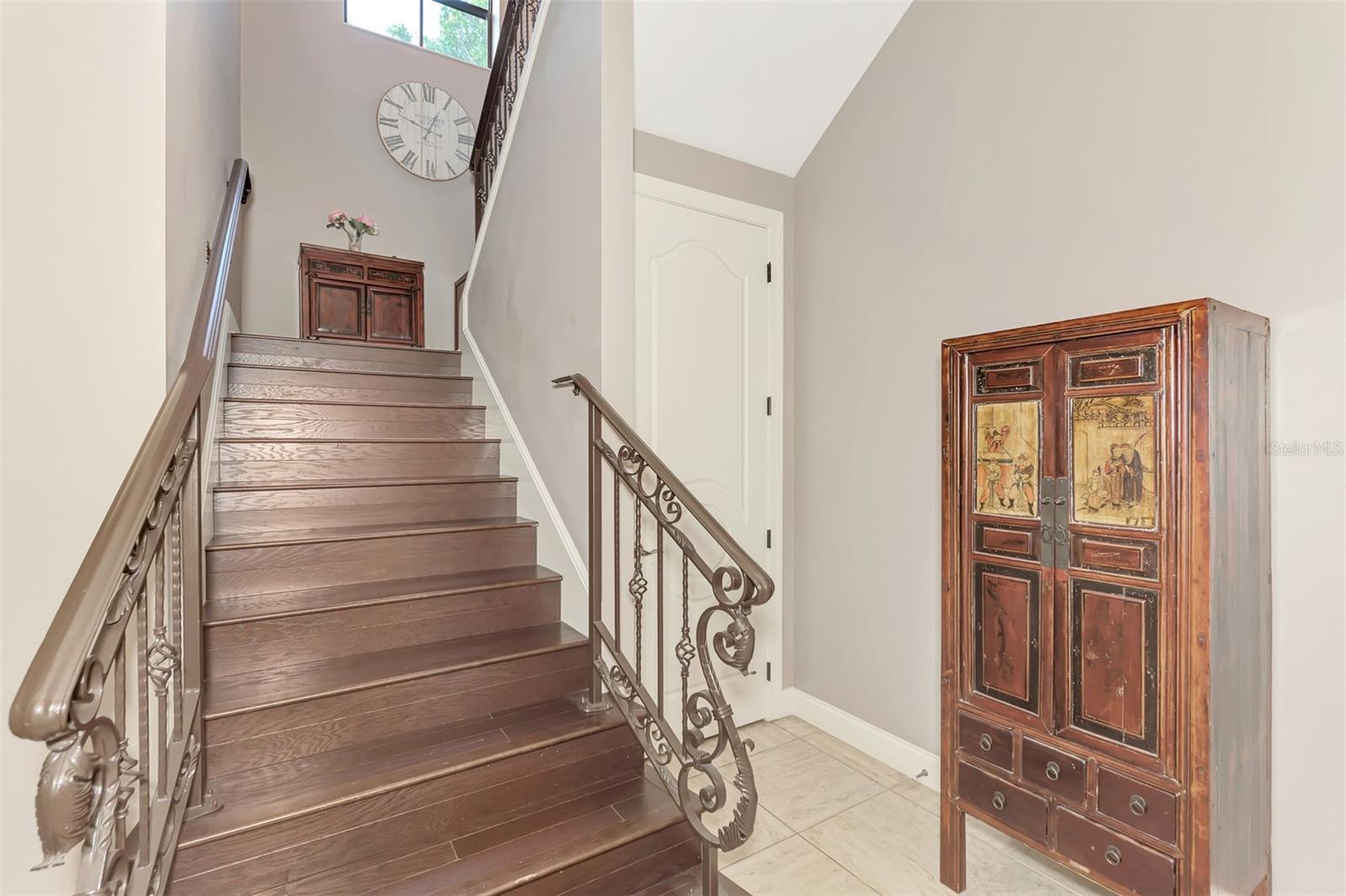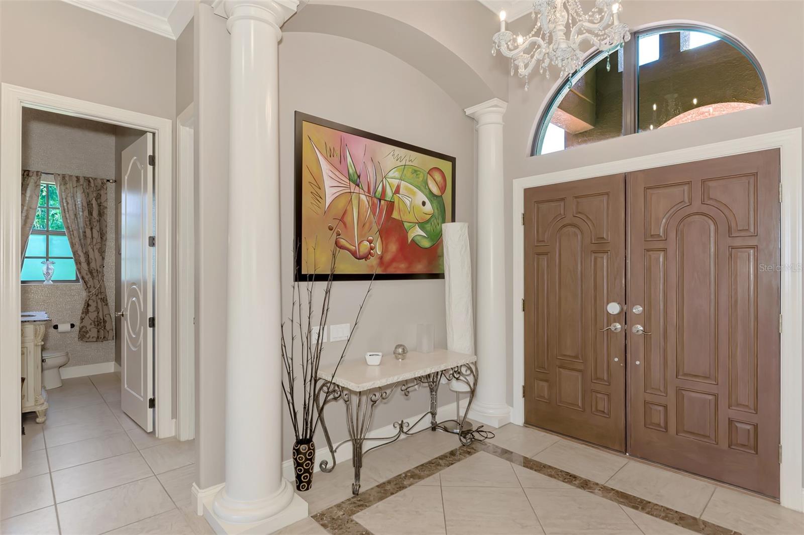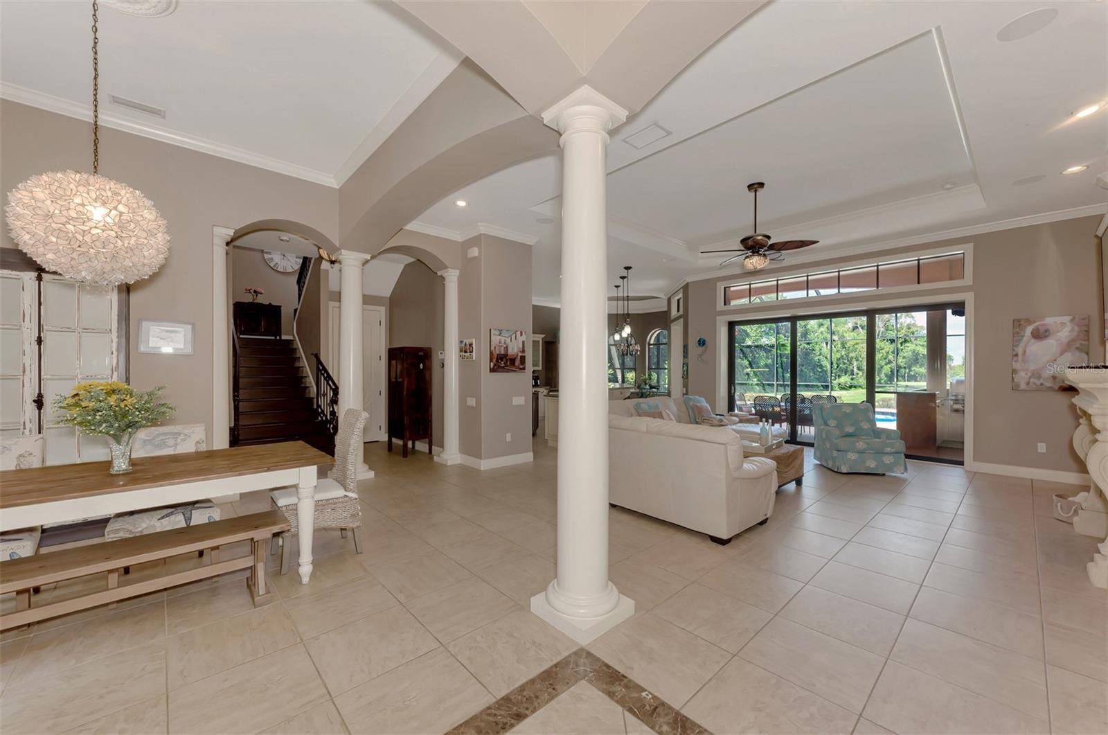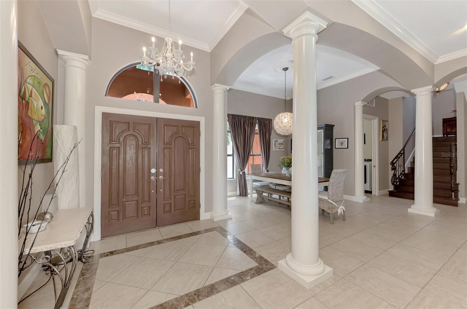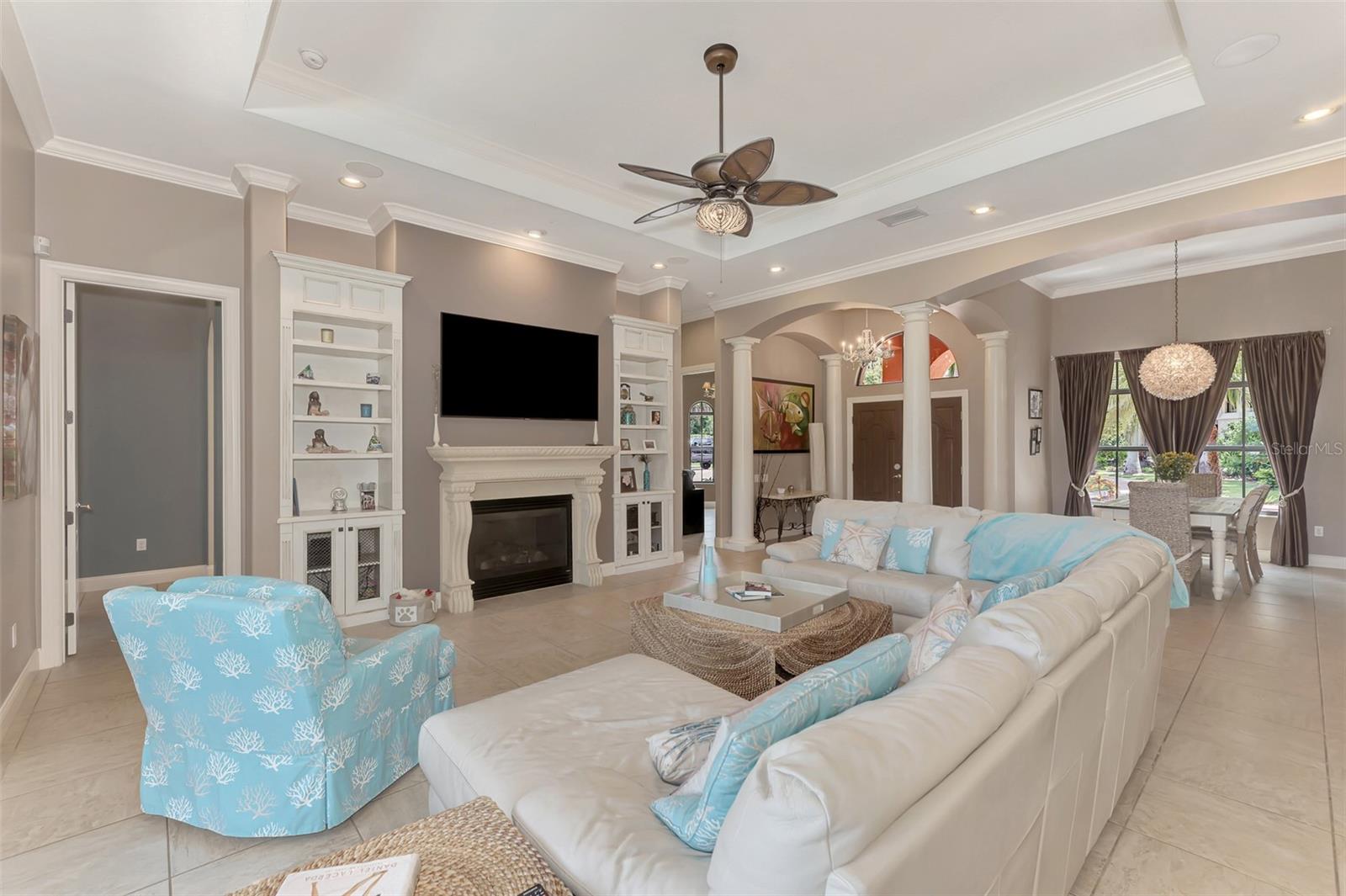 Beautiful Mediterranean style luxury home built in 2010 by Todd Johnston, who is one of Sarasota's most respected high end builders. Incredible sunset views await from the first floor that overlooks the pond and boat docks. Amazing views from the 2nd story balcony/sun deck that overlooks the pond, boat docks and Intracoastal waterway. This 4 bed, 3.5 bath open layout home includes large pocket sliders to the pool area, stainless appliances, inside kitchen with large bar seating, granite countertops, an island with a sink, gas cooktop, gas fireplace, outdoor kitchen with bar, heated pool with spa, air conditioned oversized garage and driveway. Master bedroom and bath are on the first floor with 2 sets of French doors leading to the pool area. Upstairs boasts 3 bedrooms, one with a full bath and another shared full bath. Central air throughout with upstairs and downstairs on 2 separate zones/thermostats. Both air conditioners replaced in 2022 and 2023. The Portofino on the Bay gated community has a kayak launch and boat day dock for all residents to use and there are kayak racks for rent for a minimal fee per year. There may be boat slips available for purchase with lifts from other owners, but you should check with the HOA manager for availability. Come live the Florida waterfront lifestyle in a peaceful setting close to beaches, shopping, restaurants and medical facilities. Air compressor, Tesla EV Charger do not convey with sale.