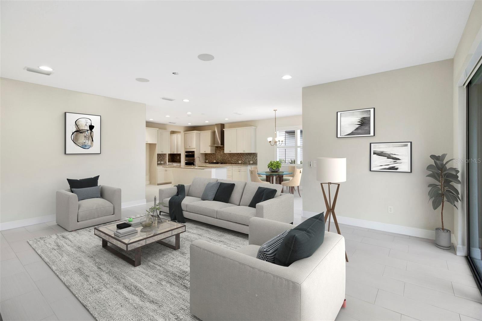One or more photo(s) has been virtually staged. Price improvement!! Experience the height of luxury living at 4881 Antrim Dr., an extraordinary 5-bedroom, 3-bath estate located in the prestigious, secure, and gated Worthington community. Perfectly situated near top-rated schools, upscale shopping, scenic parks, and a range of recreational activities, this home epitomizes elegance and convenience. Step into a realm of sophistication with a sprawling 40’ x 8’ extended lanai, enhanced with exquisite pavers and a seamless sliding glass door that invites effortless indoor-outdoor living. The lanai is primed for entertaining, complete with an outdoor kitchen/sink rough-in and ample space in the expansive backyard to design your dream swimming pool, creating your own private retreat. Enjoy the added privacy of having no rear neighbors, ensuring a serene and tranquil environment. Inside, the home is a showcase of premium upgrades and modern amenities, including a state-of-the-art water softener, UV lights in the air conditioner for pristine air quality, and built-in ceiling speakers that provide an exceptional audio experience. The Level 5 Gourmet Kitchen is a culinary masterpiece, featuring high-end glazed cabinets, top-of-the-line stainless steel appliances, a gas stove, and elegant Level 3 Quartz countertops. The kitchen is further enhanced by a Level 6 tile backsplash, soft-close drawers, and sophisticated crown molding. The residence boasts upgraded iron stair railings with round posts and spindles, a stained handrail, and luxurious Level 6 floor tiles throughout. The sumptuous Level 3 Quartz surfaces grace both the kitchen and master bathroom, adding a touch of refined elegance. Additional highlights include automatic roller shades, plantation shutters, and an upgraded 1/2" 7 lbs carpet pad for optimal comfort. An oversized loft area offers a versatile space for relaxation or entertainment. The extended garage is designed for convenience, with the capacity to potentially park three small cars or a golf cart. The home also includes a washer and dryer for added convenience. Enjoy the benefits of no CDD fees and a very low HOA fee of just $610.80 quarterly. This home seamlessly combines luxury, comfort, and practicality in a coveted location. Don’t miss the chance to make 4881 Antrim Dr. your new address—contact us today to schedule your private tour and experience the unparalleled elegance and sophistication of this exceptional property.