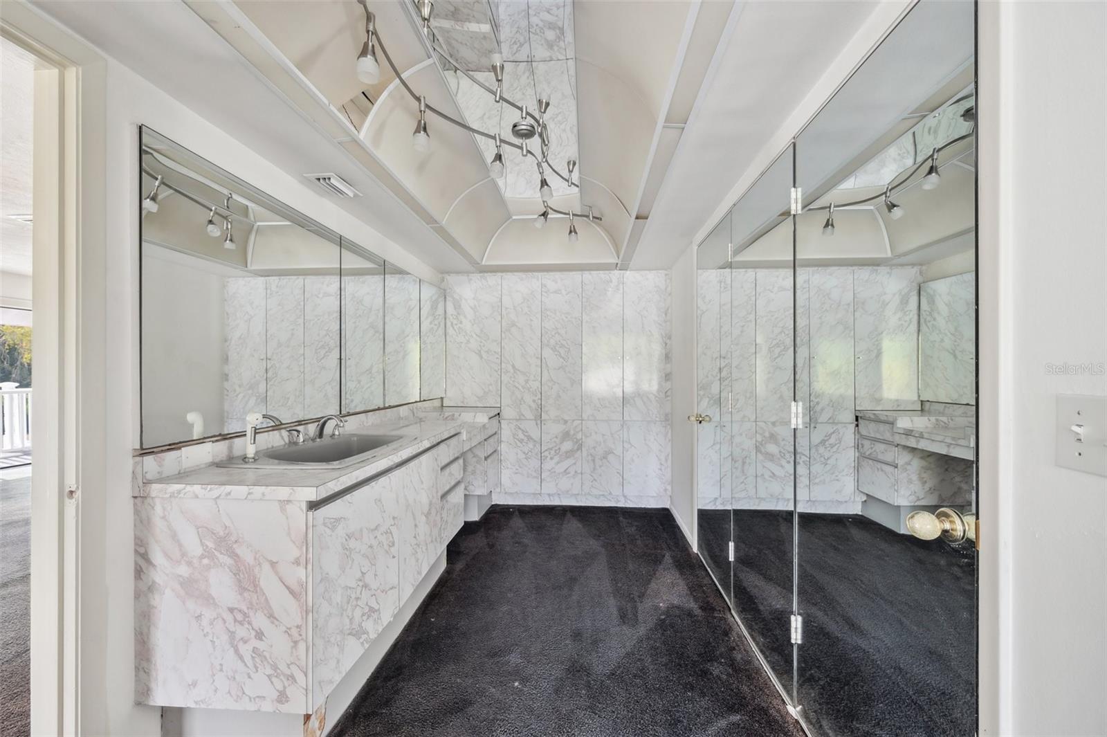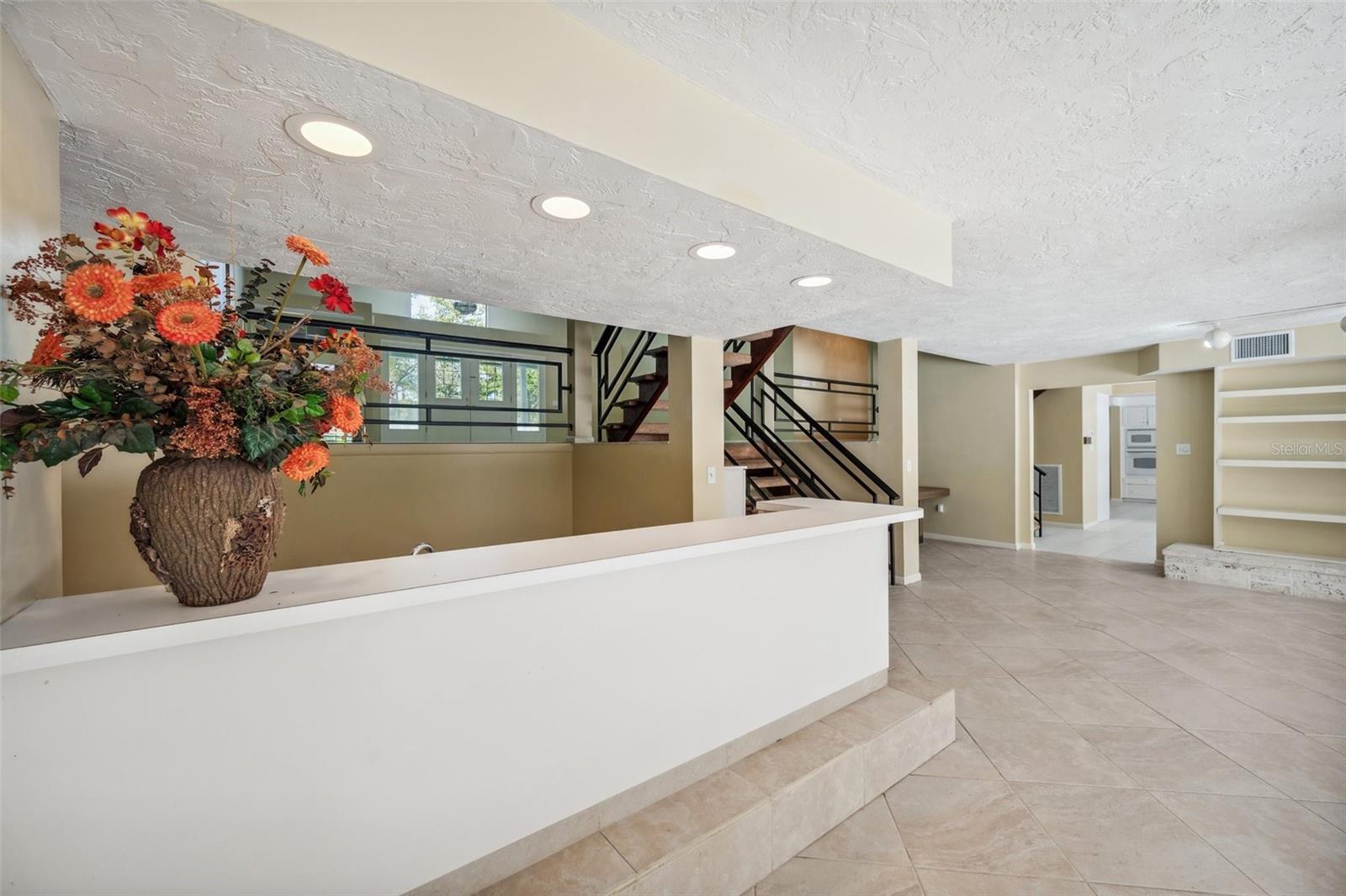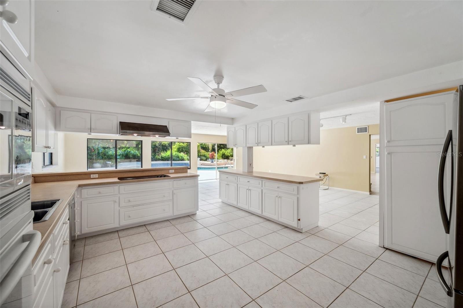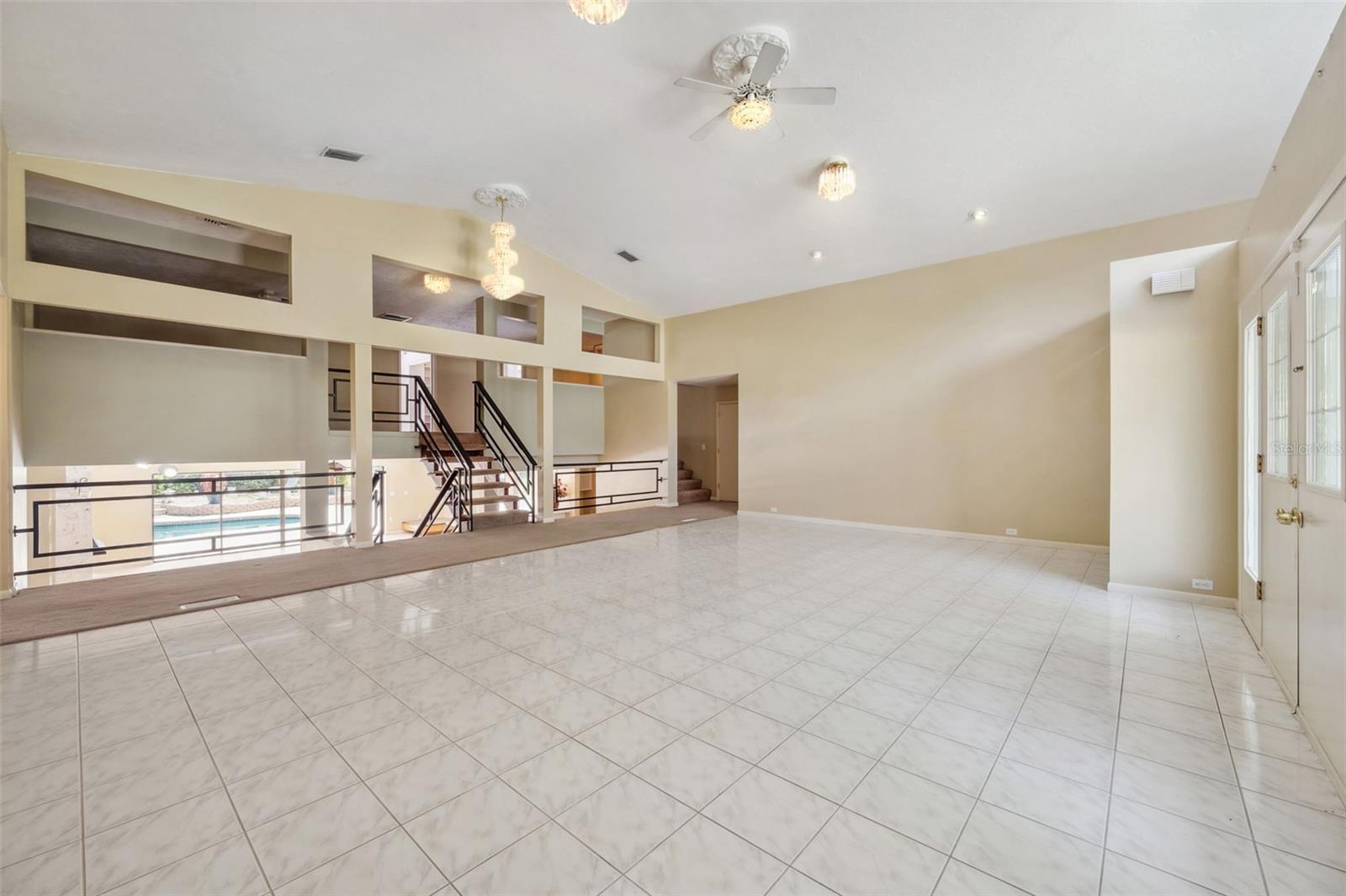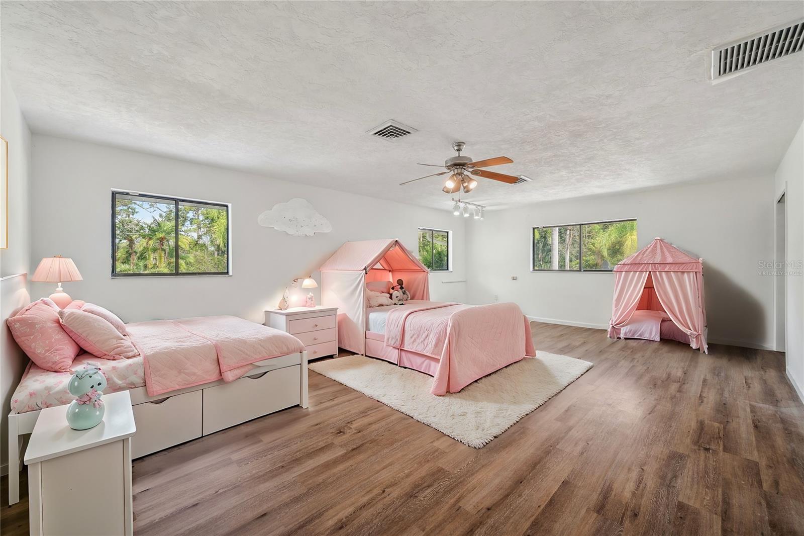 One or more photo(s) has been virtually staged. This rare estate size mid-century modern split level home on 5 wooded acres seamlessly blends minimalist elegance with natural surroundings offering a peaceful private retreat. The main house is approx. 7,000 sqft of expansive living space with 5 bedrooms/5 baths that includes 4 en suites, each over 500 sqft. The front doors open to the 2d level living room with a view through the center of the home to the pool and backyard blurring the lines between indoor and outdoor living, reminiscent of the Sarasota School of Modern Architect embracing natural elements with old Florida charm. The back of the house has over 50 feet of ceiling to floor glass doors and windows filling the house with light. The 1st and 3rd levels open directly onto the large pool deck. The 1st level kitchen/dining room is approx 840 sqft and opens to the 810 sqft family room with a large wet bar with space for another full refrigerator. Centering the room is a travertine fireplace that warms the heart of the home in the winter. The en suite bedroom on the 1st level can also be used as a home gym. The 3rd level has 2 en suite bedrooms, including the primary, both with access to the balcony that stretches the length of the house, a great spot to enjoy morning coffee while watching the sun rise or for the band, choir, or music ensemble to entertain at your outdoor parties. There is also a built in office on the 3rd level that can easily be converted to a master dressing room or nursery. The 2d level faces the front of the house and has 2 more bedrooms, one an en suite and the other has a bathroom just outside its door to be shared with guests. An additional storage room and large laundry room are also on the 2d level. All of the bedrooms are large enough for king beds, sitting/study areas, with lots of storage. Each of the levels has a living room and library. The large front circular driveway can easily park 20 cars; has a basketball area; and an attached 3 car garage with a covered breezeway to enter the main house kitchen. The property is wrapped in trees offering privacy in a park like setting teeming with Florida wildlife and has several fruit trees and a large pond. Behind the main house is a separate, detached, 1 bedroom/1 bath cottage, approx. 1,000 sqft, with a fireplace/pizza oven and 30ft of glass doors. Further back is a separate detached workshop/storage building that can be converted to a barn. Horses are welcomed! Located in coveted Timberland Ranchettes, a neighborhood of 13 homes just 3 miles east of 75 and only 10 miles to Siesta Key, across from Skye Ranch. This exceptional property is ready for you to add your personal touches and create your own retreat.