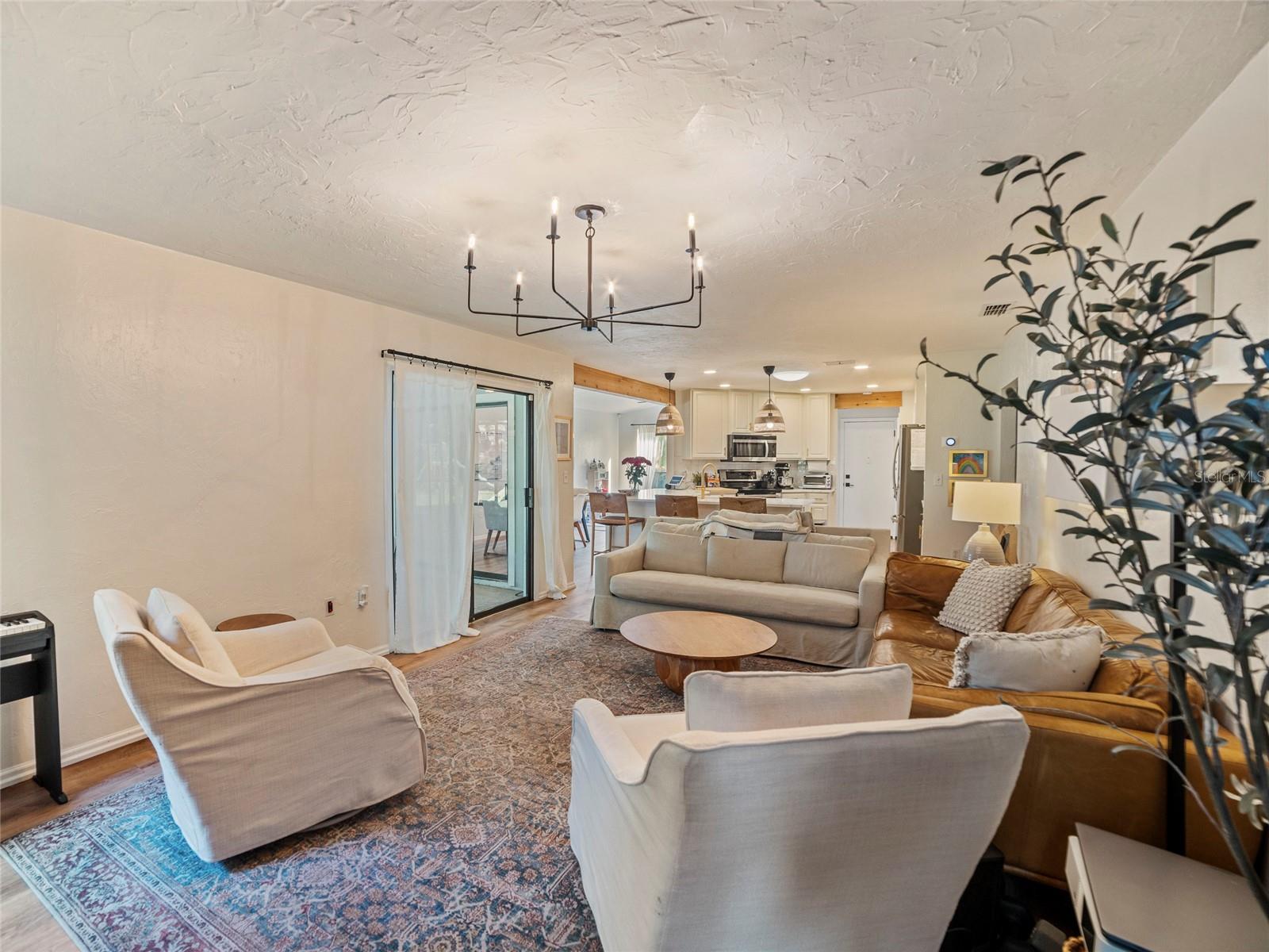 One or more photo(s) has been virtually staged. Welcome to Glenbrooke! This charming 3 bedroom, 2 bathroom home is tucked away on an over a quarter of an acre cul-de-sac, in a quaint community that offers the perfect blend of comfort and convenience. The split bedroom floor plan is perfect for families and guests alike with ample space for everyone. Formal living and dining rooms off of the foyer. The gathering room in the back of the home with sliding glass doors out to lanai and a propane gas fireplace. Remodeled kitchen with new cabinets accented with gold hardware, quartz counter tops, pendant lighting over breakfast bar, closet pantry with French doors, canned lighting and skylight. Wood beam accents around the kitchen. New appliances 2023. The master bedroom is located in the back right corner of the home with sliding glass doors out to lanai. The ensuite bathroom has been remodeled with a glass walk in shower, white vanity cabinets with drawers and granite countertop. The secondary bedrooms are on the other side of the home and share a tub/shower combo. Luxury vinyl flooring throughout the entire house except two secondary bedrooms with carpet. Outside you will find a covered lanai and a large fenced in yard that provides a safe space for kids or pets to play freely. Enjoy spending time outdoors, whether it's hosting gatherings or simply relaxing in your own little oasis. Above ground pool included. Roof replaced 2017 including soffits and gutters. HVAC replaced 2018, Central Vacuum. Storage shed included. Electric car charging station, hurricane shutters, whole house generator, pull down ladder in garage to attic for storage. Embrace the Florida lifestyle with ease, knowing you have the freedom to make this house your own. Centrally located in Sarasota, you are surrounded by a vibrant community with access to fantastic amenities, schools, shopping, and dining options. The city's beautiful beaches and recreational activities are just a short drive away, making it an ideal location for those seeking a mix of tranquility and excitement. An exceptional location only 4 miles to University Town Center! Don't miss the chance to make owning this home a reality.