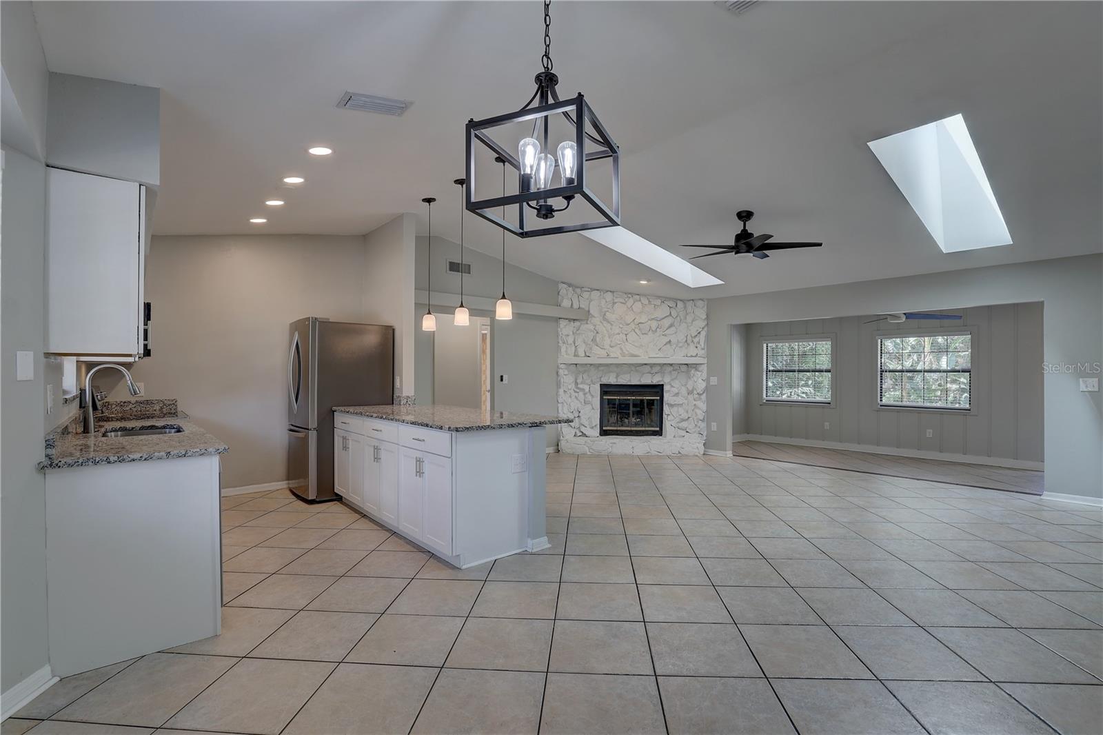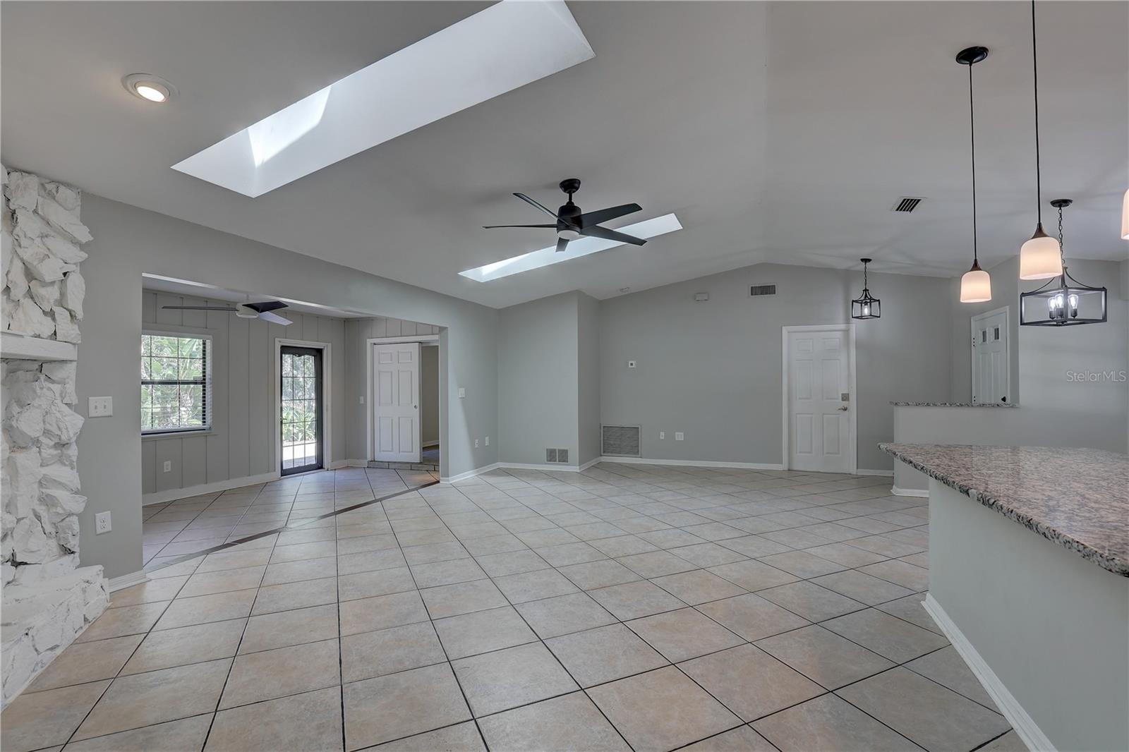 HIGH AND DRY!!! AMAZING LOCATION, CLEAN AND MOVE-IN READY!! 3 bed 2 bath with potential to use the primary bedroom as an IN-LAW SUITE, OPEN FLOOR PLAN with Kitchen, Dinning, Living and Florida room combo. ***KITCHEN: granite counter tops, breakfast bar, stainless steel appliances, duel sinks, updated cabinets, tile floors ***LIVING ROOM: wide open floor plan, two large SKY LIGHTS, STONE WOOD BURNING FIRE PLACE, tile floors ***BEDROOMS: ceiling fans, large closets, laminate floors. ***PRIMARY BEDROOM OR IN-LAW SUITE: over sized with walk in closet, private bathroom with granite countertops, sunken shower with built in shower bench, back door could be used as entrance from sunroom. ***Nicely FENCED BACK YARD with PRIVACY and mature bird of paradise and shade in the late afternoons. ***UPDATED ROOF, UPDATED AC ***JUST A BLOCK AWAY FROM PICKEL BALL COURTS AND PARK, CLOSE TO SHOPPING, AIRPORT, BEACHES, I-75.
