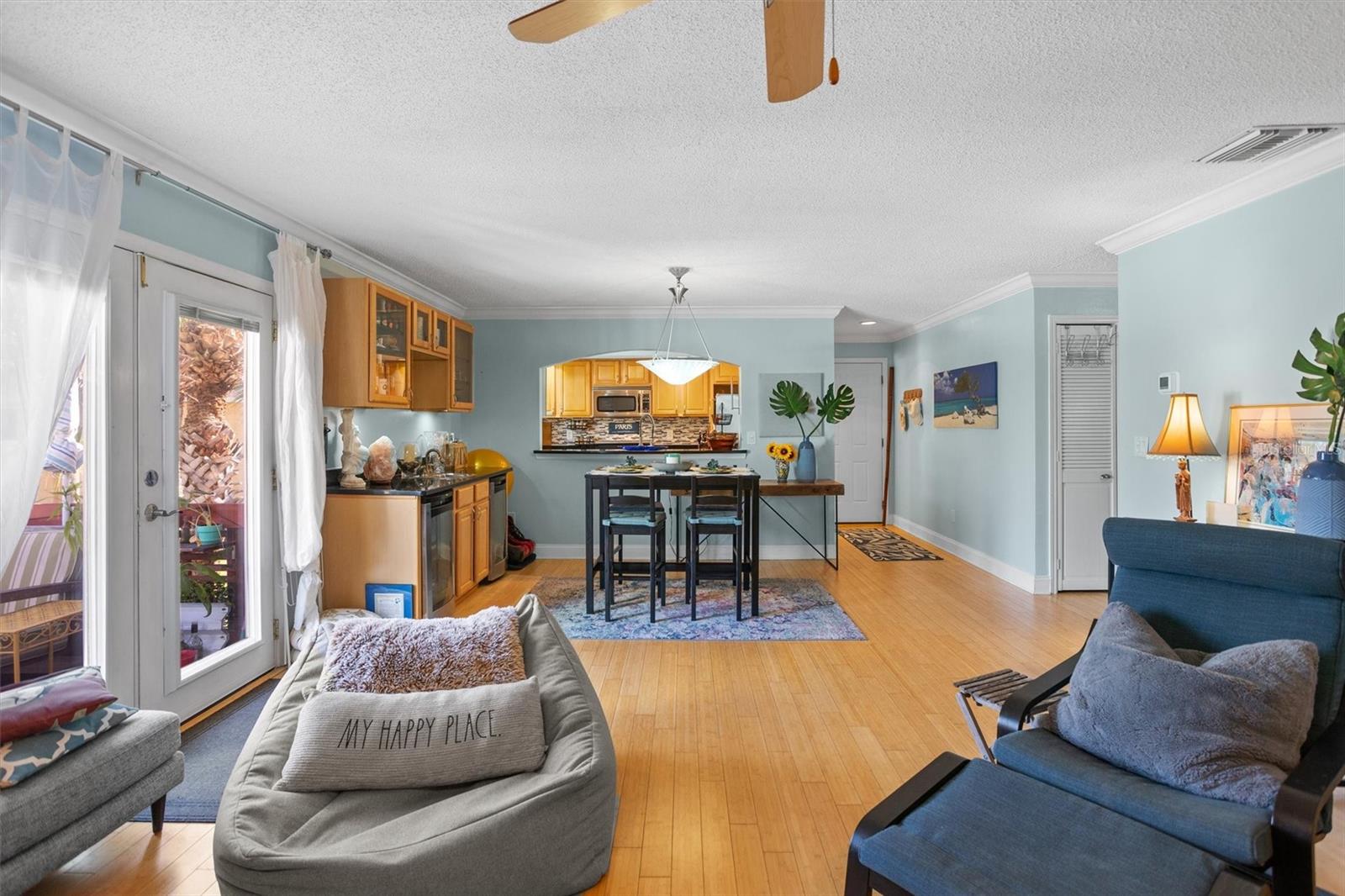 PRICE IMPROVEMENT ! Location. Size. Upgrades. Ready to move in this two bedroom two bath condo has all the right touches with a great view from the balcony! Vistas on Beneva is across from The Palms Golf Course at Forest Lakes and with unit 1203 facing the rear of the community, is serenely quiet in the middle of the hustle and bustle of Sarasota! The bright and airy kitchen features a Whirlpool Appliance Suite, recessed lighting, and tons of cabinet space! The dining area features a built in wet bar with 2 wine fridges and display cabinetry to add your personal touches to the space. The living and dining areas flow effortlessly onto the large outdoor balcony overlooking the pool and gardens - a favorite spot to hang out for all who enter. The main bathroom features a jacuzzi tub while the primary en-suite bath features a sliding glass door enclosure and updated fixtures. The entire condo features crown molding throughout Recent improvements include replacement of the HVAC (2021), new carpeting in bedrooms (2021) and bedrooms repainted (2023). During both storms, the unit had no damage - storm shutters for the balcony doors convey with the sale! The community features a well maintained resort-style pool with a clubhouse and gym. Plenty of parking for visitors yet tucked away for a private oasis! This location is PRIME! Close to the legacy trail, shopping, entertainment and more with a quick distance to Siesta Key in one direction and I-75 in the other, it's hard to beat how centrally located it is! Call to make an appointment to view today! Sellers highly motivated bring all offers!