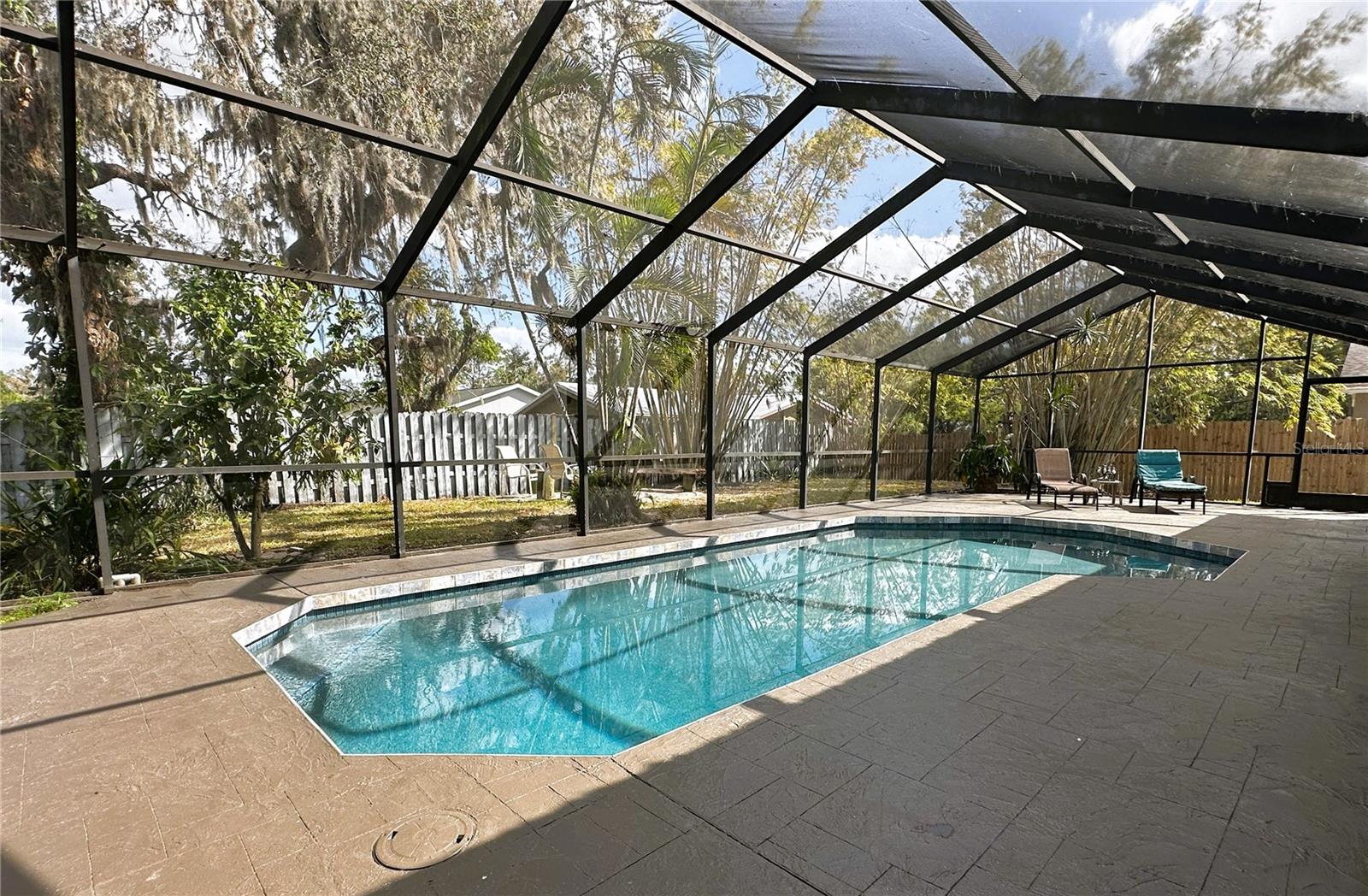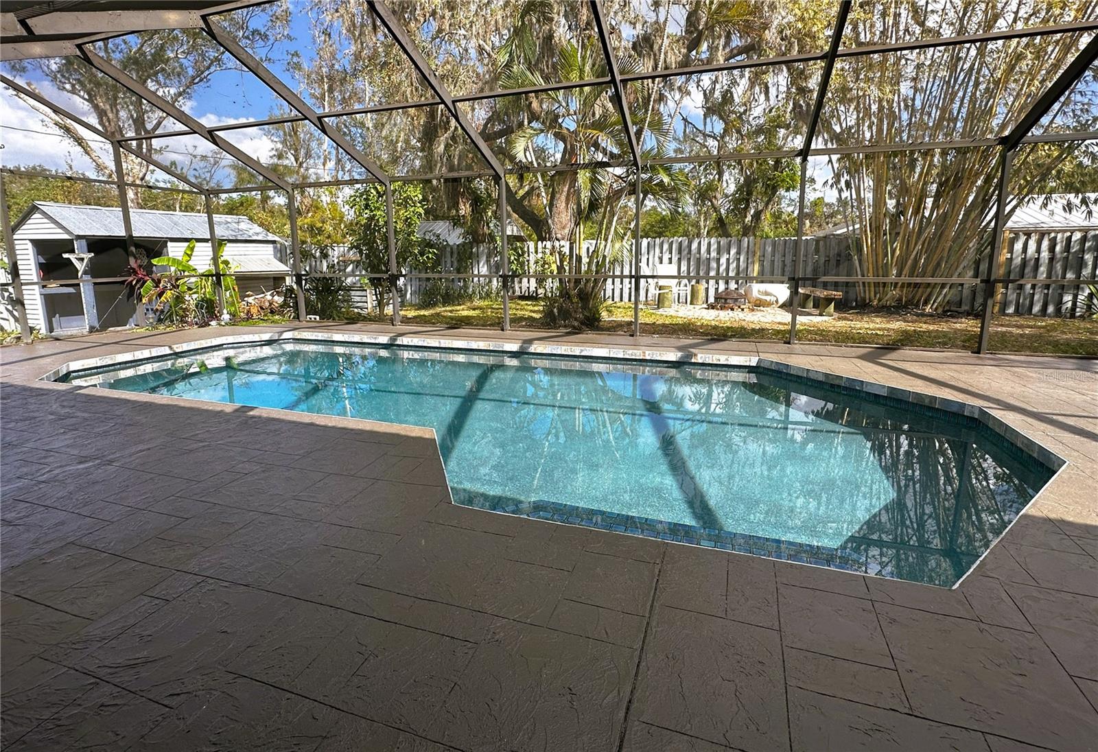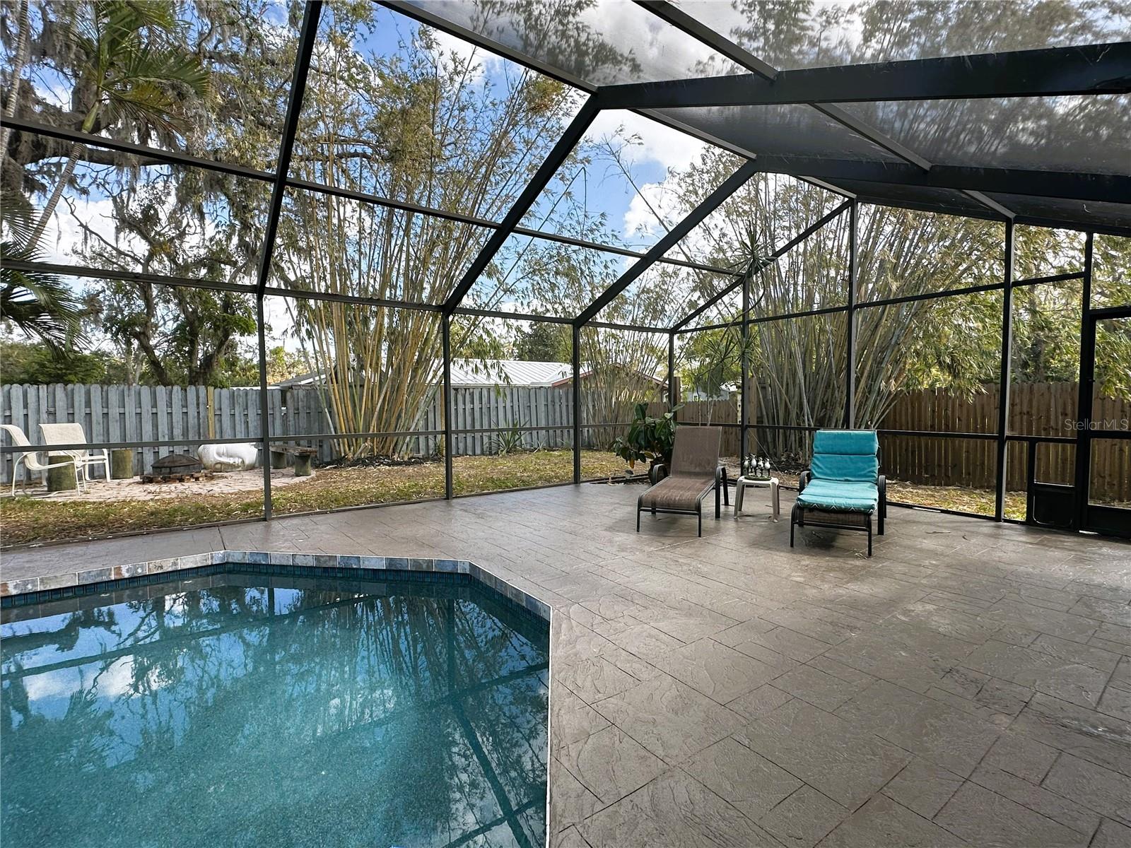 SELLER OFFERING $5,000 TOWARDS CLOSING COSTS! Just minutes from downtown Sarasota, this charming 3-bedroom, 2-bathroom CONCRETE BLOCK home sits on a peaceful DEAD-END Street with a welcoming star jasmine hedge in front. One significant perk – NO FLOOD INSURANCE! The home boasts CALI BAMBOO FLOORING THROUGHOUT, an OVERSIZED SALTWATER POOL, a 2-car garage, and a private split floor plan featuring vaulted ceilings, skylights, and a FRESHLY PAINTED interior for an open, airy ambiance. GLASS SLIDING POCKET DOORS open from the living area to the outside, enhancing indoor-outdoor flow. The kitchen features granite countertops, a newer stainless steel double oven, side-by-side refrigerator, and dishwasher. The spacious primary suite includes a custom-built walk-in closet and French doors leading to the LARGE SALTWATER POOL & screened patio, complete with an outdoor bath. The guest bedrooms are served by a beautifully updated bathroom featuring WALL-TO-WALL TRAVERTINE and dual vanities. Outdoors, the expansive fenced yard includes a utility shed, cozy fire pit, and mature trees—Mango, Ylang Ylang, Moringa, and bamboo—providing natural PRIVACY & TRANQUILITY, and a small, raised garden bed for gardening enthusiasts. With NO HOA or deed restrictions, there’s ample room for all your toys, with parking space for a BOAT OR RV + a 30-Amp RV HOOKUP. Additional highlights include NEWER WINDOWS, a METAL ROOF and a NEW AC. Conveniently located near Fruitville Park, local trails, UTC Mall, I-75, and downtown Sarasota, you’ll be just a bike ride from Nathan Benderson Park, 17th Street Paw Park & have easy access to dining, shopping & some of the most stunning beaches! Don't miss out on this relaxing pool home! - SELLER IS WILLING TO OFFER PARTIAL FINANCING.