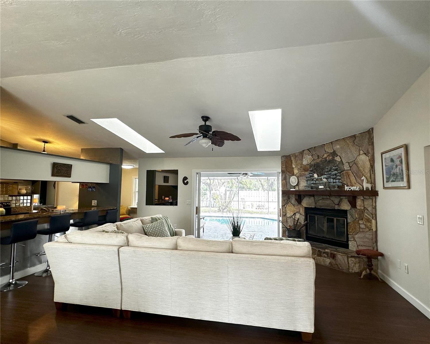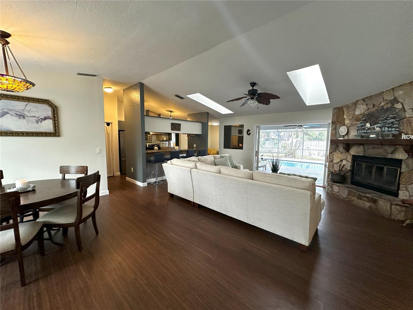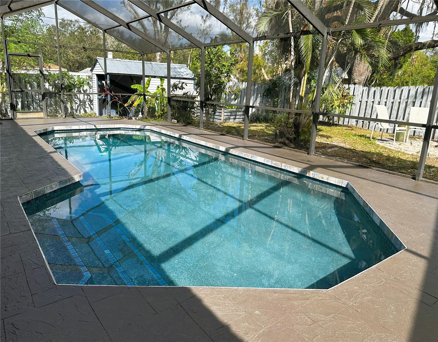 SELLER OFFERING $5,000 TOWARDS CLOSING COSTS! Just minutes from downtown Sarasota, this charming 3-bedroom, 2-bathroom CONCRETE BLOCK home sits on a peaceful DEAD-END Street with a welcoming star jasmine hedge in front. One significant perk – NO FLOOD INSURANCE! The home boasts CALI BAMBOO FLOORING THROUGHOUT, an OVERSIZED SALTWATER POOL, a 2-car garage, and a private split floor plan featuring vaulted ceilings, skylights, and a FRESHLY PAINTED interior for an open, airy ambiance. GLASS SLIDING POCKET DOORS open from the living area to the outside, enhancing indoor-outdoor flow. The kitchen features granite countertops, a newer stainless steel double oven, side-by-side refrigerator, and dishwasher. The spacious primary suite includes a custom-built walk-in closet and French doors leading to the LARGE SALTWATER POOL & screened patio, complete with an outdoor bath. The guest bedrooms are served by a beautifully updated bathroom featuring WALL-TO-WALL TRAVERTINE and dual vanities. Outdoors, the expansive fenced yard includes a utility shed, cozy fire pit, and mature trees—Mango, Ylang Ylang, Moringa, and bamboo—providing natural PRIVACY & TRANQUILITY, and a small, raised garden bed for gardening enthusiasts. With NO HOA or deed restrictions, there’s ample room for all your toys, with parking space for a BOAT OR RV + a 30-Amp RV HOOKUP. Additional highlights include NEWER WINDOWS, a METAL ROOF and a NEW AC. Conveniently located near Fruitville Park, local trails, UTC Mall, I-75, and downtown Sarasota, you’ll be just a bike ride from Nathan Benderson Park, 17th Street Paw Park & have easy access to dining, shopping & some of the most stunning beaches! Don't miss out on this relaxing pool home! - SELLER IS WILLING TO OFFER PARTIAL FINANCING.