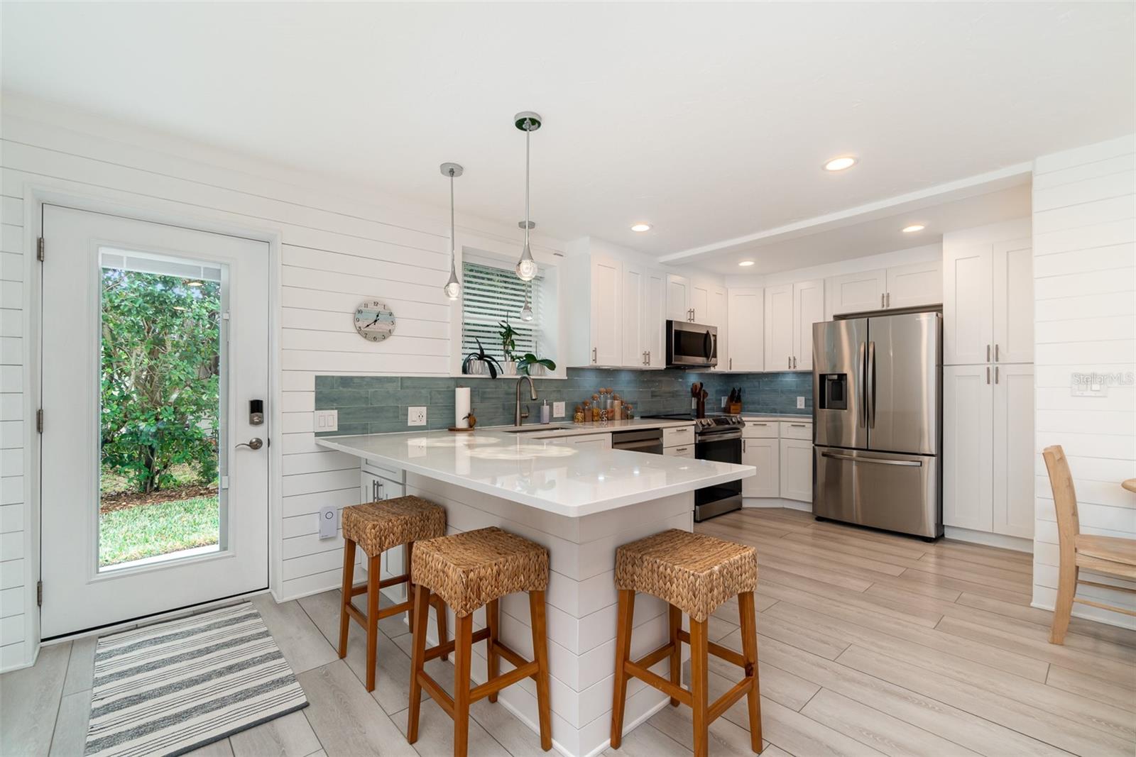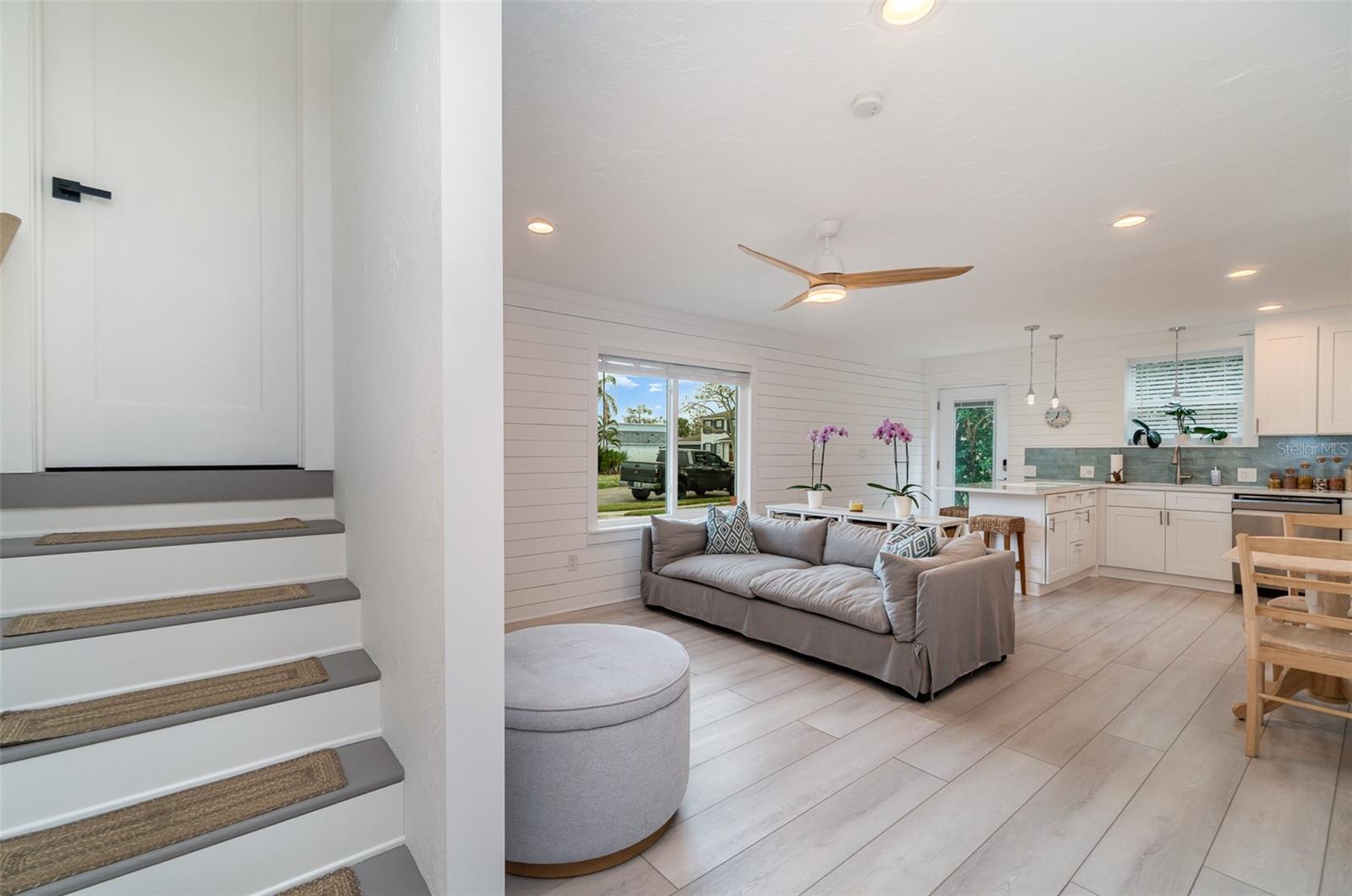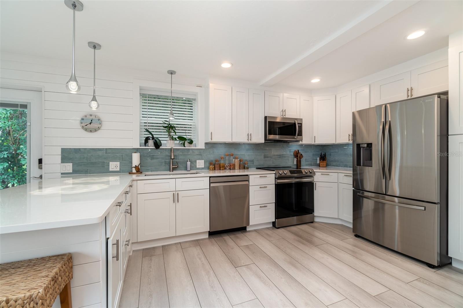 MOTIVATED SELLER, BRING YOUR OFFERS! • NO flooding, NO storm damage • HIGH-quality craftsmanship! NEED AN IN-LAW SUITE? Look no further --• This RARE TO FIND, FULLY RENOVATED FROM THE STUDS UP 4/3 home (easily convertible to a 5/3) offers incredible flexibility for multi-generational living or as a potential income-generating property • NEW ROOF with a 50-year transferable warranty • The split-level floor plan features two full kitchens, two laundry rooms, and two separate driveways. • Situated on a generous 0.236-acre lot with ROOM FOR A POOL • NON-flood zone • LOW HOA fees ($25/month) • NO CDD fees • hurricane impact windows • two AC units with UV air purification, two new lifetime vinyl sheds and so much storage space! • The SPLIT LEVEL FLOOR PLAN is divided by a lockable door and allows for access to both the upstairs AND downstairs from the front entry OR via a private entry door on the left side of the home. * • * DOWNSTAIRS * • * 1 BED + DEN / 1 BATH featuring an OPEN CONCEPT COASTAL INSPIRED DESIGN with lots of natural light. The full-size kitchen features shaker cabinets, quartz countertops, and a walk-in pantry. The den could be converted into a fifth bedroom and opens to an expansive, private, tropical backyard. * • * UPSTAIRS * • * 3 BEDS / 2 BATHS and another full-sized kitchen with stainless steel appliances, granite counters, and rich wood cabinetry. The family room features vaulted ceilings, a built-in electric fireplace, and wood flooring. The large dining room opens to a wooden deck overlooking the backyard. * • * LOCATION * • * Perfectly situated within miles of University Town Center Shopping, Restaurants, I-75, Sarasota-Bradenton Airport, and the beautiful Gulf Beaches. * • * The high-quality craftsmanship of this renovation is rarely seen today, even in new construction! CHECK THE ATTACHED LIST OF UPGRADES!