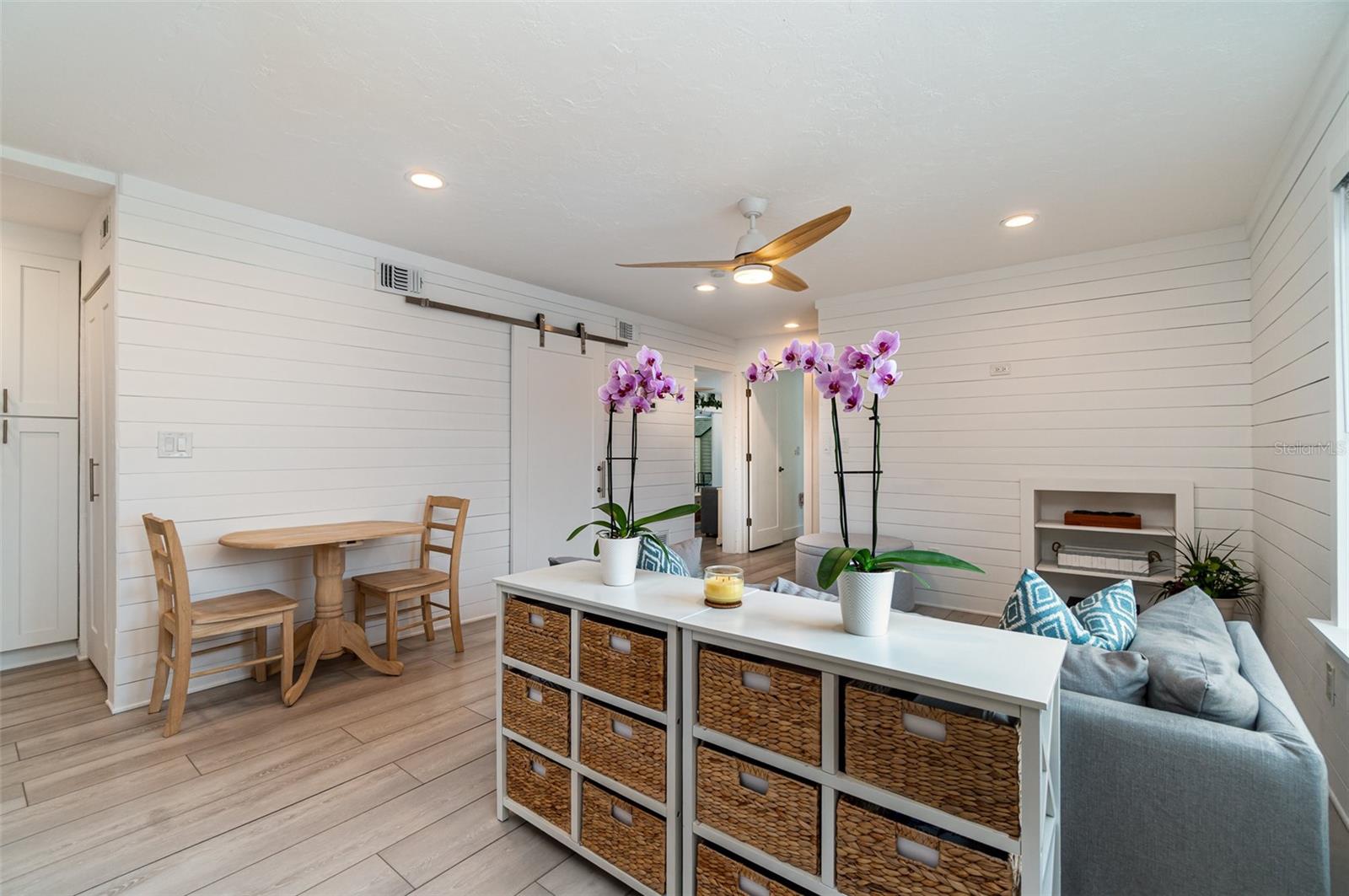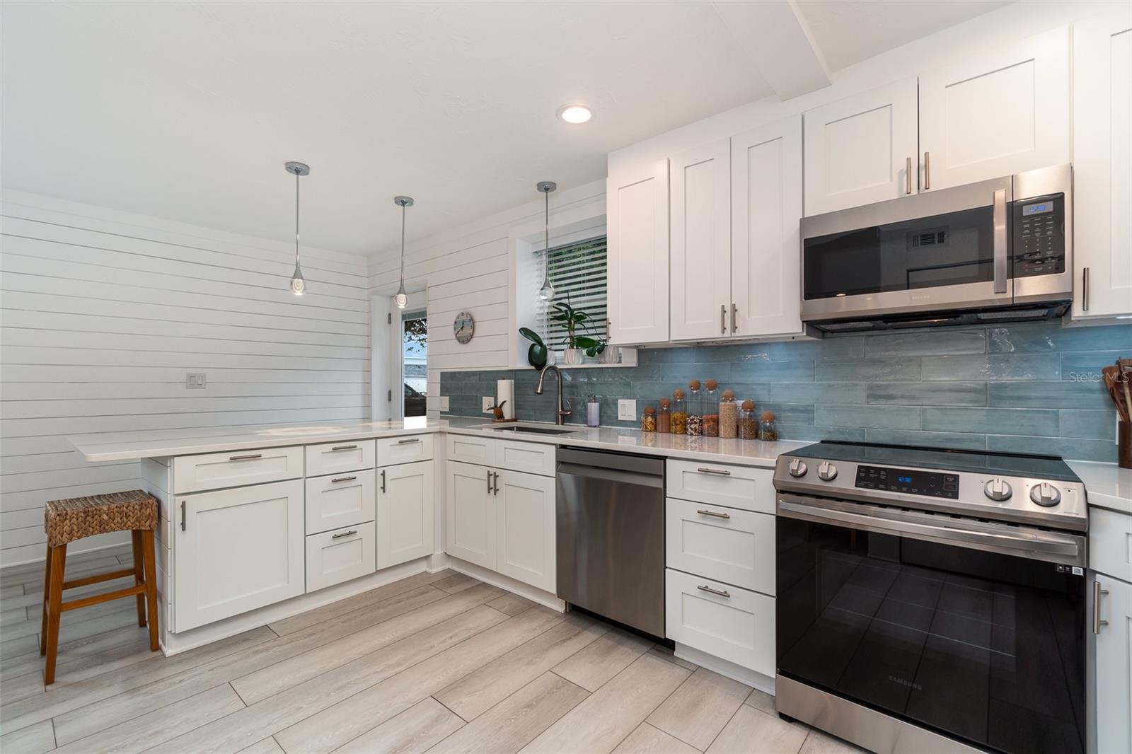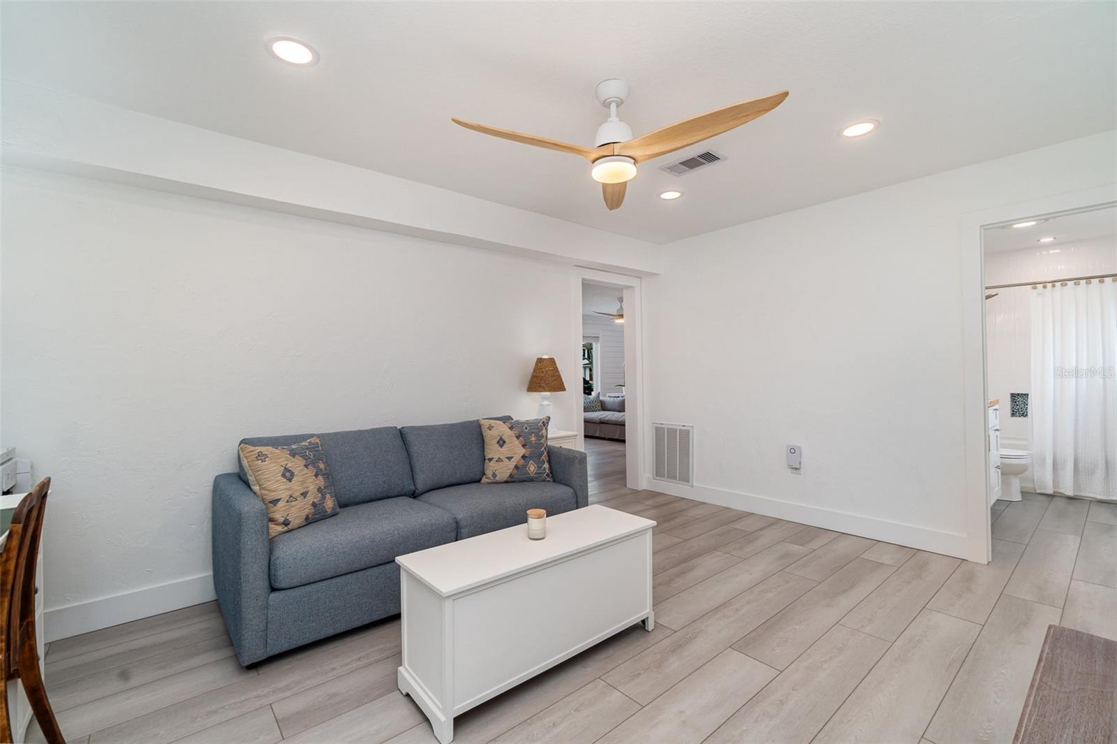 MOTIVATED SELLER, BRING YOUR OFFERS! • NO flooding, NO storm damage • HIGH-quality craftsmanship! NEED AN IN-LAW SUITE? Look no further --• This RARE TO FIND, FULLY RENOVATED FROM THE STUDS UP 4/3 home (easily convertible to a 5/3) offers incredible flexibility for multi-generational living or as a potential income-generating property • NEW ROOF with a 50-year transferable warranty • The split-level floor plan features two full kitchens, two laundry rooms, and two separate driveways. • Situated on a generous 0.236-acre lot with ROOM FOR A POOL • NON-flood zone • LOW HOA fees ($25/month) • NO CDD fees • hurricane impact windows • two AC units with UV air purification, two new lifetime vinyl sheds and so much storage space! • The SPLIT LEVEL FLOOR PLAN is divided by a lockable door and allows for access to both the upstairs AND downstairs from the front entry OR via a private entry door on the left side of the home. * • * DOWNSTAIRS * • * 1 BED + DEN / 1 BATH featuring an OPEN CONCEPT COASTAL INSPIRED DESIGN with lots of natural light. The full-size kitchen features shaker cabinets, quartz countertops, and a walk-in pantry. The den could be converted into a fifth bedroom and opens to an expansive, private, tropical backyard. * • * UPSTAIRS * • * 3 BEDS / 2 BATHS and another full-sized kitchen with stainless steel appliances, granite counters, and rich wood cabinetry. The family room features vaulted ceilings, a built-in electric fireplace, and wood flooring. The large dining room opens to a wooden deck overlooking the backyard. * • * LOCATION * • * Perfectly situated within miles of University Town Center Shopping, Restaurants, I-75, Sarasota-Bradenton Airport, and the beautiful Gulf Beaches. * • * The high-quality craftsmanship of this renovation is rarely seen today, even in new construction! CHECK THE ATTACHED LIST OF UPGRADES!