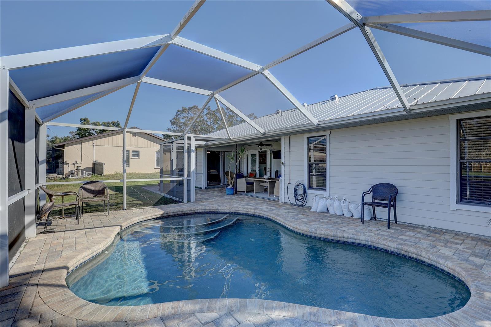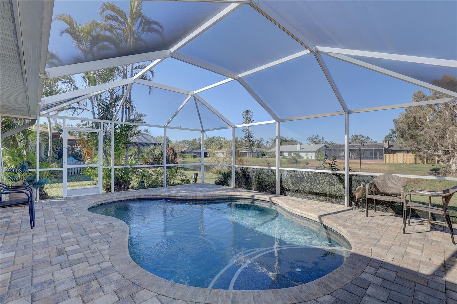 Step into this meticulously updated single-family residence, a harmonious blend of modern upgrades and timeless charm. This stunning home, built in 1981, boasts a thoughtfully remodeled layout, offering three spacious bedrooms and two beautifully updated bathrooms. Situated on an expansive 0.33-acre lot, the property is adorned with lush landscaping and tranquil pond views, providing a serene retreat from the bustle of everyday life. Inside, the entire house showcases brand-new flooring, adding a seamless and fresh aesthetic throughout. The primary suite features a remodeled en-suite bathroom, while the guest bath has also been tastefully updated to offer both style and comfort. The home's solid surface counters and walk-in closets amplify its modern yet functional appeal. Recent enhancements include state-of-the-art brand-new PVC sewer and water pipes, ensuring worry-free living. The attic, encompassing the entire house and garage, has been updated with brand-new insulation, contributing to both energy efficiency and comfort. The HVAC system, replaced in 2023, ensures year-round climate control, while a durable metal roof, installed in 2019, adds longevity and peace of mind. The outdoor space is equally inviting, with a private pool installed in 2019, complete with in-ground lighting, a child safety fence, and a screened enclosure for added comfort. The sealed patio extends the living area outdoors, making it an ideal spot for entertaining or relaxation. The lush yard benefits from the removal of three mature trees, opening up the space and allowing for more sunlight and usability. A spacious two-car garage, with features such as a ground-level entry and electric door opener, complements the property's functionality. The home’s open living and dining areas are illuminated by natural light, enhanced by large windows that frame peaceful greenbelt and water views. This residence is not just a home—it's a lifestyle. From modern upgrades to serene outdoor living, every detail has been considered to create a sanctuary of comfort and elegance. Don’t miss the opportunity to call this exceptional property your own.